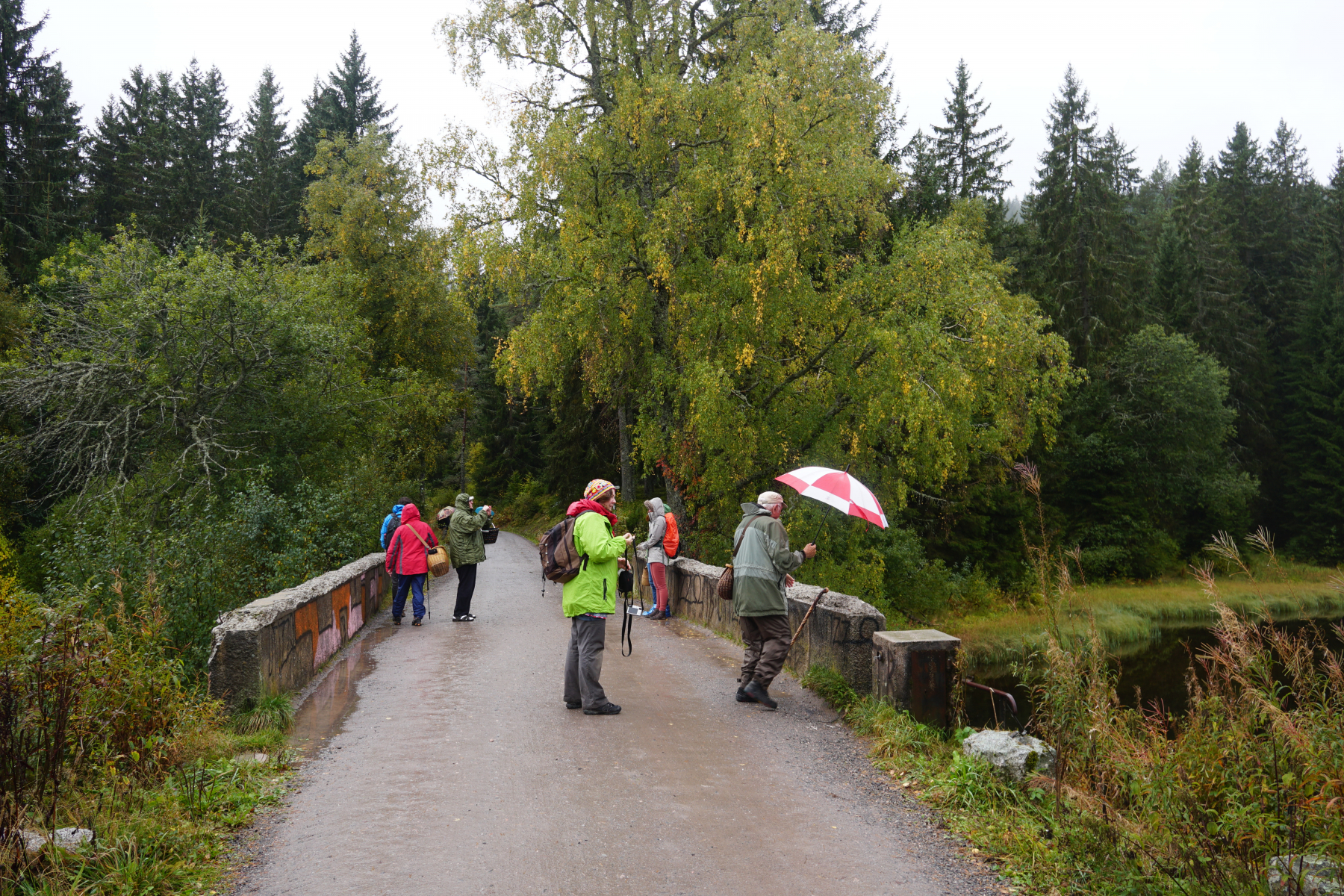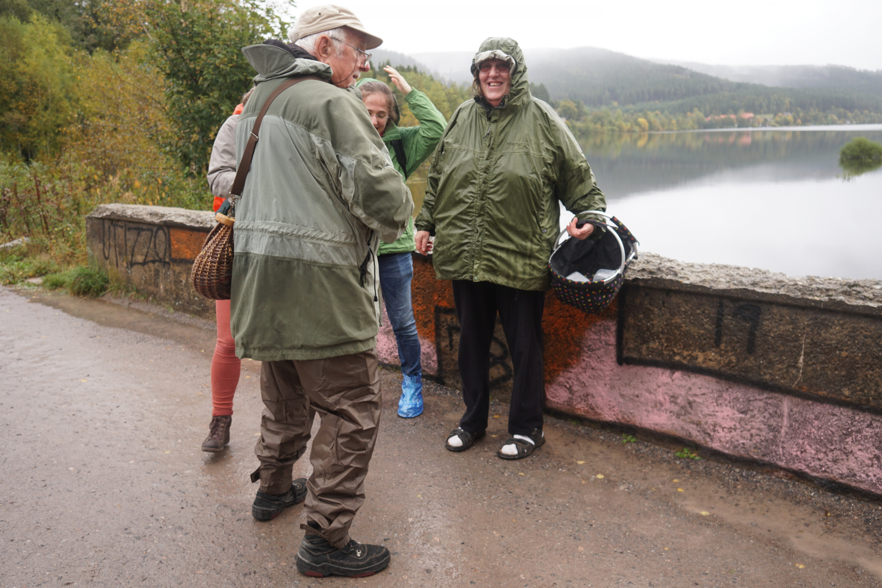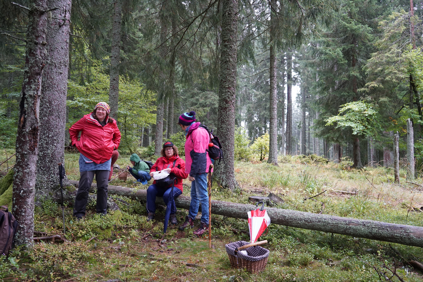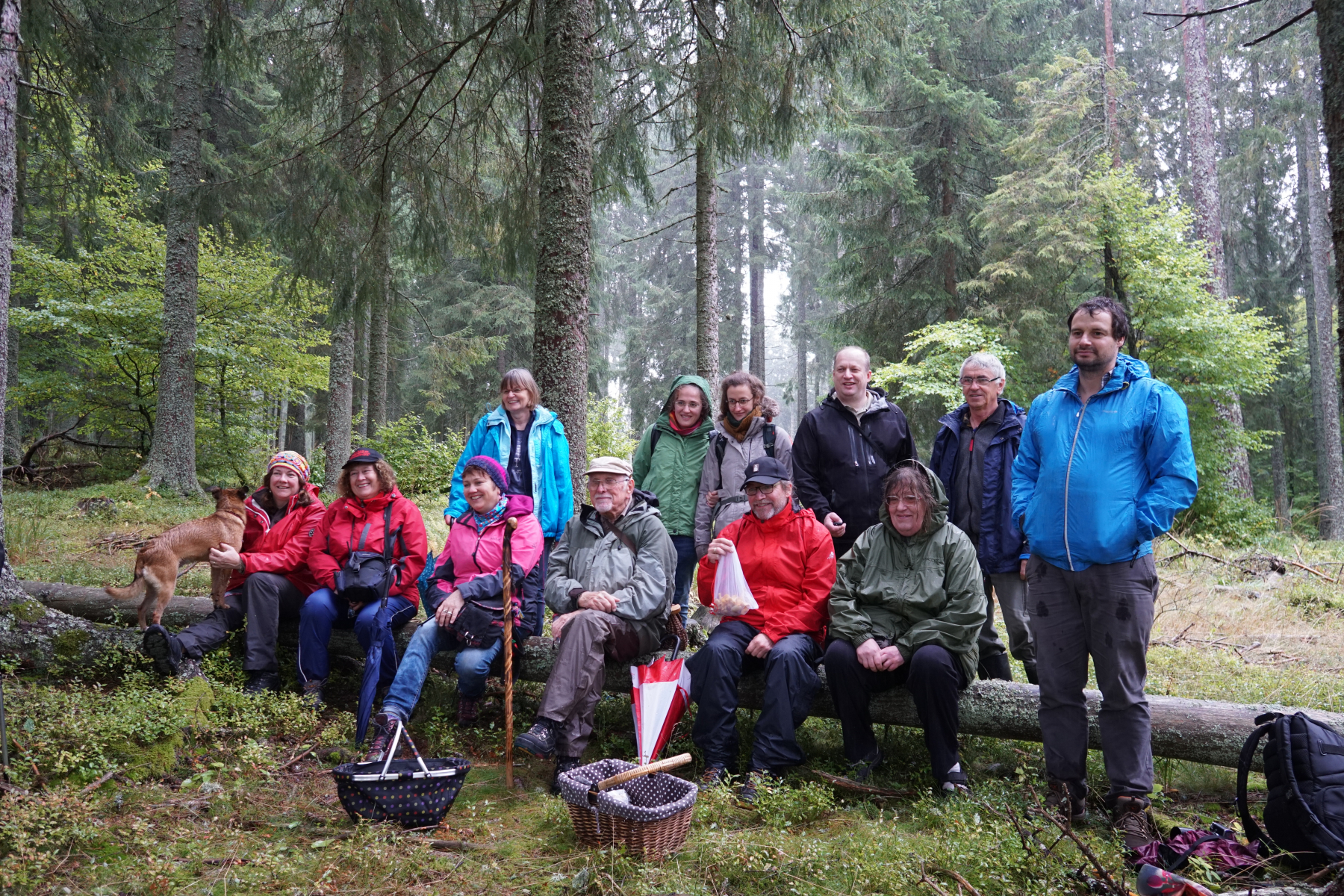 Es regnet! Aber da wir aufbrechen zu Walters Märchenwald ist die Stimmung gut.