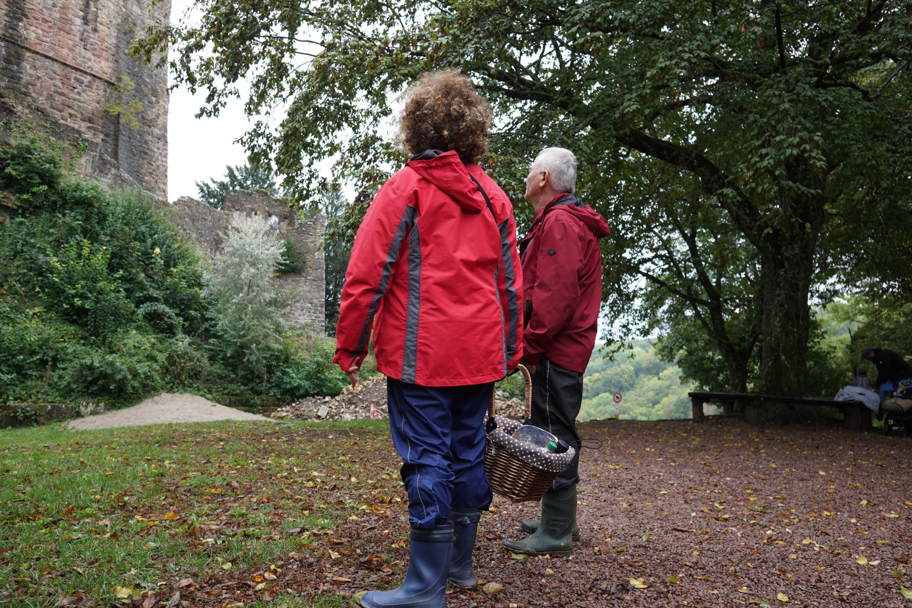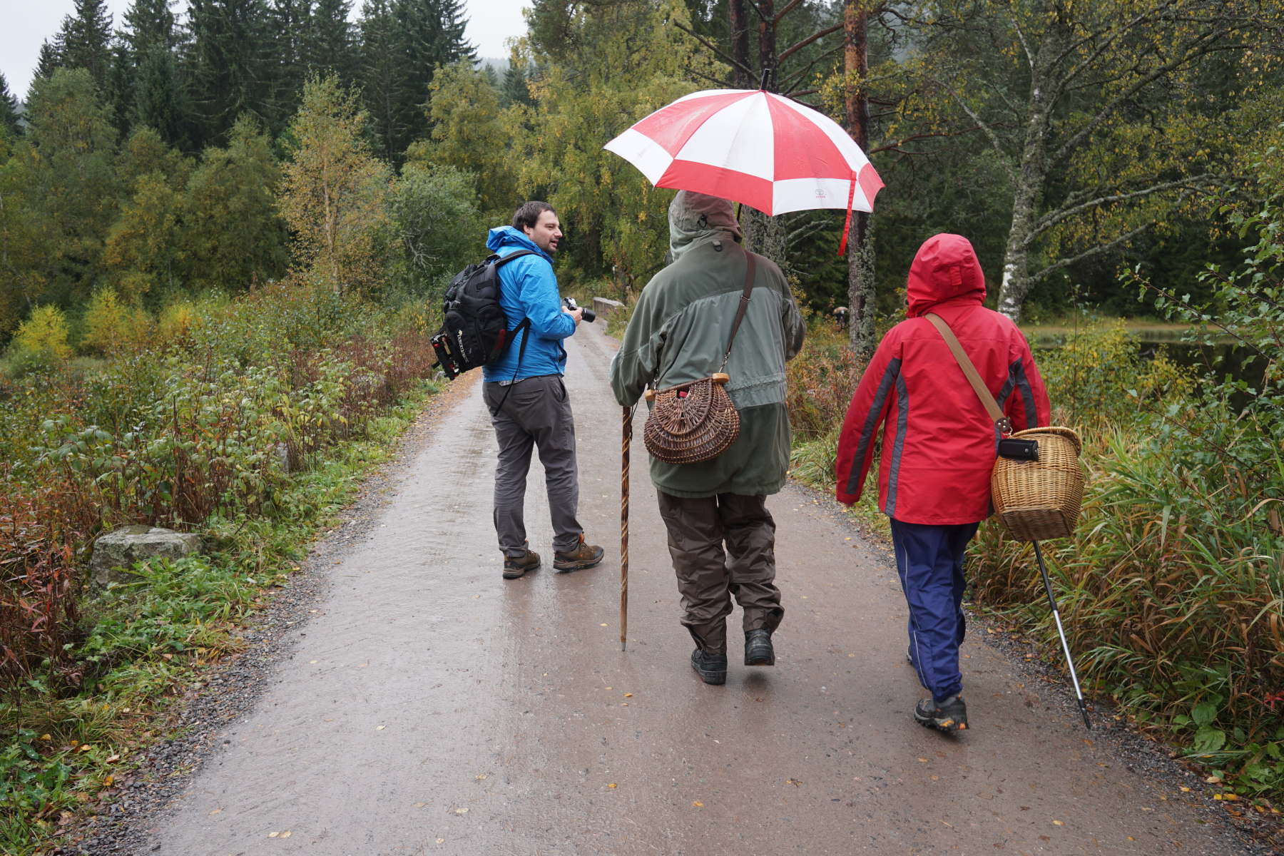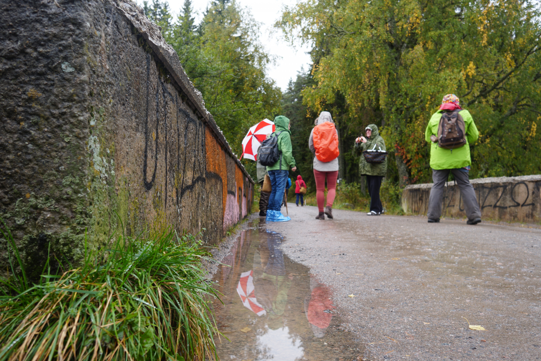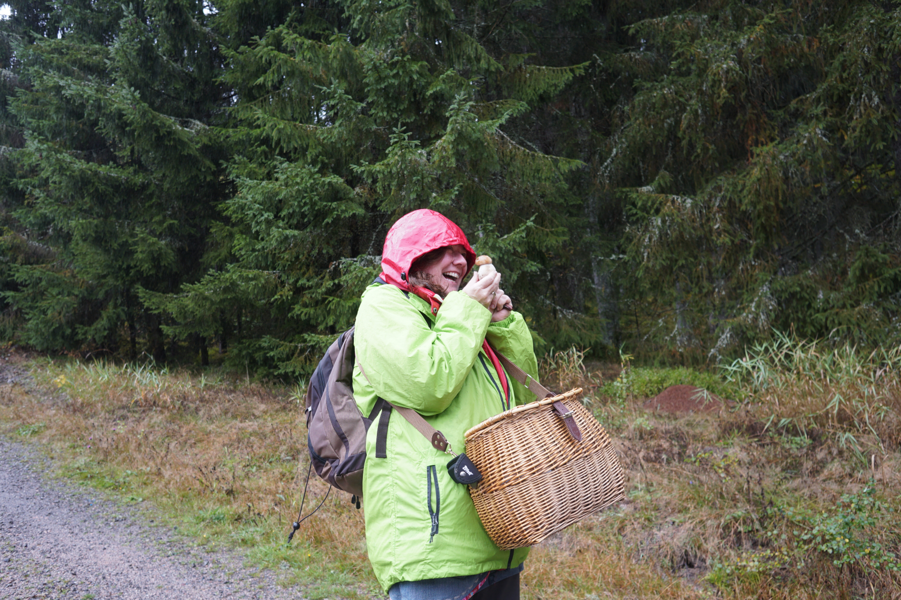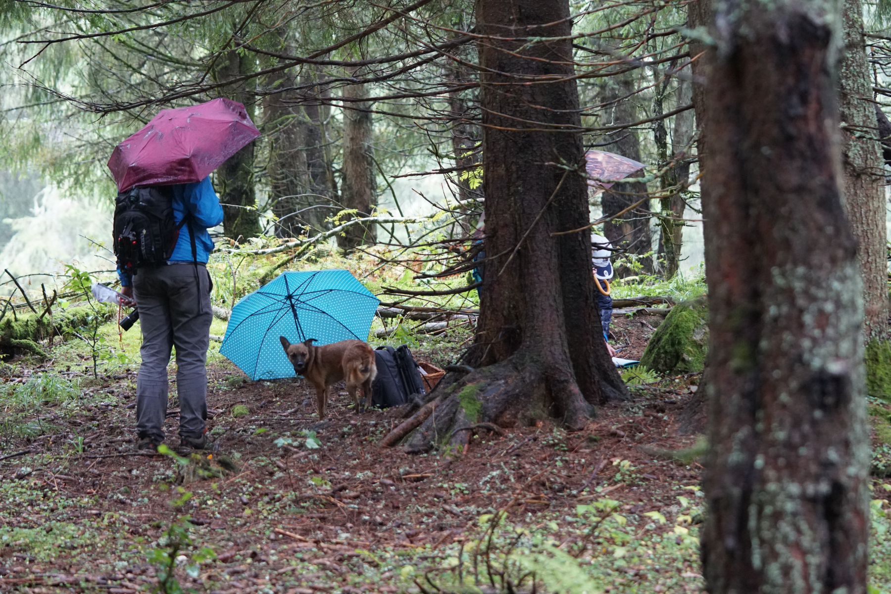 Es regnet! Aber da wir aufbrechen zu Walters Märchenwald ist die Stimmung gut.