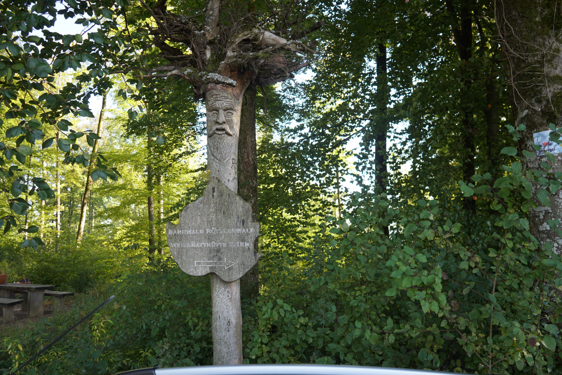 Weggli essen auf Walter's Pausenstamm