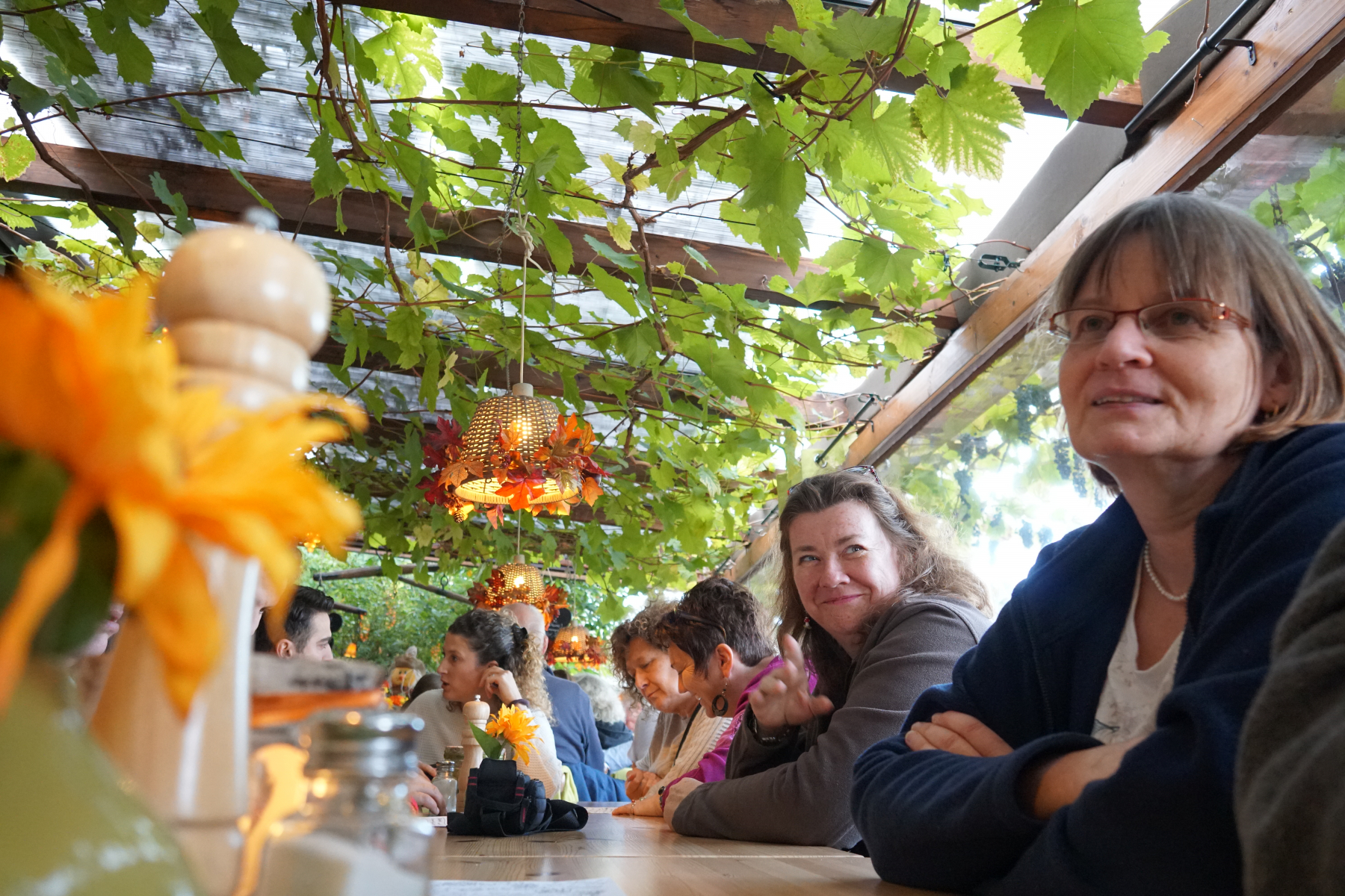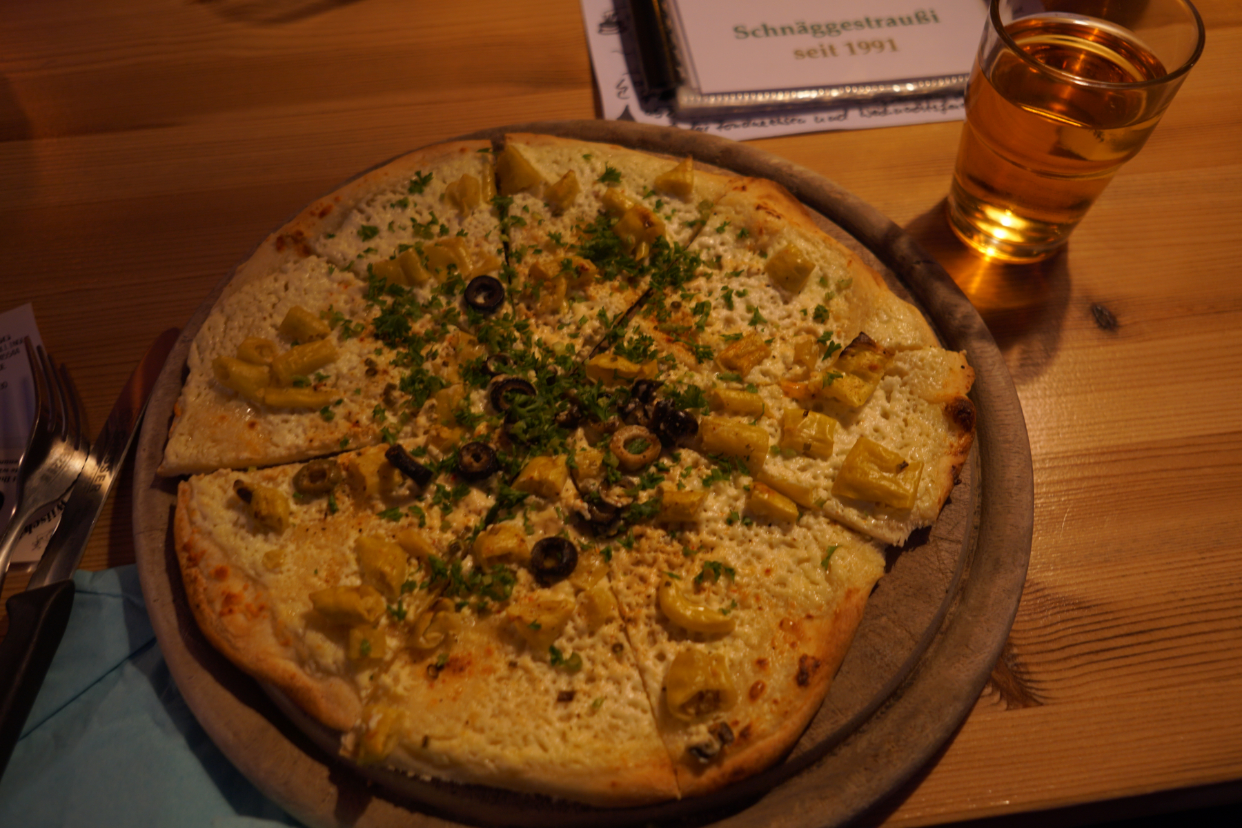 Es gab leckere Waien (Flammkuchen), hausgemachten "Traubensaft" und manch anderes.