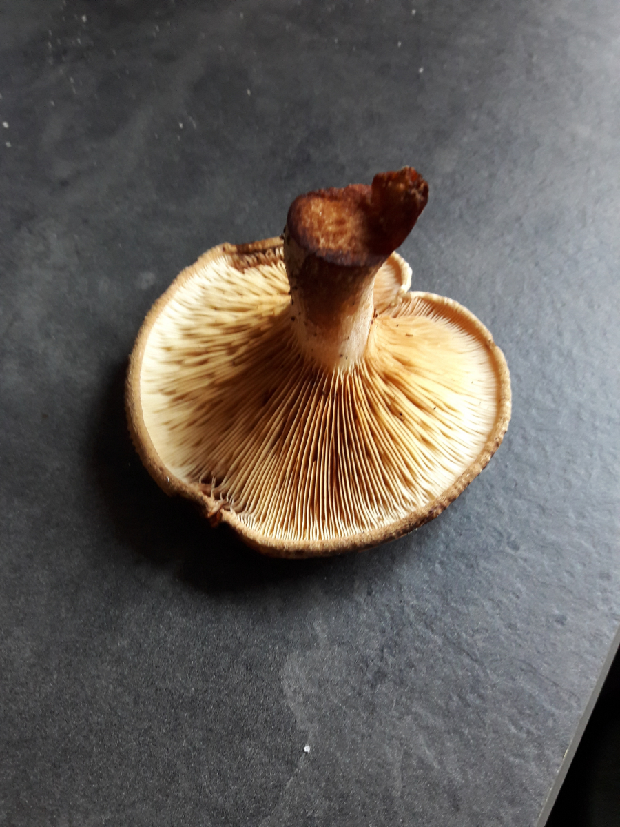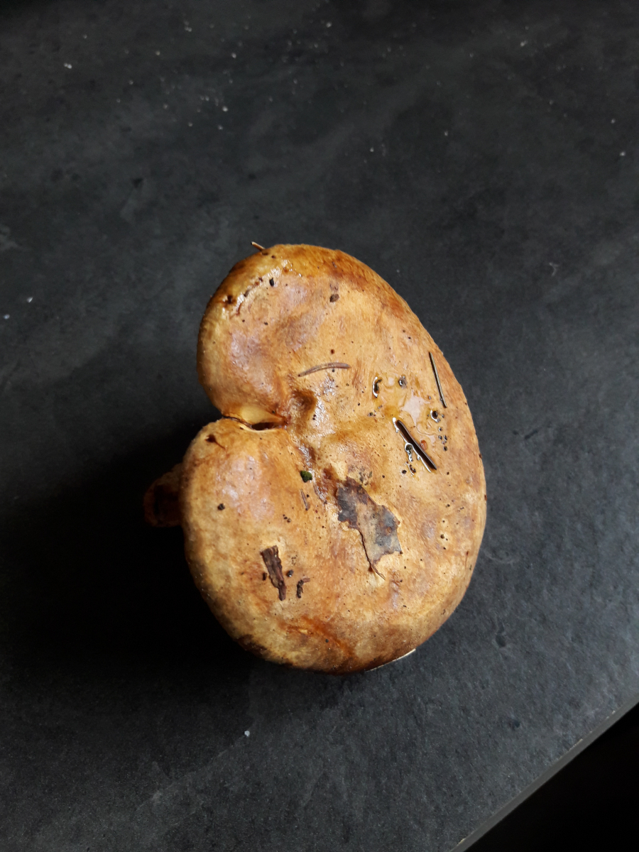 ich habe mir heute ein paar Maronen sowie Hallimasch aus dem Wald geholt. Dabei stand dort in der Nähe oft dieser Pilz in großen Mengen. Ich habe ein Exemplar zur Bestimmung mitgenommen, aber bin immernoch etwas ratlos. Keine austretene Milch und auch kein zuordbarer Geruch. Hat jemand anhand der Bilder eine Vermutung? Danke vorab.