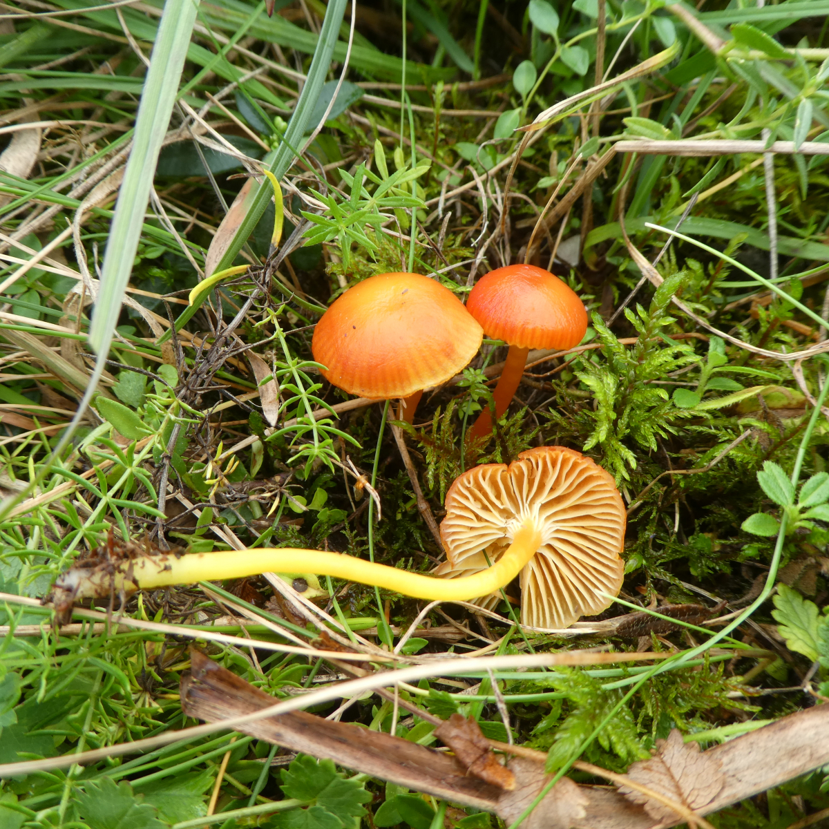 ich hatte in den letzten Monaten ja immer wieder verschiedene Saftlinge gefunden und mir dabei eingeprägt, auf was man für eine evtl. makroskopische Bestimmung achten sollte. So zum Beispiel, ob Hut und Stiel schmierig sind, Farbveränderungen und dergleichen.