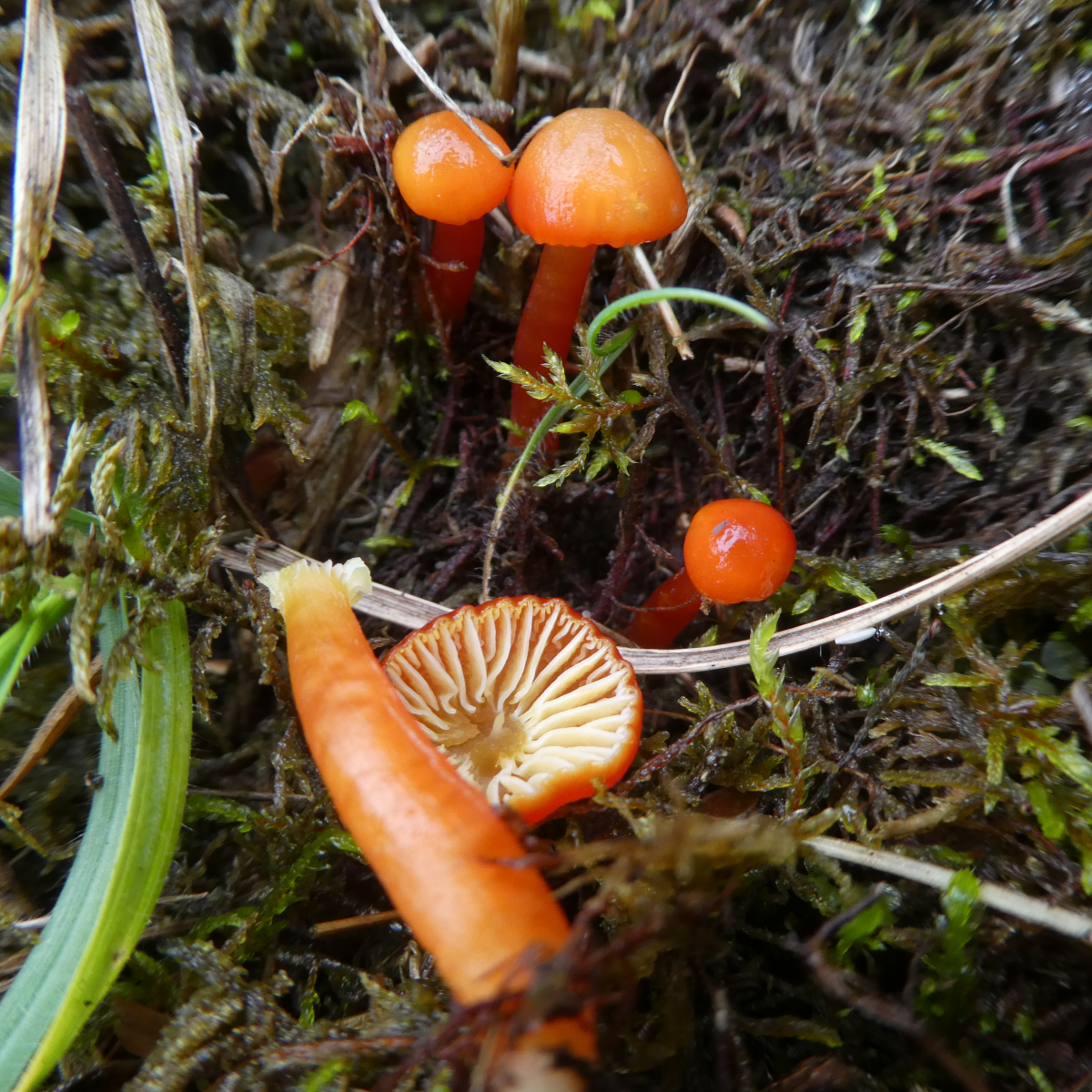 Hier hätte eventuell eine Kauprobe interessantes zu Tage geführt: wenn das blass geratene Bittere Saftlinge (Hygrocybe mucronella) sein sollten, dann würde man es tatsächlich schmecken (die sind nicht so bitter wie Cortinarius infractus oder so, aber doch wahrnehmbar).