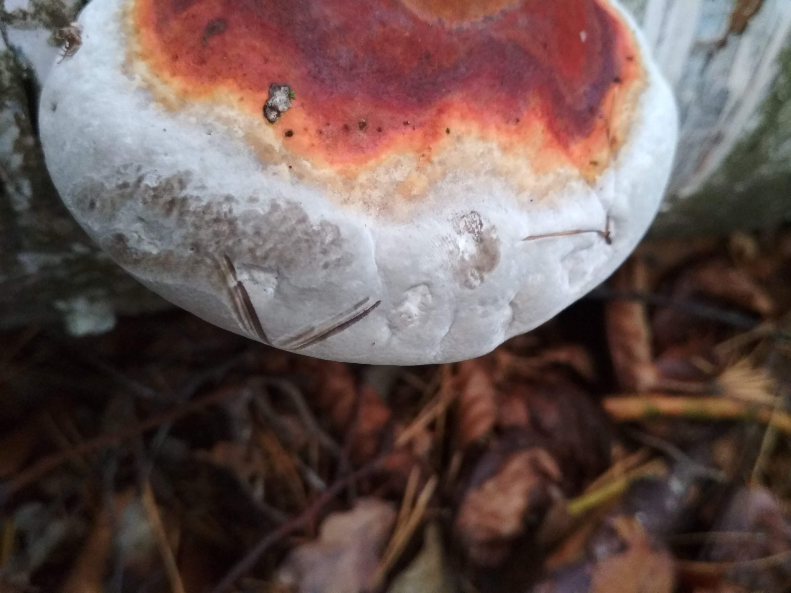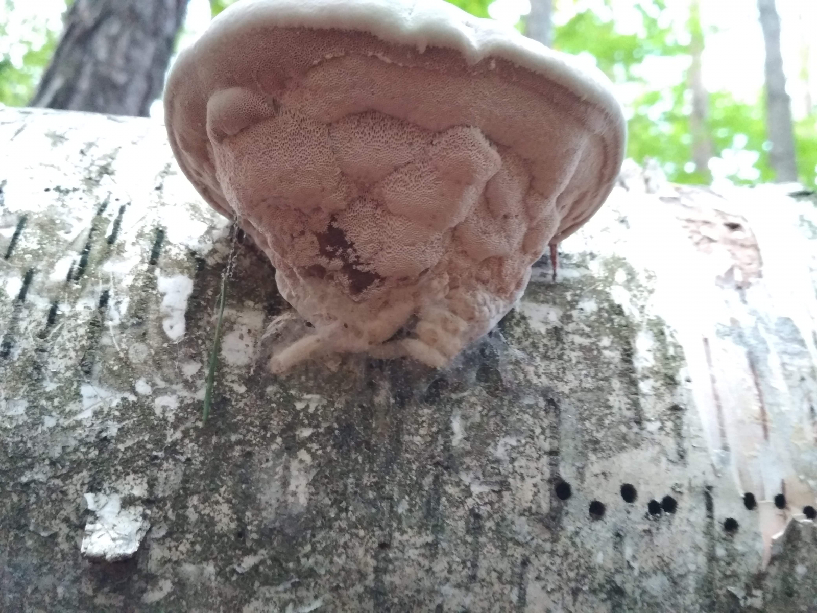 Gefunden an einem liegenden Birkenstamm. Konsitenz war fest-korkig. Bei Berührung bzw. Druck wurde die weiße Schicht dunkel (siehe Bild). Geruchs- oder Geschmacksangabe und Schnittbild habe ich leider nicht.