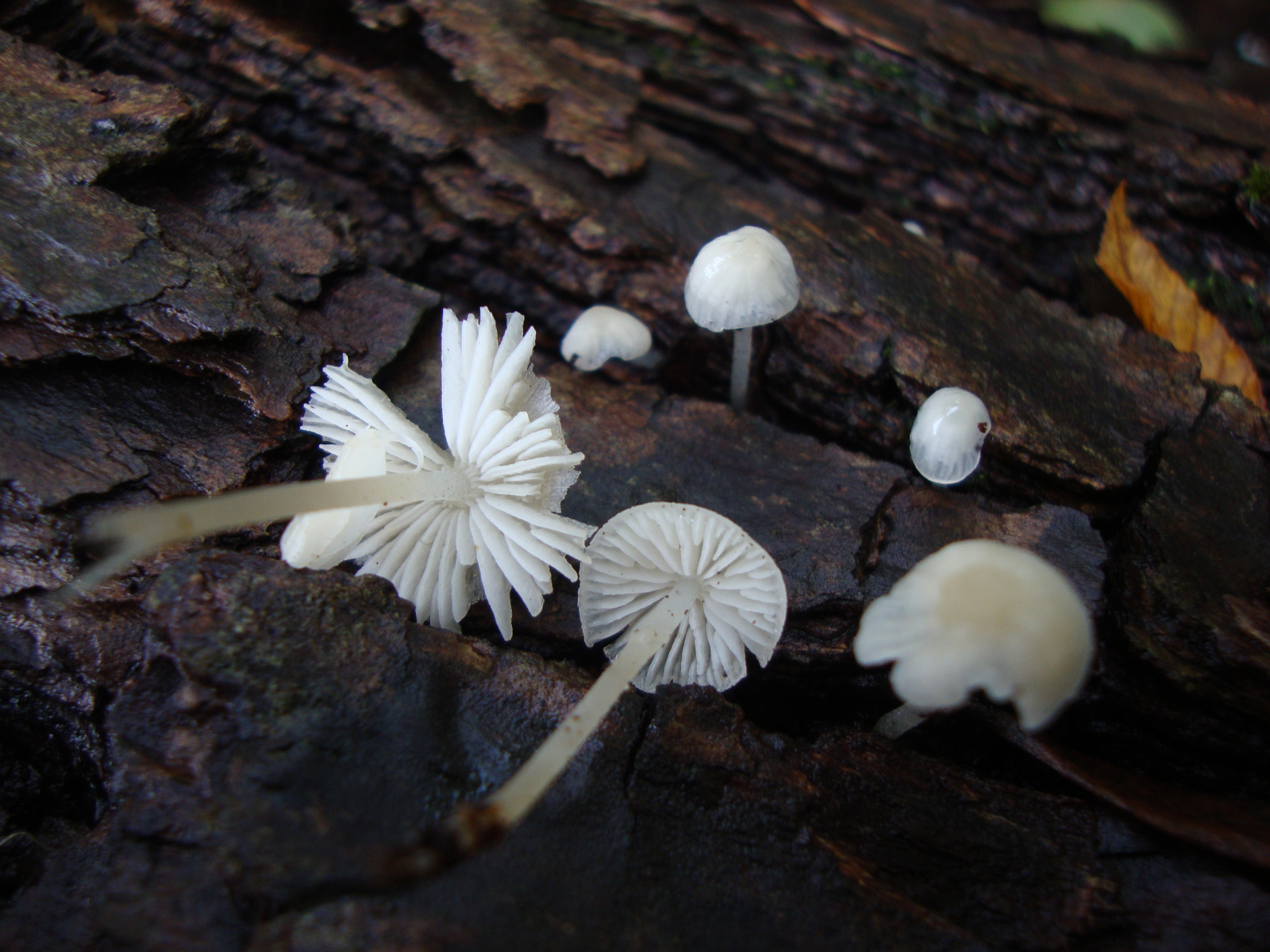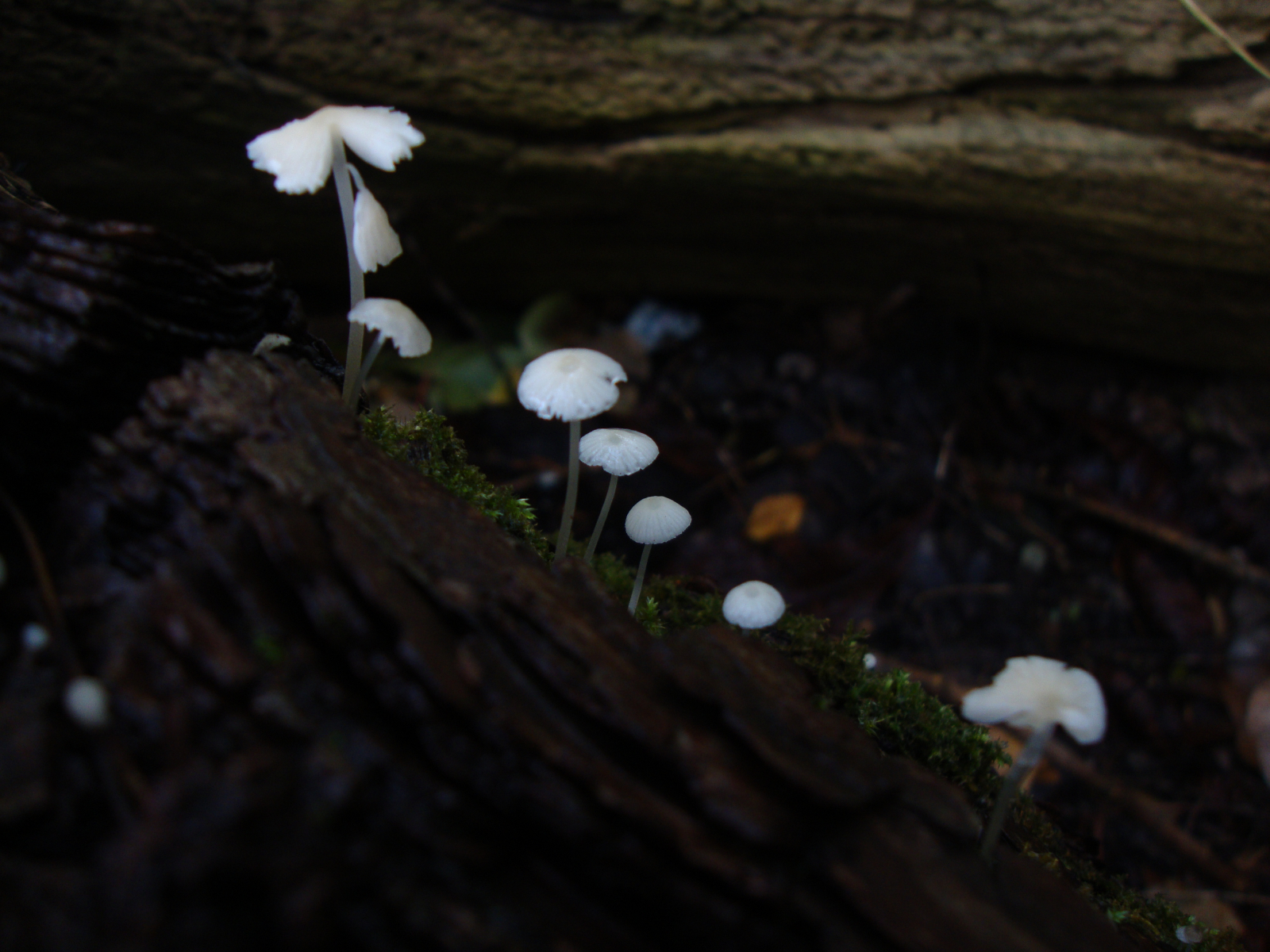 Diese Pilzchen wuchsen auf einer liegenden, wohl toten dicken Weide, die möglicherweise auch eine Rosskastanie war.