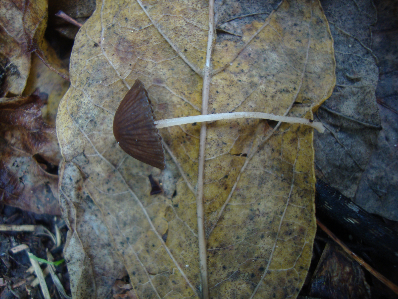 Habe schon Samthäubchen (Conocybe) oder den Zwerg-Faserling (Psathyrella pygmaea) in Betracht gezogen oder einen Tintling, bin aber auf keine halbwegs zufriedenstellende Lösung gekommen.
