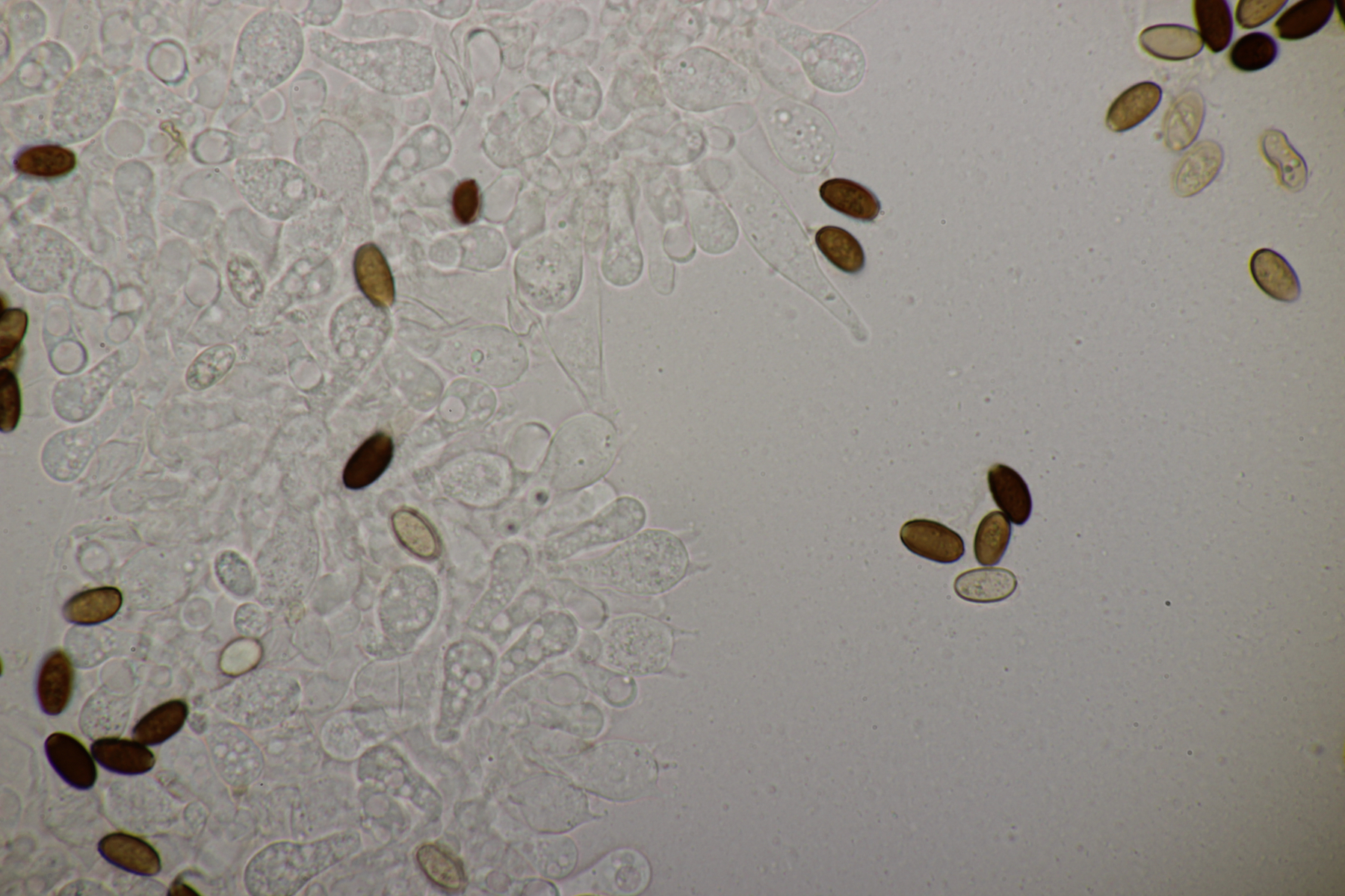 Der Hinweis speziell auf die rotbraune Lamellenschneide war Gold wert! Da stellt man in der Tat mit Andreas Melzers Schlüssel fest, daß es nicht viele Arten gibt, die da in Frage kommen. Wenn man dann noch die Sporengröße meines Fundes von (10.8+-0.7) µm x (5.5+-0.3) µm berücksichtigt, bleibt am Ende nur noch die von dir schon erwähnte Psathyrella microrhiza übrig.