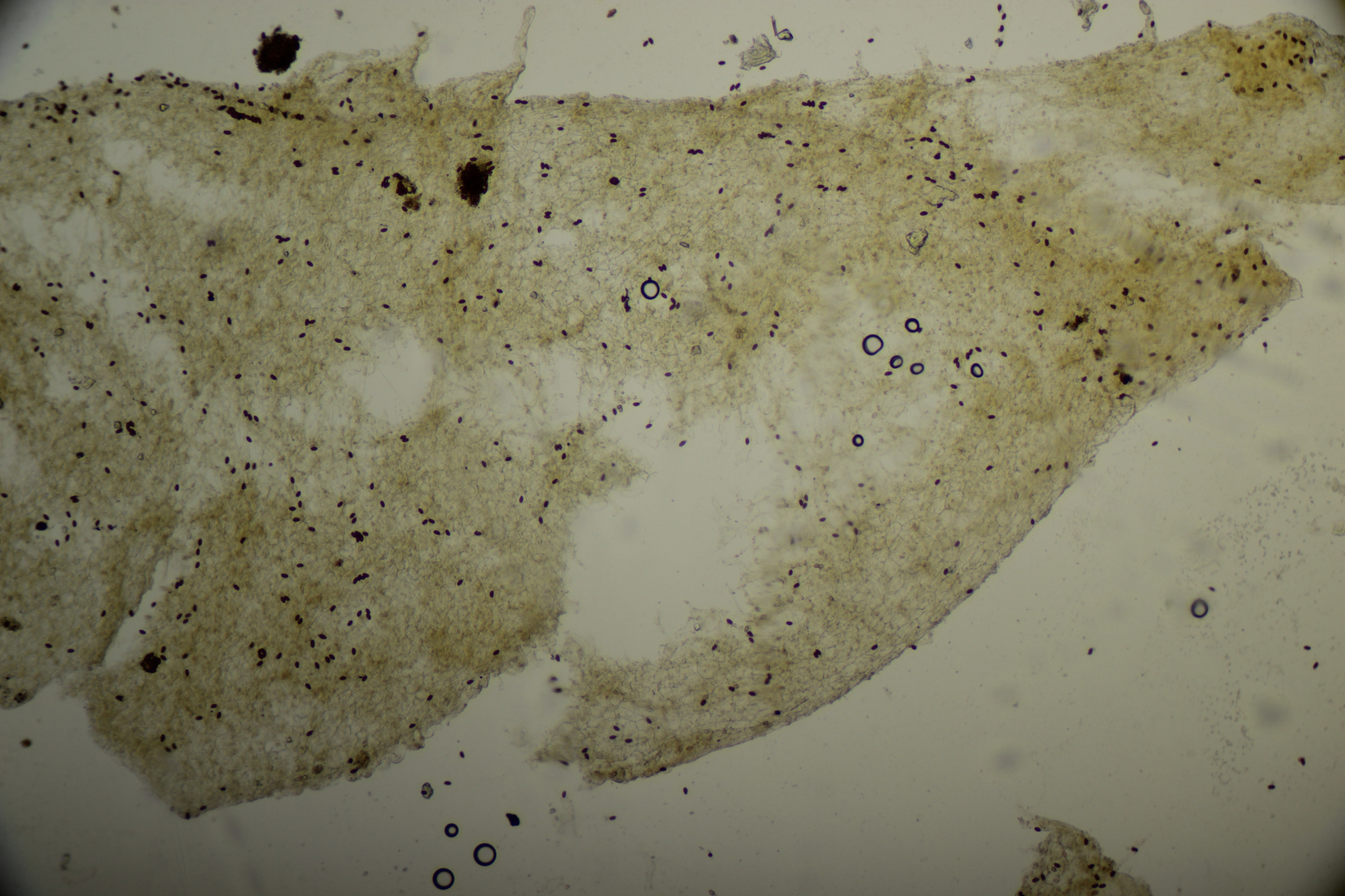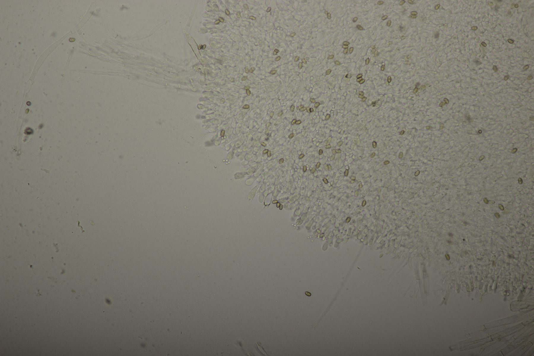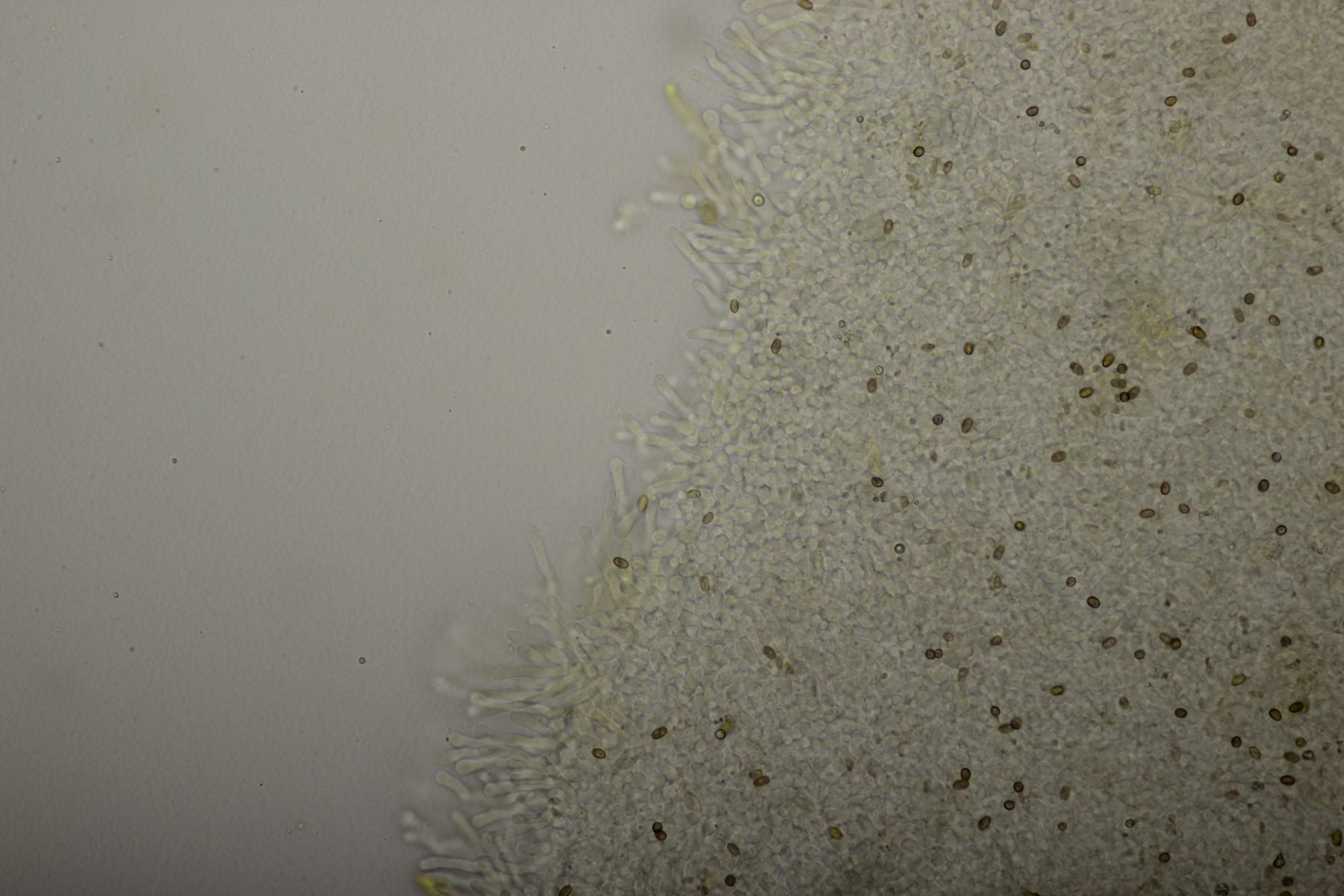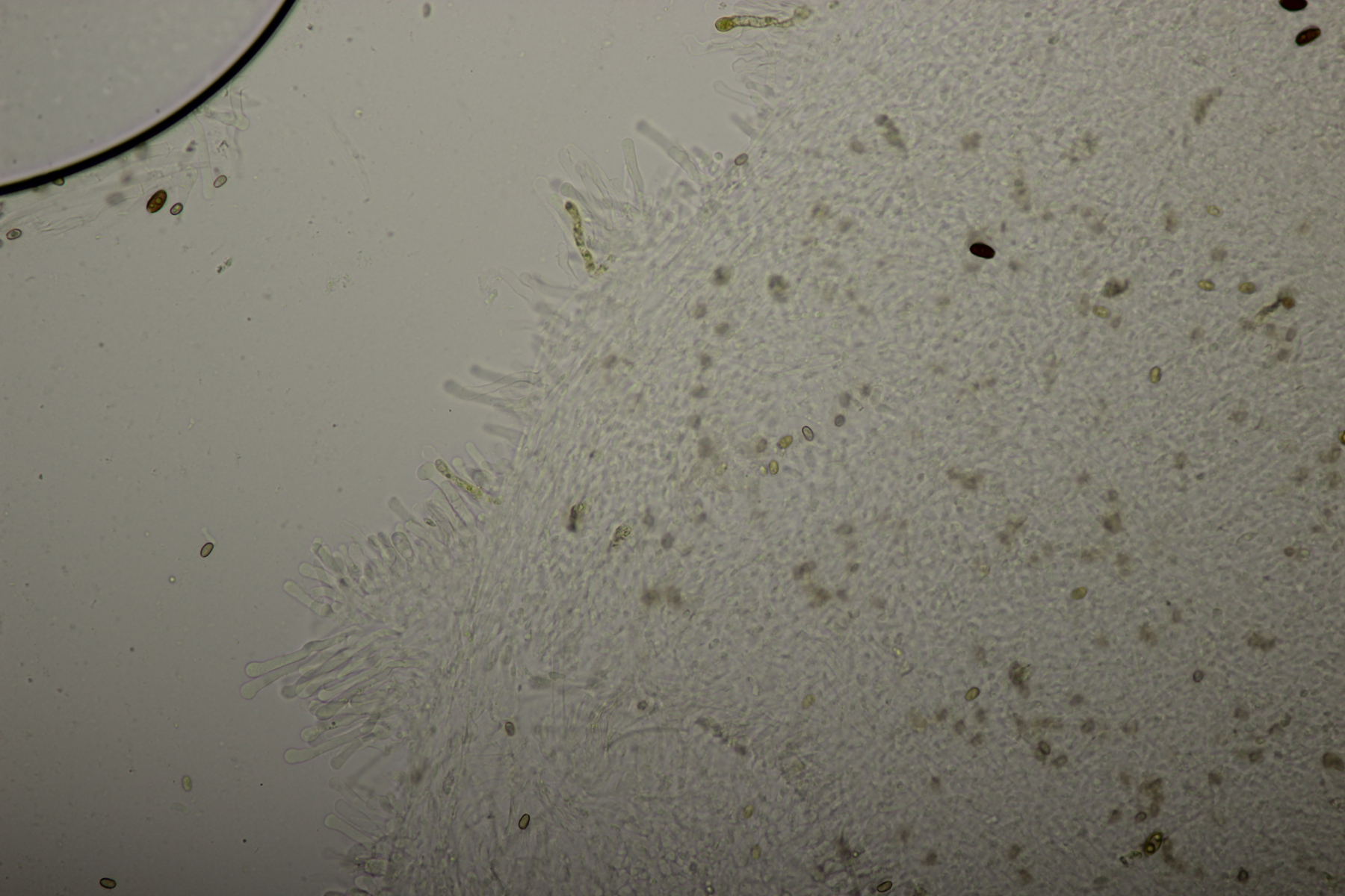 Hier mal ein Eindruck aus der Lamellenmitte. Es waren vereinzelt Pleurozystiden vorhanden