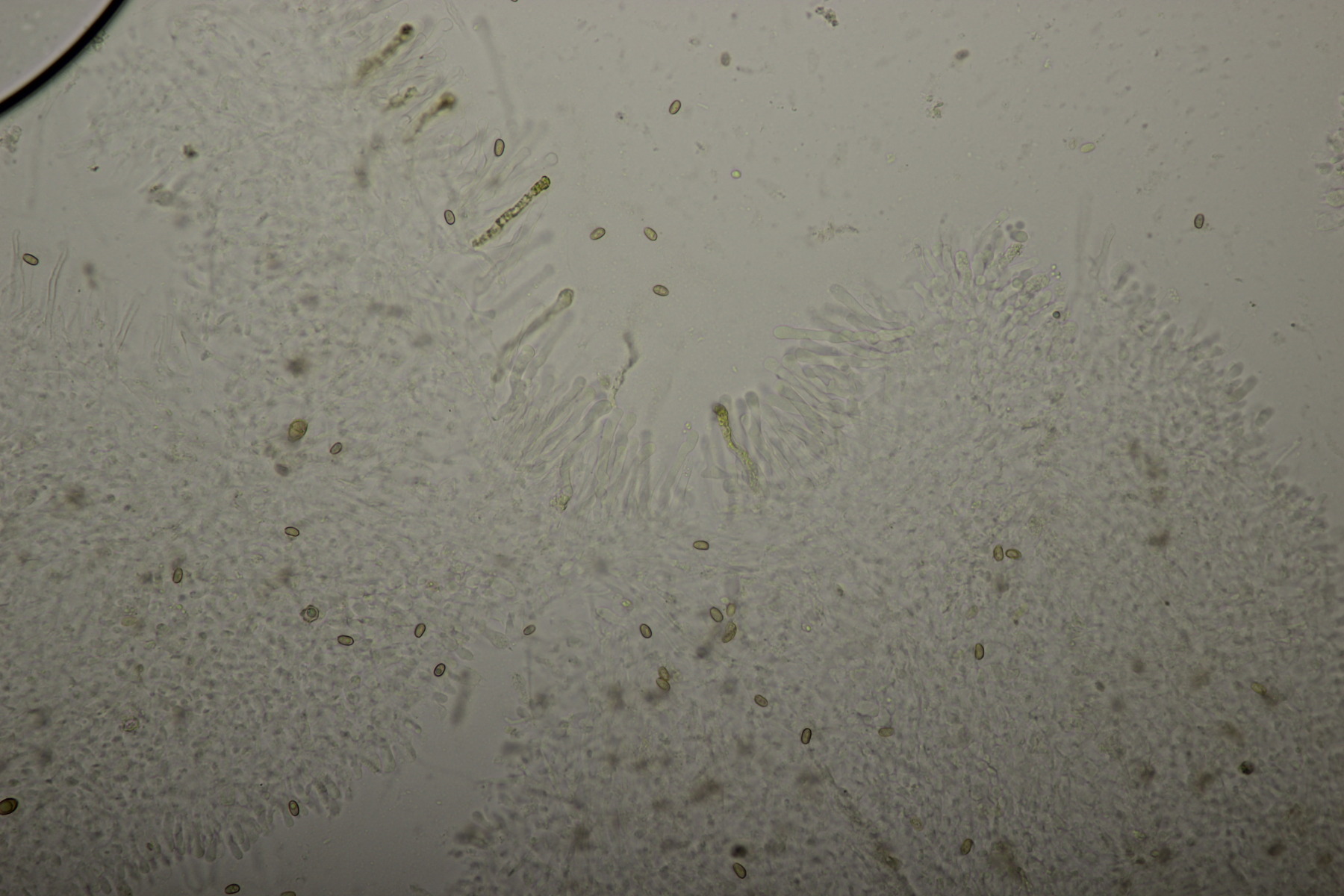 Hier mal ein Eindruck aus der Lamellenmitte. Es waren vereinzelt Pleurozystiden vorhanden