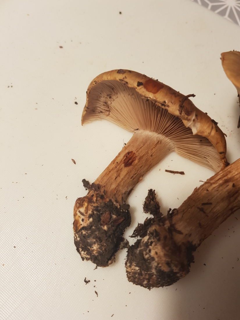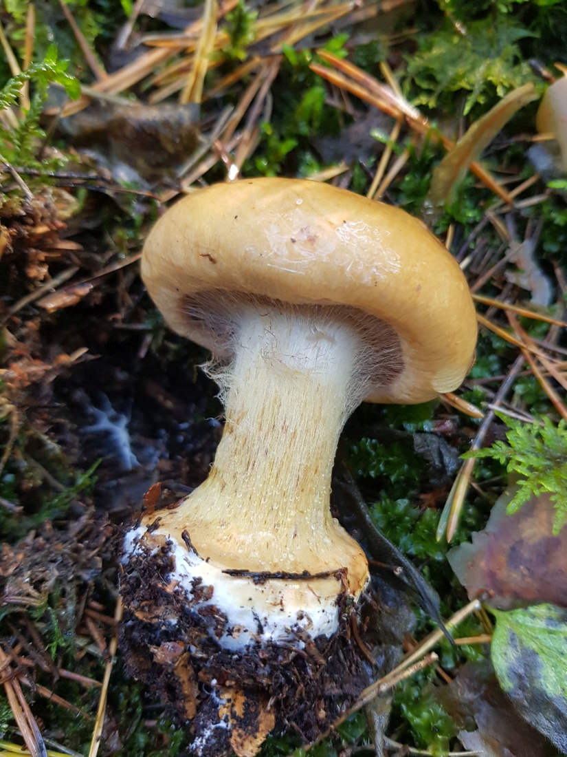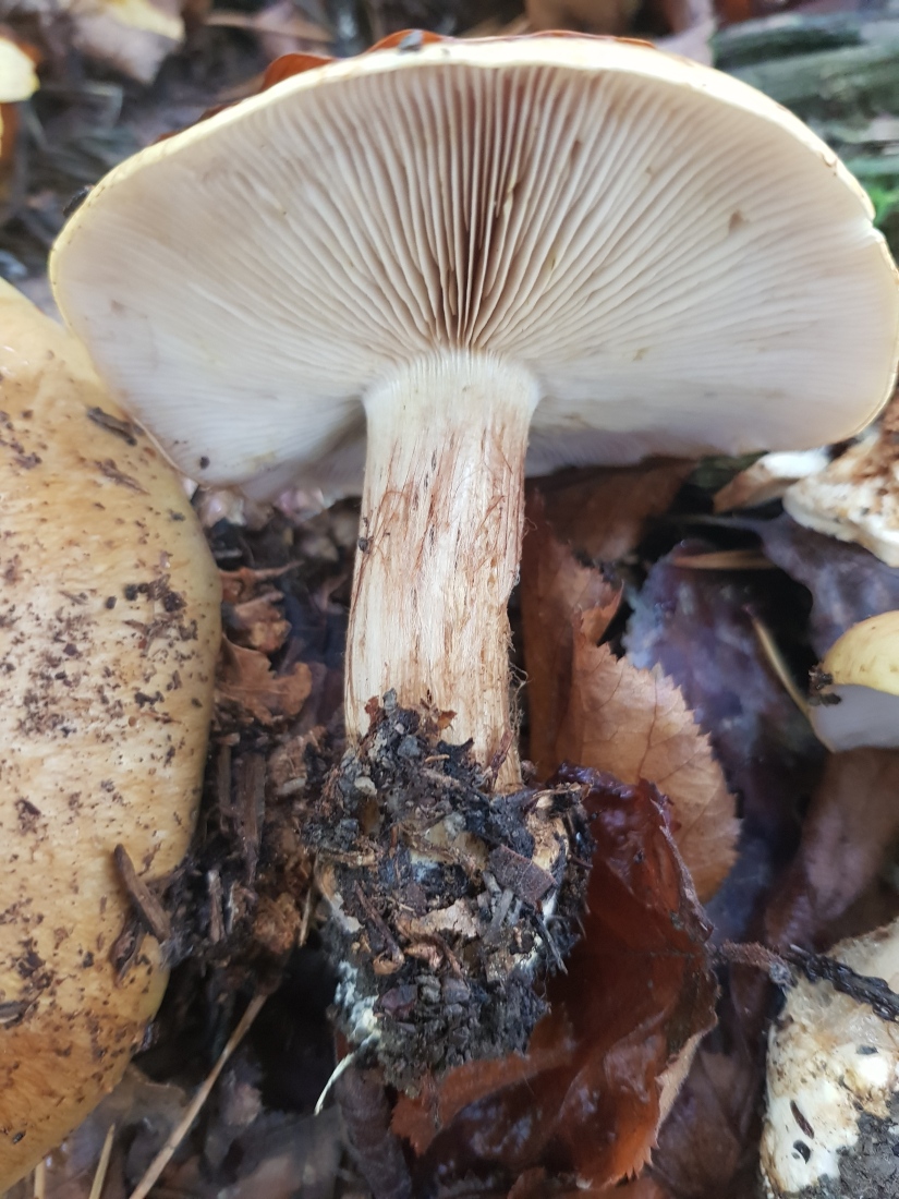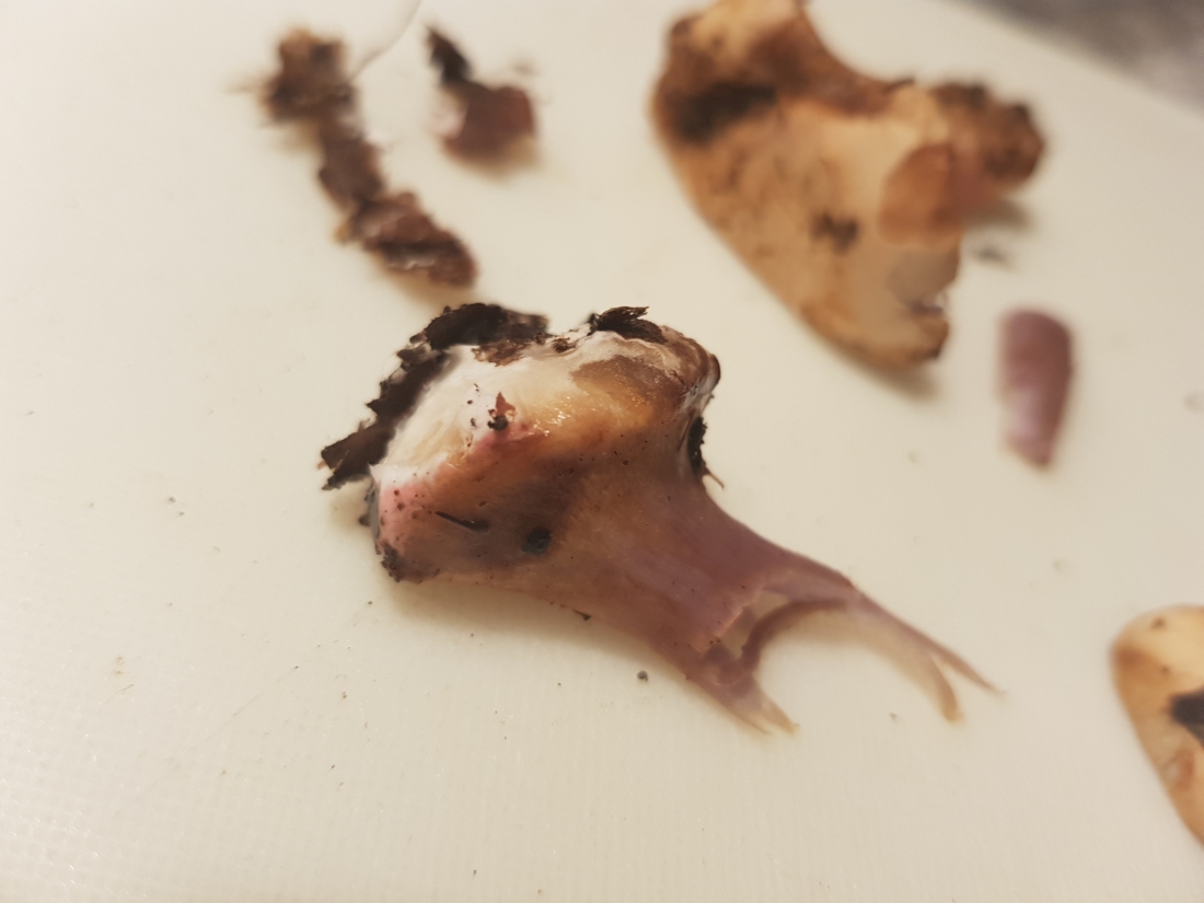 Gefunden im Fichtenforst umringt von Goldstieligen Leistlingen. Auffällige scharf gerandete Knolle. Fleisch cremefarben.