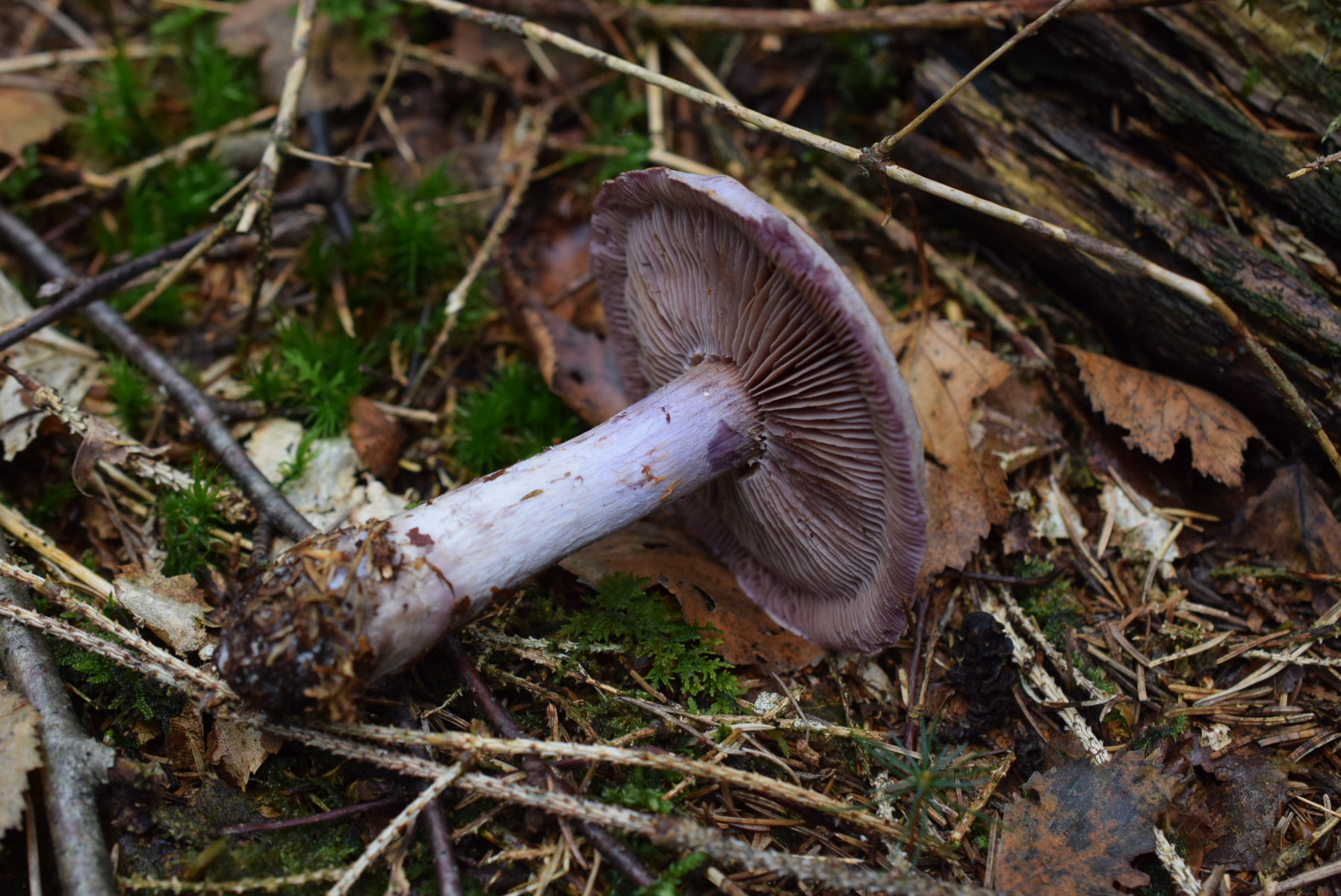 2. Cortinarius sp . gleich wie nr 1 ? Auch an Moorrand gefunden aber ca 15 Km weiter von nr. 1 in ein ganz anderes Moor , mehr Sumpfig als Moorgebiet . Bäume , Fichte , Birke , Buche Trockene Boden - Wiesen , Gras