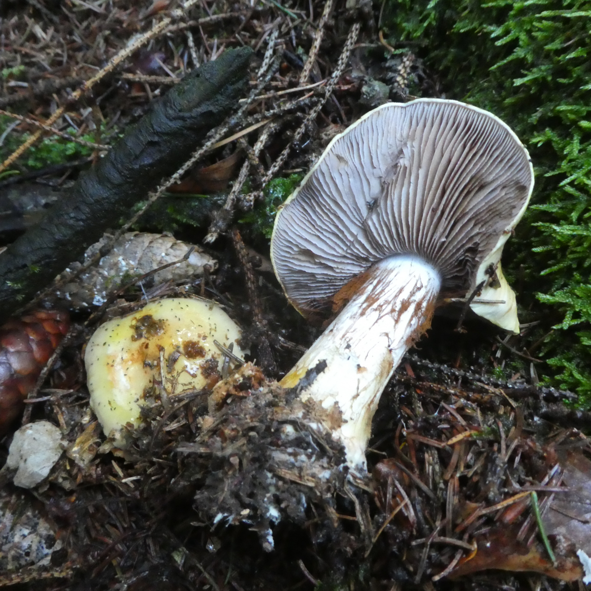 10.10.2019, Altmühltal, Mischwald an der Grenze zwischen Rotbuchenwald und Fichtenwald am Fusse einer, soweit ich mich erinnere, Fichte. Geruch für mich widerlich aber ich kann nicht sagen nach was der Pilz riecht. Höhe des kleineren Pilze ca. 8,5 cm, Hutdurchmesser ca 4,5 cm. Huthaut abziehbar. Weder Hut noch Stiel sonderlich schmierig/schleimig (es hatte stark geregnet aber dennoch).