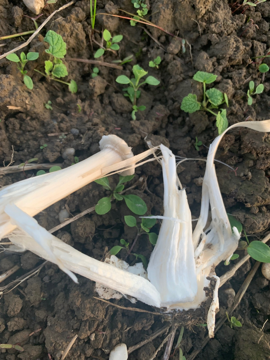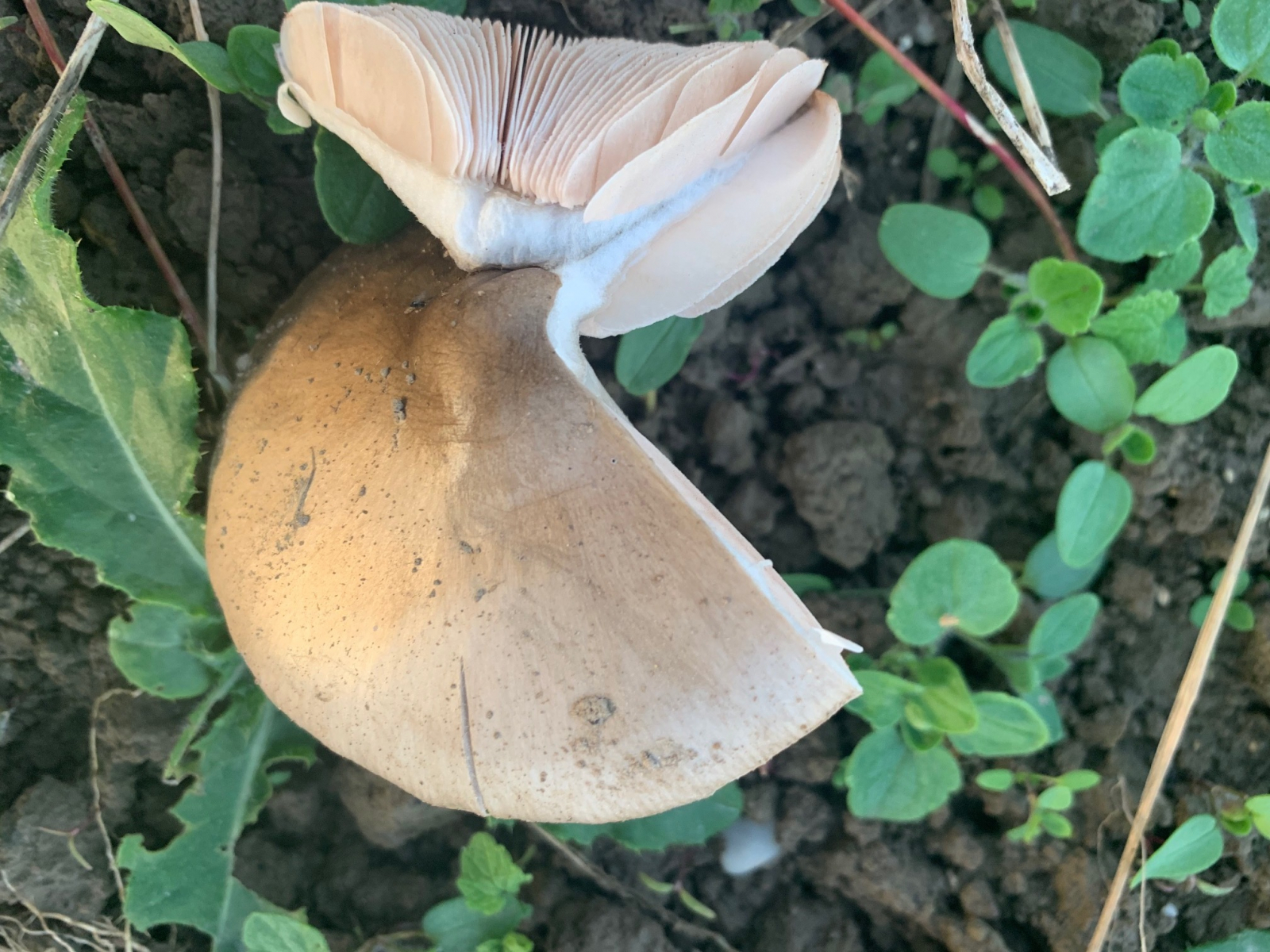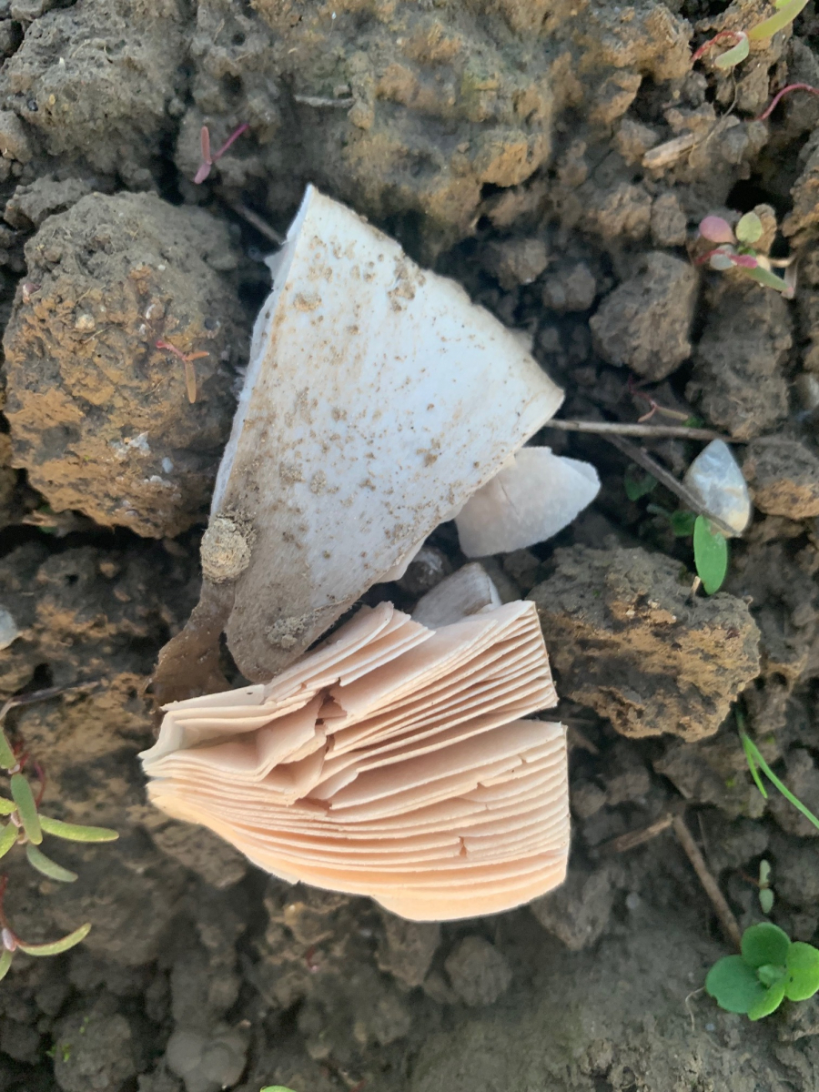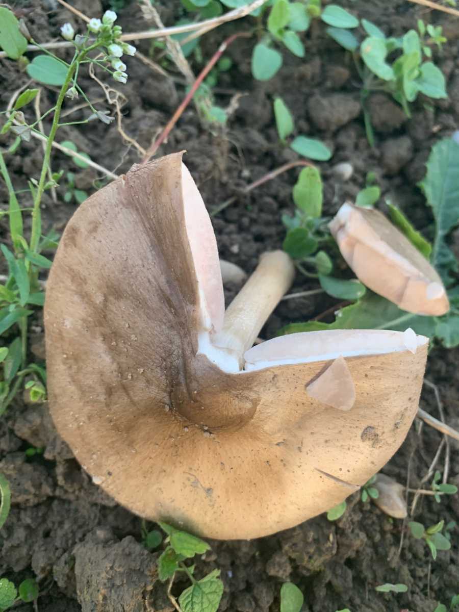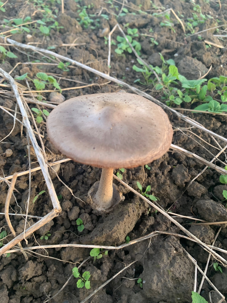Es hat jetzt Jahre gedauert, bis sich durch das Brach liegen lassen des Ackers neue Pflanzen und Pilze einfingen. Ich glaube, bei mir wächst jetzt der große Ackerscheidling.