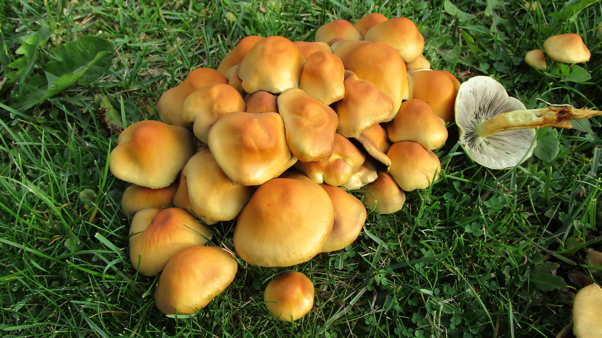 Irgendwo unter dem Gras ist Holz, sonst würdest du die Schwefelköpfe dort nicht finden. Vielleicht alte Baumwurzeln?