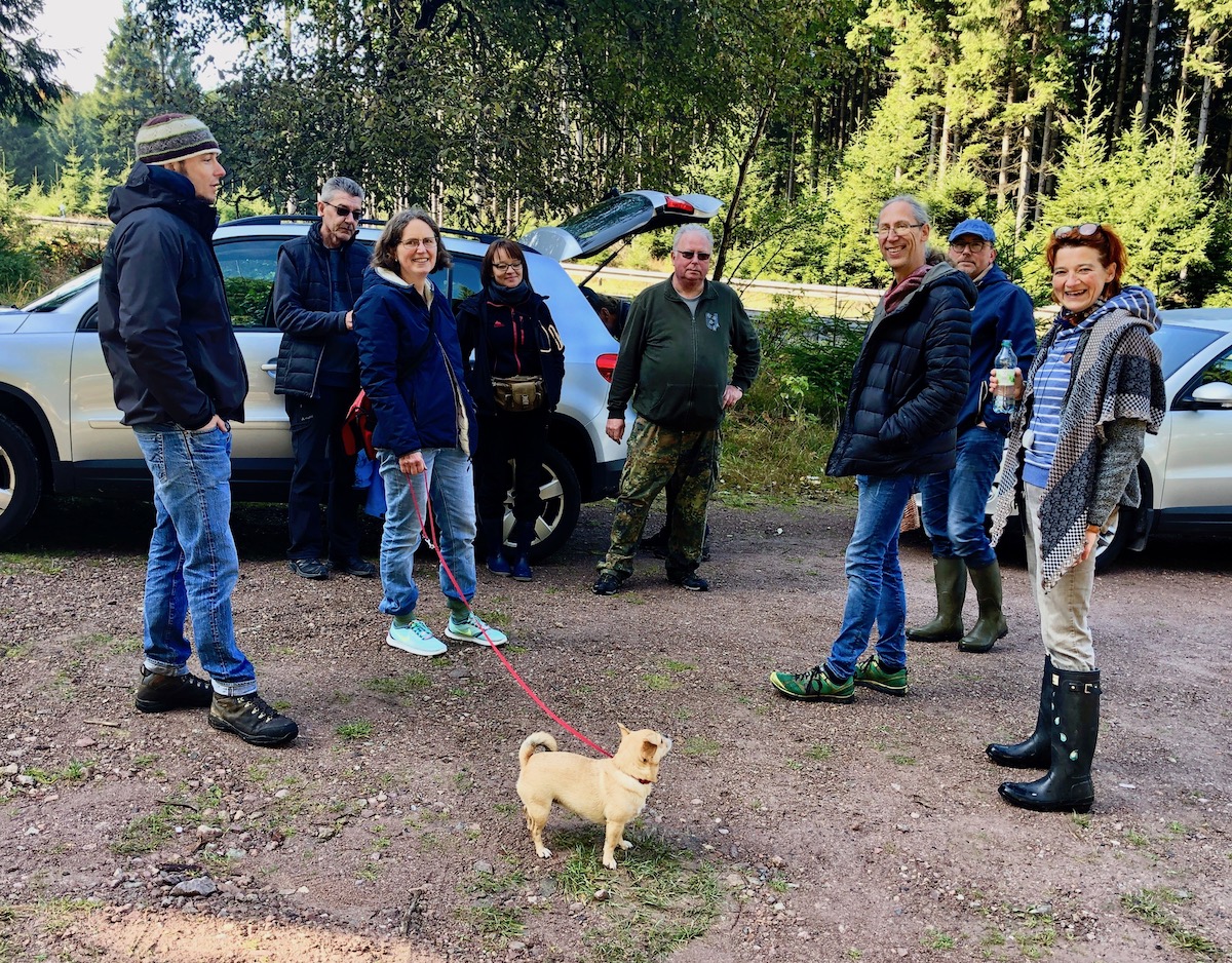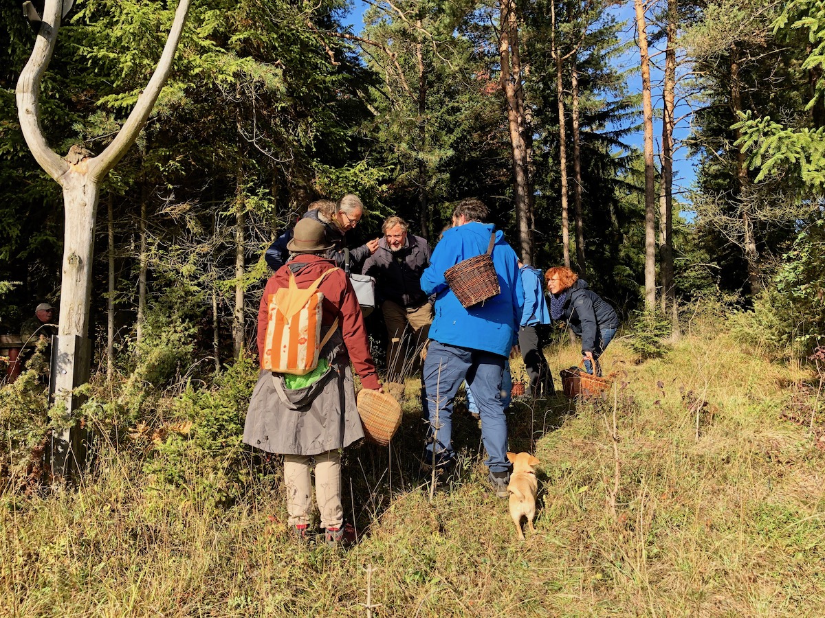 Ich will Euch aber aber nicht mit meinen Befindlichkeiten langweilen, sondern etwas vom Kurs berichten. Nach der langen Dürre hatten wir eine Woche wunderbarsten Regenwetters. Es gab keinen einzigen trockenen Tag, aber Andreas hatte offenbar einen Deal mit Petrus, und so goss es nie während unserer Exkursionen, sondern immer nur davor und danach, dann aber in Strömen. Optimale Voraussetzungen für Pilzwachstum - sollte man jedenfalls meinen. Auf alle Fälle ging es gut los: