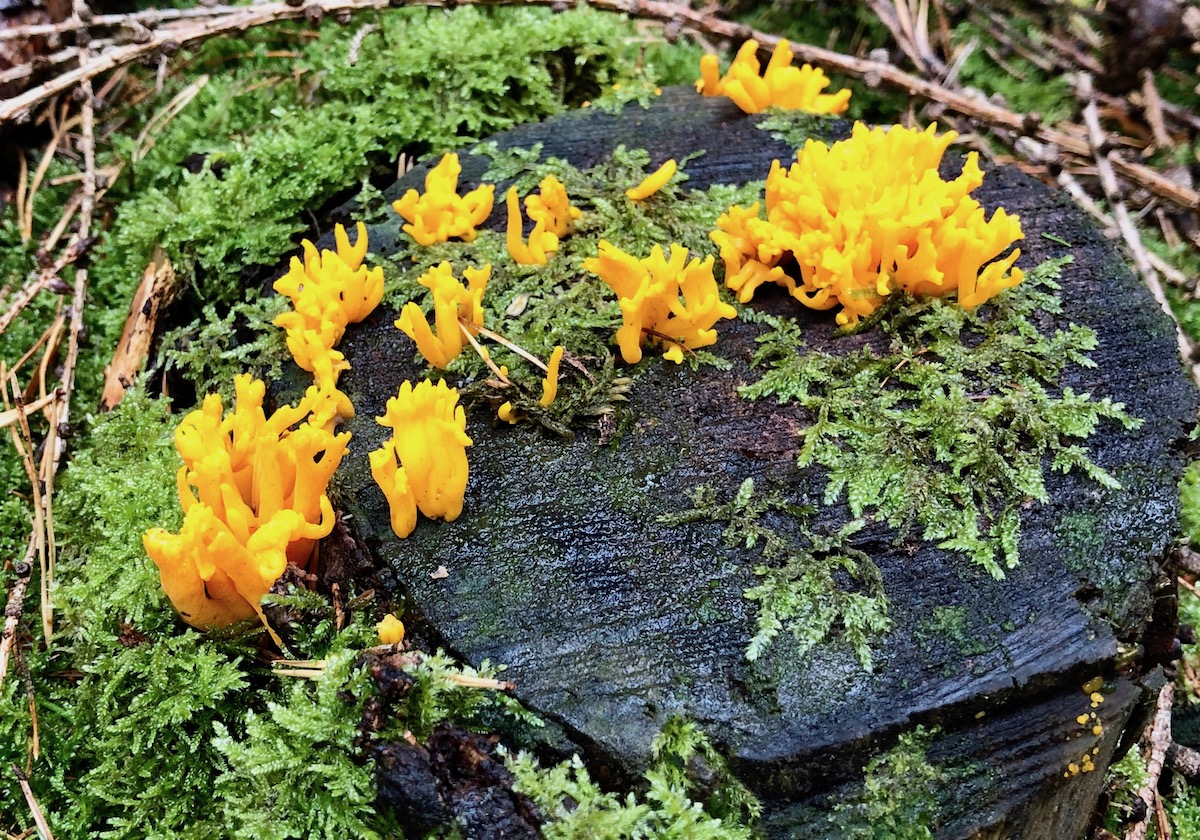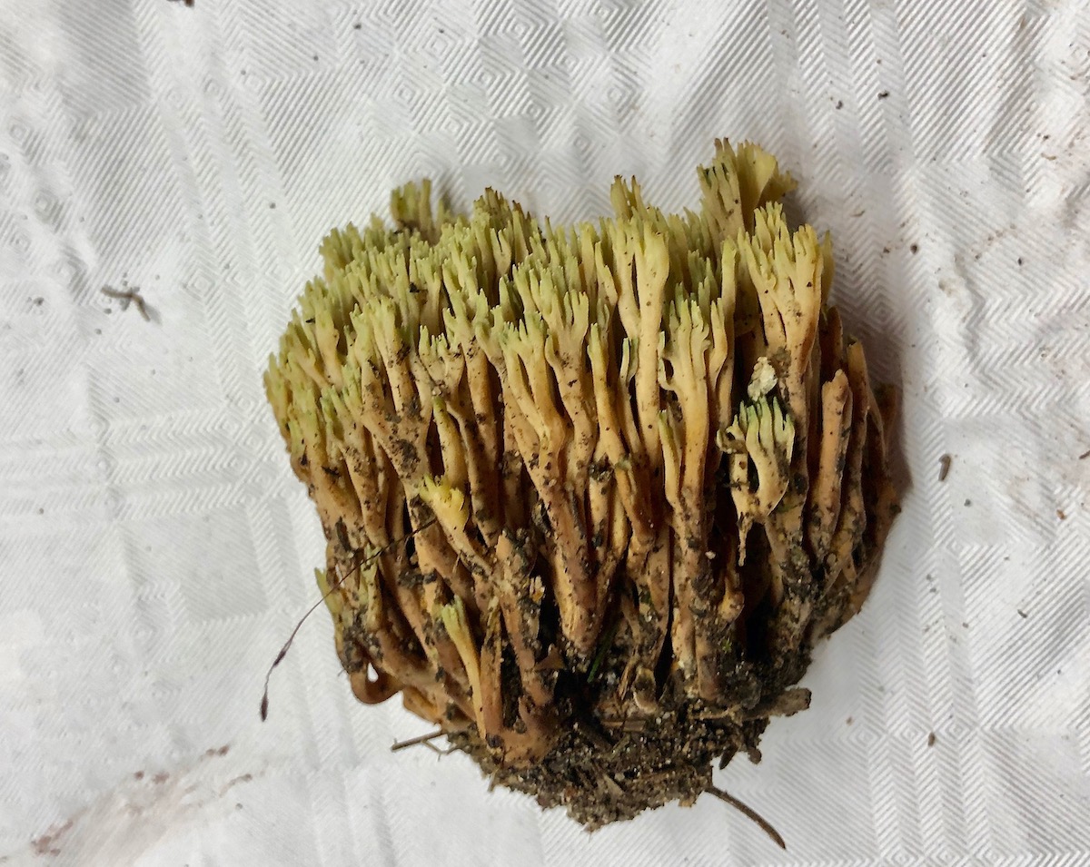 Neben vielen anderen Pilzen hier die Grünspitzige Koralle