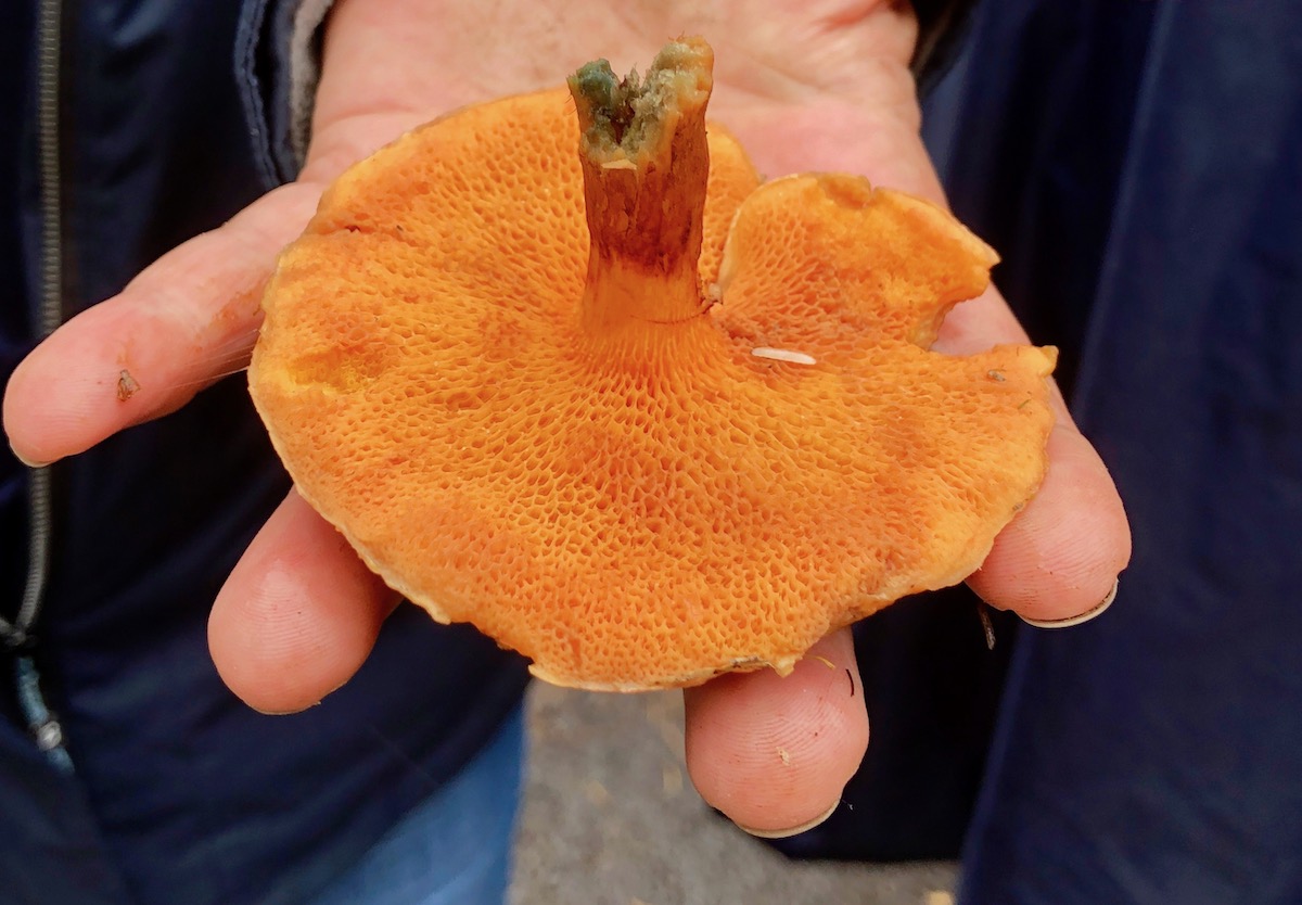 Einen Leberreischling gab es auch. Den kannte ich zwar schon, aber die Röhren hatte ich noch nie so genau betrachtet. Sie sehen ein bisschen aus wie Makkaroni und lassen sich einzeln mit der Pinzette entfernen.