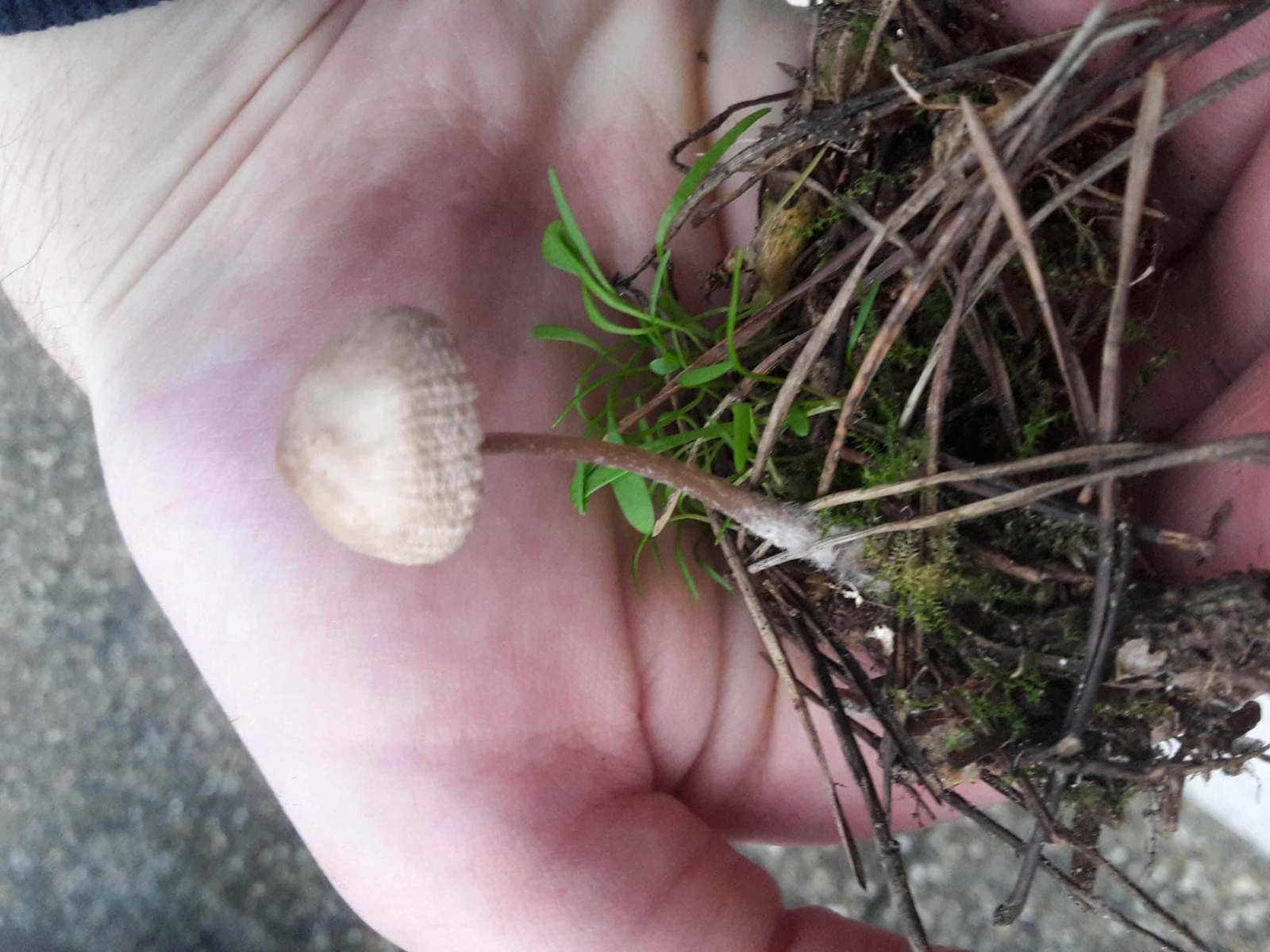 Hallo, diesen Pilz (alle Fotos sind vom selben Pilz) habe ich heute im sandigen Boden eines Kiefernwaldes auf einem leicht eingegrabenen stark verrotteten Kiefernzapfen gefunden. Der Fruchtkörper selbst schien aus einem am Zapfen hängenden Zweig zu sitzen, aber das Myzel kann ja unsichtbarerweise noch im Zapfen selbst sitzen. Leider ist das kleine Zweicgstück erst auf dem Rückweg vom Zapfen abgebrochen, sonst hätte ich das früher gemerkt und noch ein paar weitere dieser Pilze auf das Substrat überprüft. Hoffentlich können die Experten*innen dies auch so bestimmen. Der Stiel ist ca 2 mm dick und 3-3,5 cm lang (mit Lineal gemessen). Scheinbar (?) gleiche aussehende Exemplare kommen am Fundort in Massen vor. Würde gerne wissen was es ist, wie ich es von ähnlichen Pilzen unterscheiden kann, besonders wie die Unterschiedung von nicht Zapfen besiedelnden ähnlich aussehenden zur selben Zeit bzw. am selben Fundort vorkommenden Pilzen, falls vorhanden, auch ohne Freischarren des Zapfens gelingt, und last but not least den Speisewert. Außerdem noch wie viele ich ohne Gefährung des Vorkommens über einen längeren Zeitpunkt ernten kann. Übrigens, für wie viele Fruchtkörper reicht so ein Zapfen aus und wie viele werden tatsächlich produziert? Vielen Dank schon mal für die Hilfe bei der ersten Auseinandersetzung mit der Faszination Pilze.