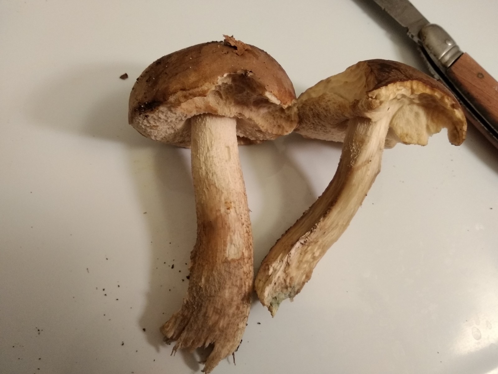 6. Vielfärbender Birkenpilz? Siehe Stielbasis rechts, wuchs an einer Birke.