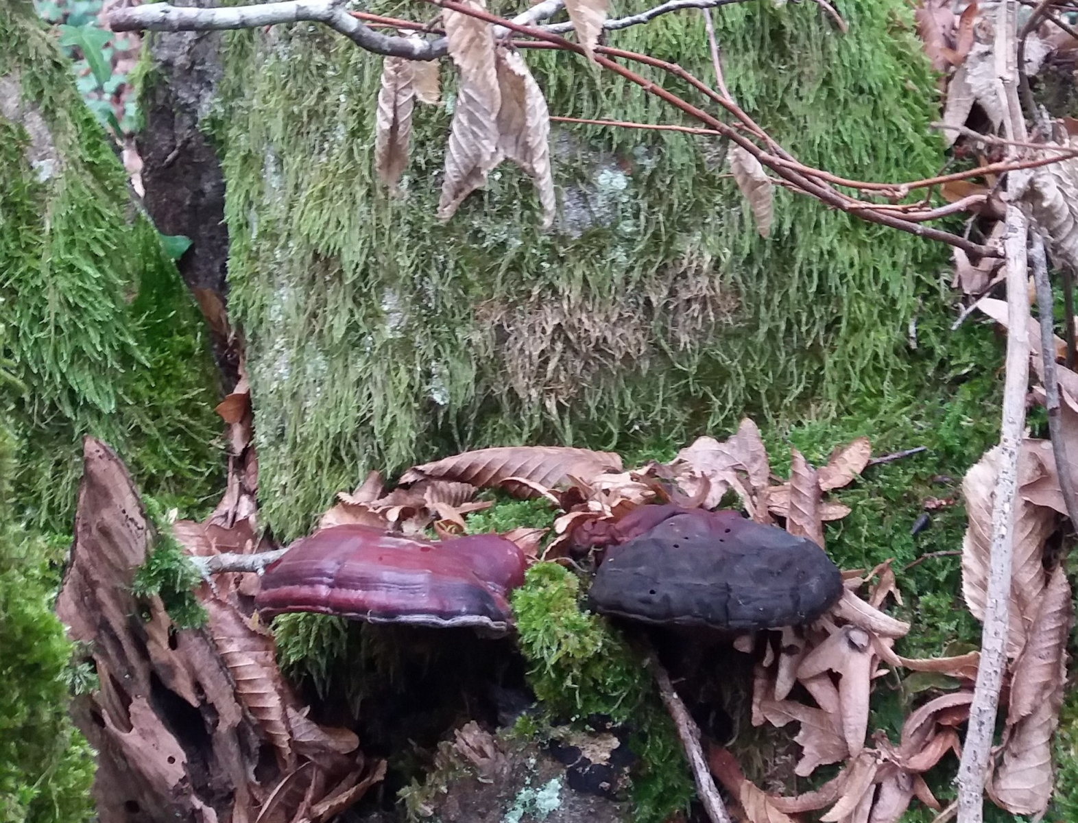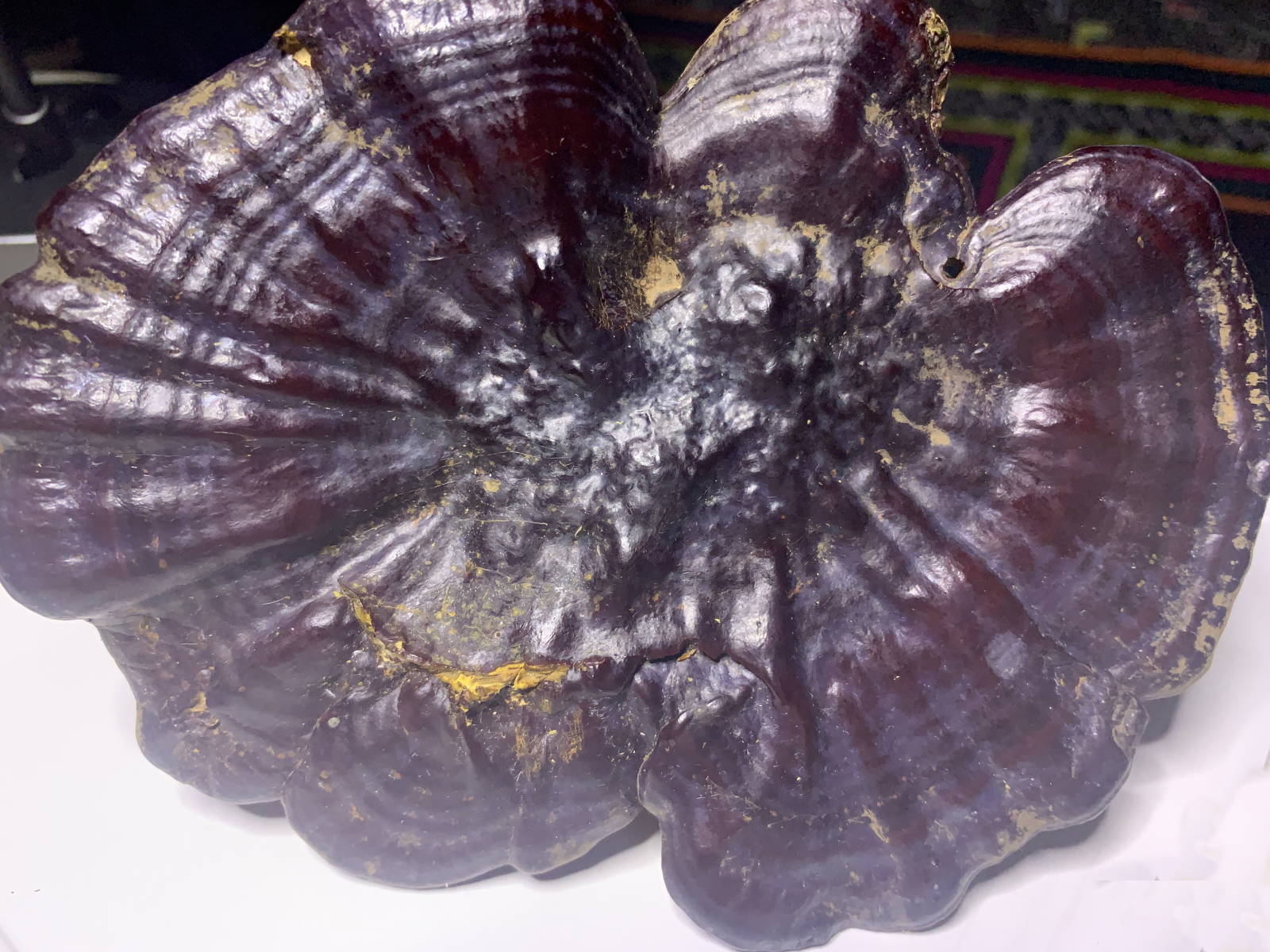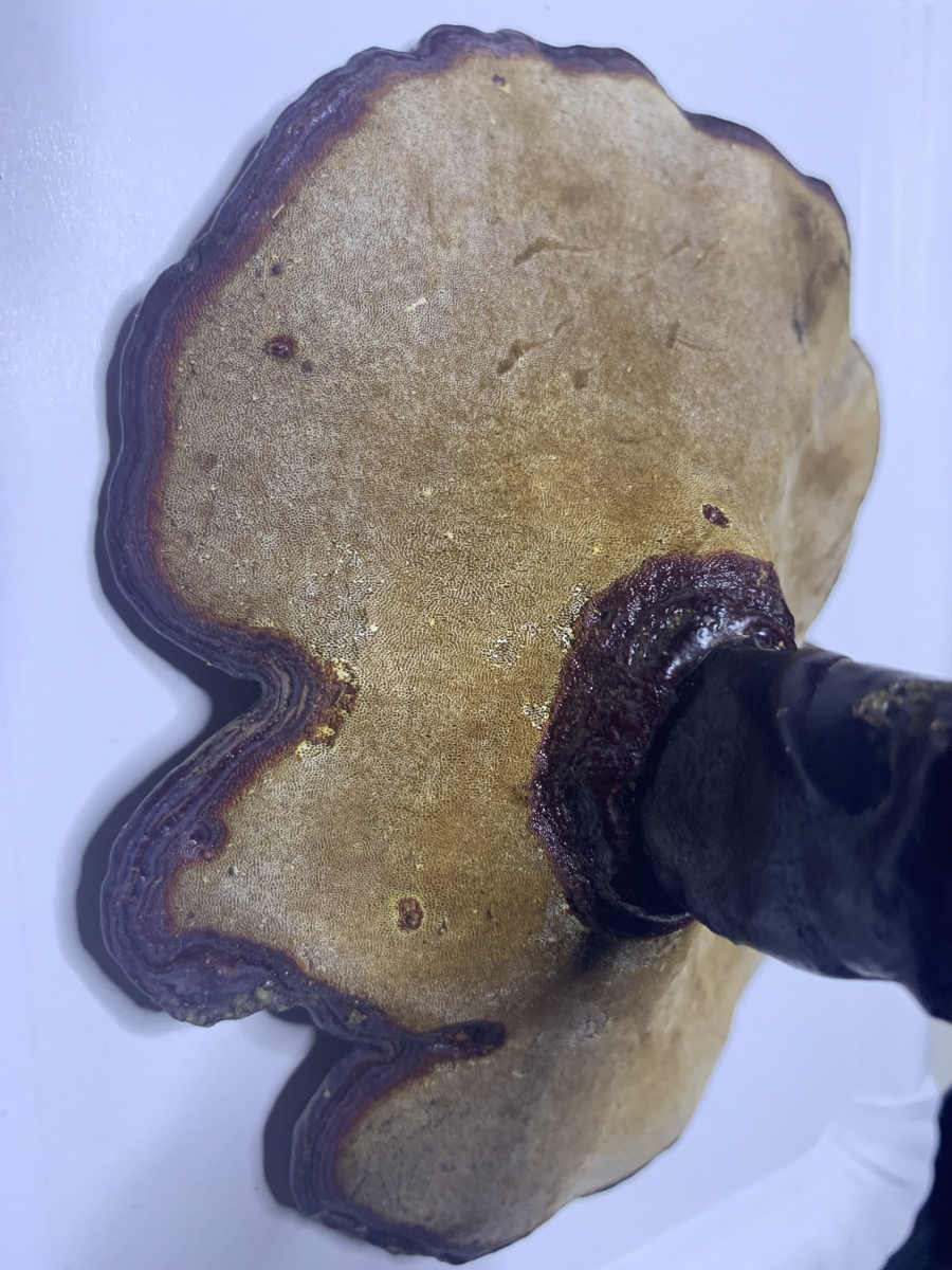 Also glänzender Lackporling, bei dem das purpur schimmernde durchaus normal ist. Und der auch schon mal als Ling Zhi bezeichnet wird, neben dem wissenschaftlichen Namen Ganoderma Lucidum.