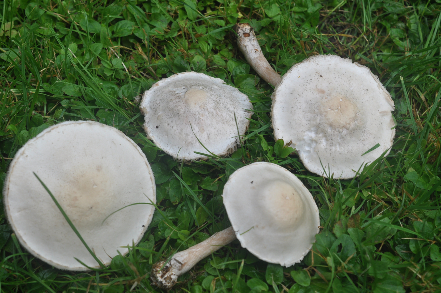 Ich habe mir einige der FK angeschaut; leider waren fast alle HĂźte schneckenzerfressen, man konnte keine Stielbasis herausbekommen, weil sie schon so matschert waren, und die grĂśĂeren hatte er leider alle schon zertreten, um sie "wegzukriegen" (!). Vllt. läĂt er jetzt die nächsten mal unbehelligt, und ich kann evtl. noch welche holen.