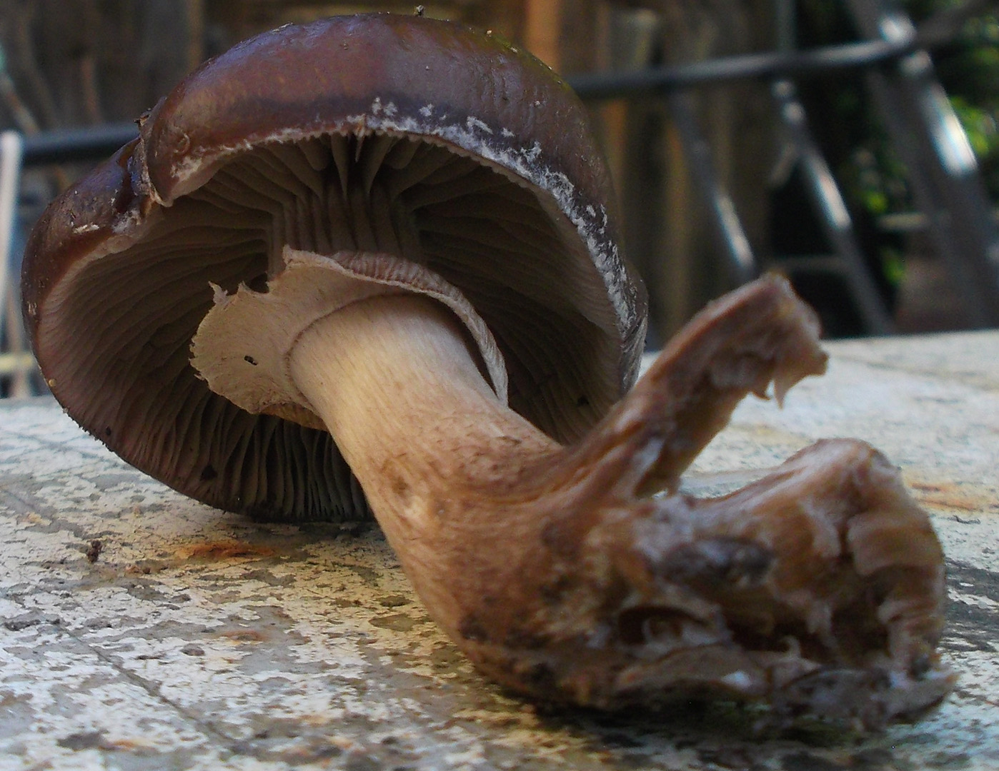 vergleich doch mal mit dem Riesenträuschling Stropharia rugosoannulata.
