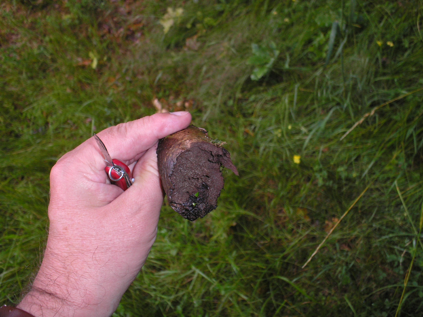 Aber rein vom Habtius her würde ich eher auf einen Stäubling/Bovist tippen, da mir der Pilz überhaupt nicht hypogäisch (Anmerkung Gerd: unterirdisch) gewachsen vorkommt.- Dazu muss ich eine Anmerkung loswerden: