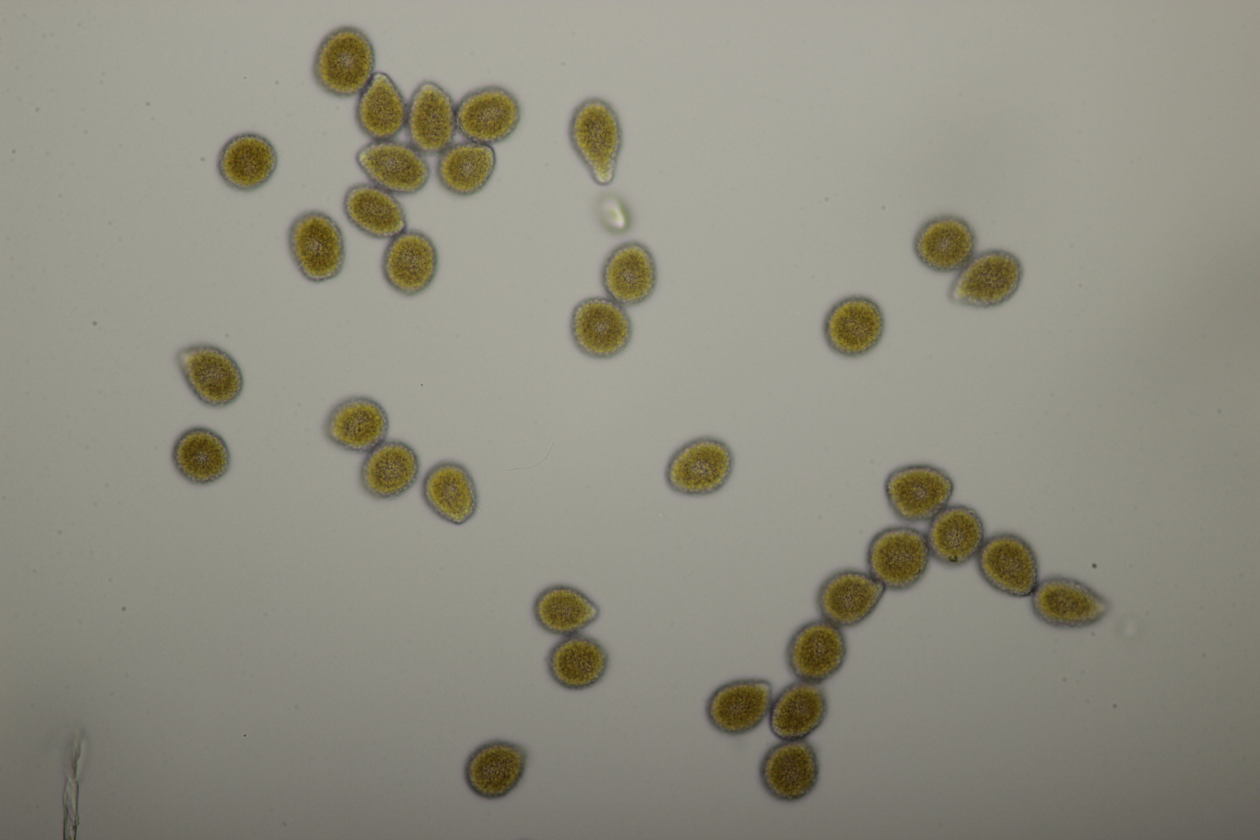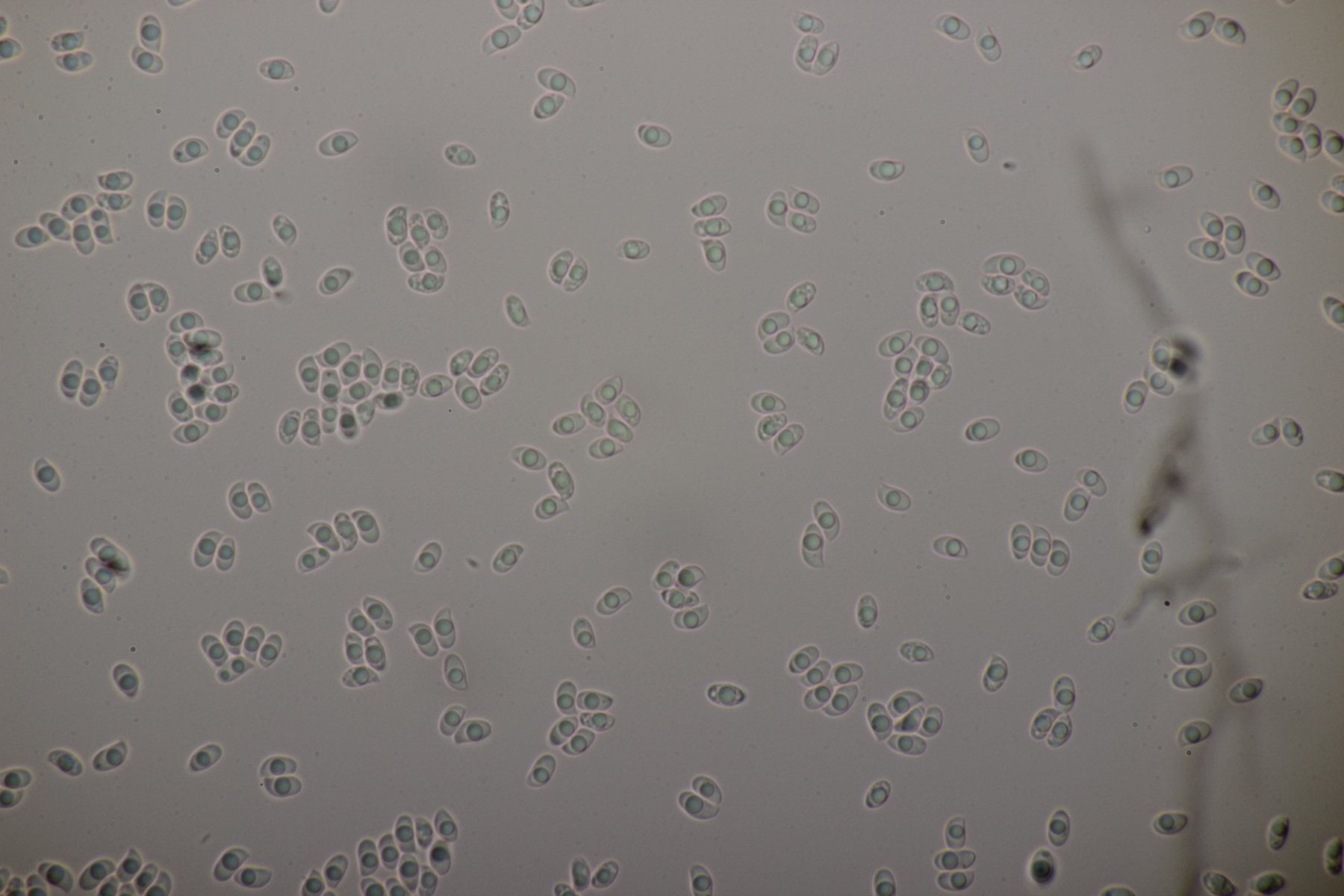 als kleiner Nachtrag auch noch ein paar Paxillus-Sporen von einem Exemplar, das unter einer alleinstehenden Birke am Straßenrand wuchs. Meiner Meinung nach ist das Sporenpulver deutlich rot-braun, außerdem haben die Sporen auch einen kleinen Knick. Das würde dann ja insgesamt für P. cuprinus sprechen. Was meint ihr?