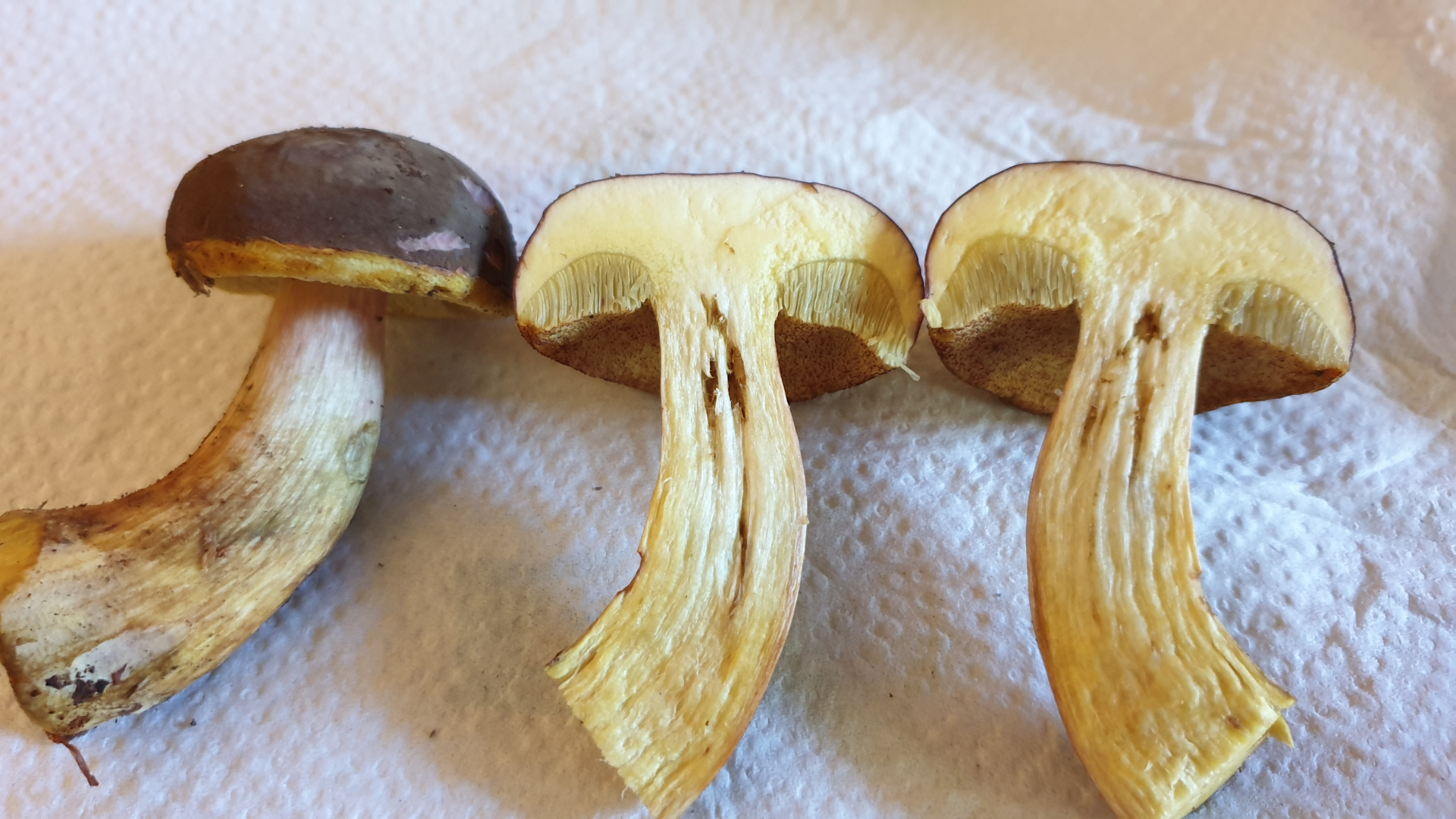 Den anderen kenne ich nicht. Die letzten 3 Bilder zeigen vielleicht Maronenröhrlinge? Das Futter verfärbt sich auf Druck kaum.