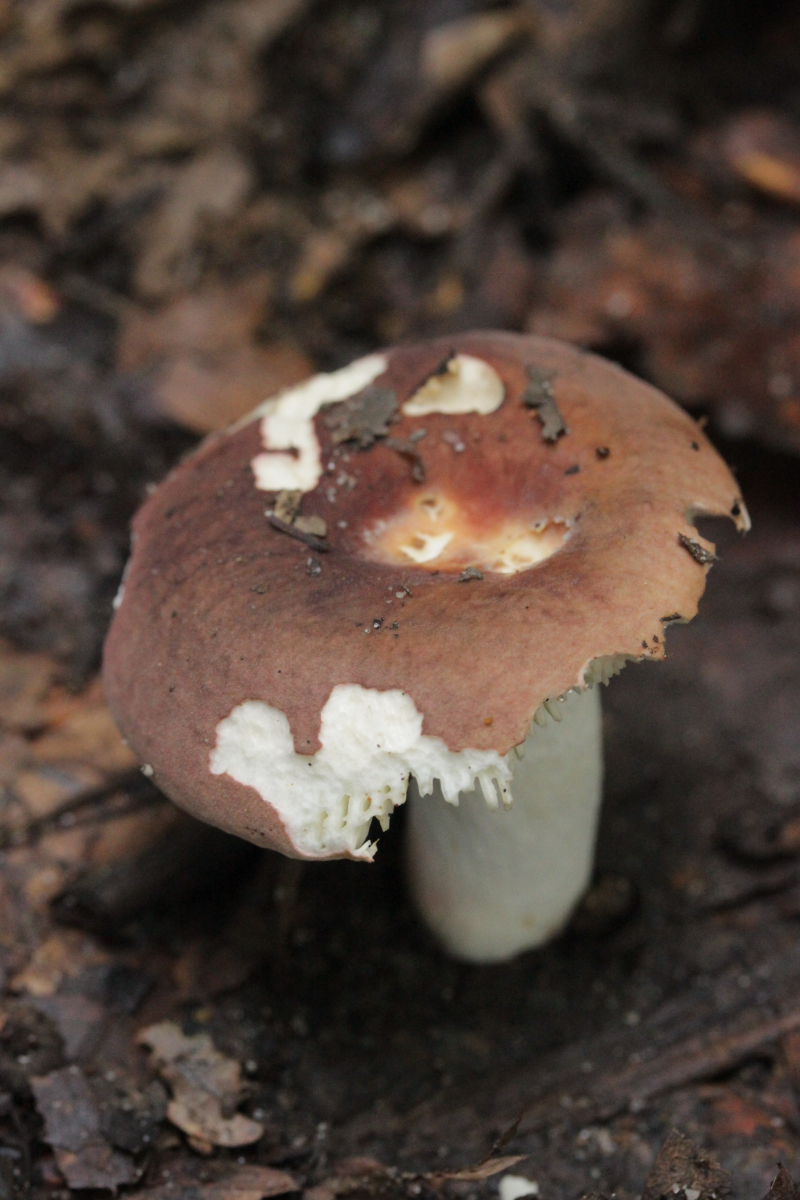 9. Russula Subsect. Xerampelinae. Fischgeruch und eine blaue Reaktion mit Eisensulfat. Sporenpulverfarbe IIIa. Wandert heute Abend noch unters Mikroskop.