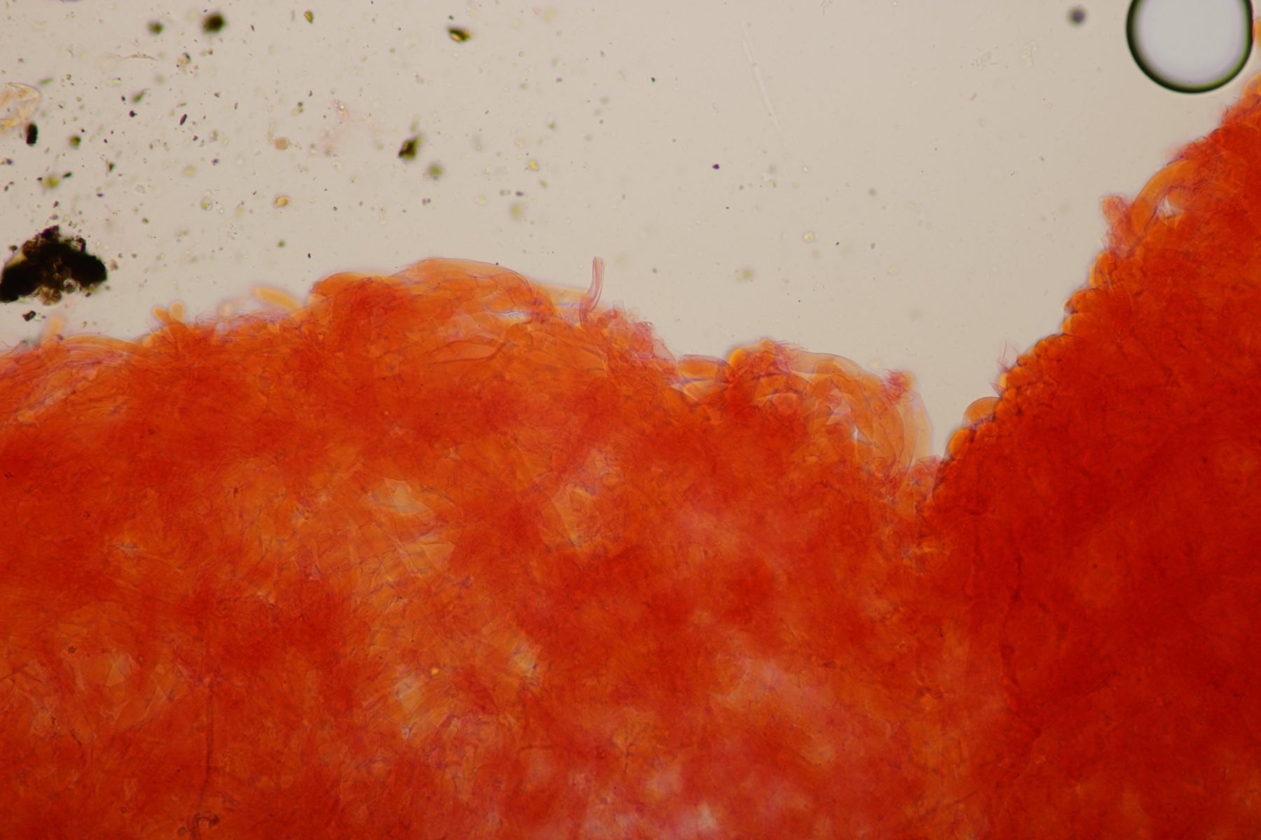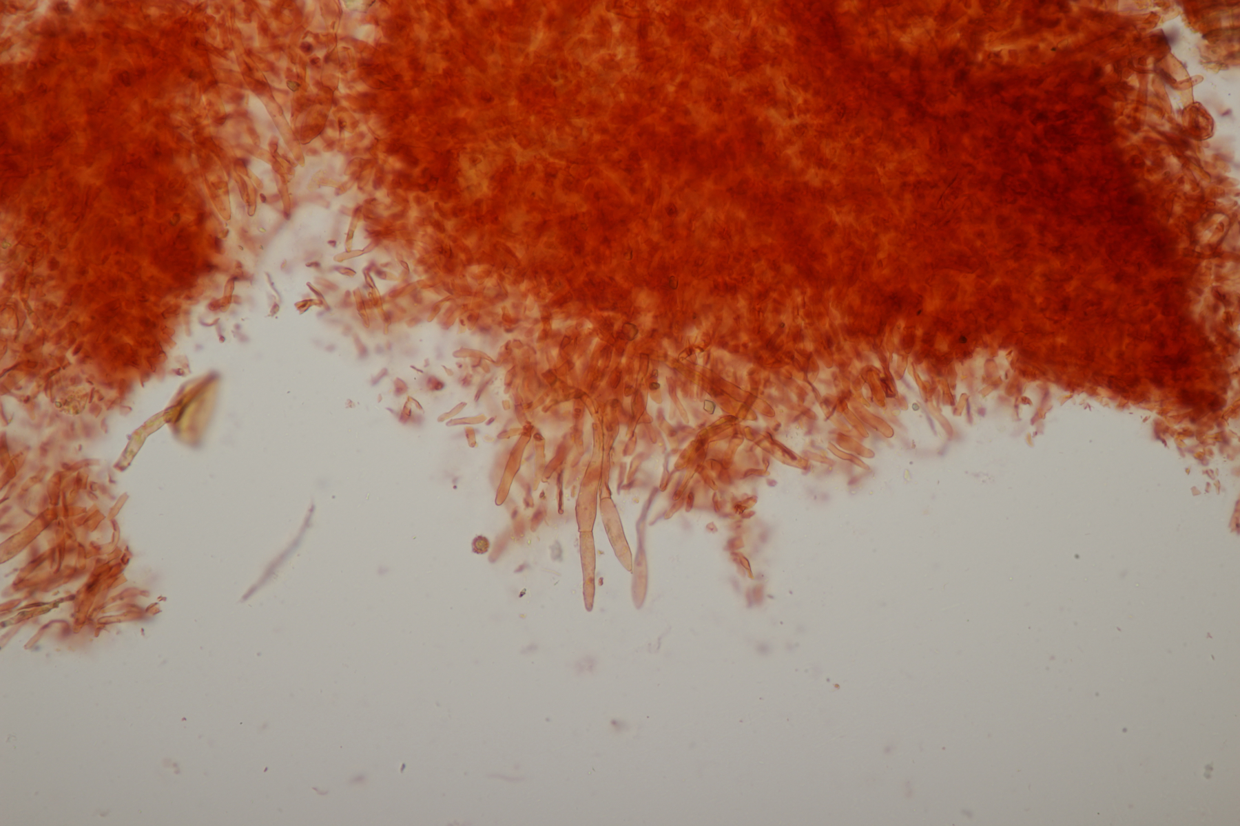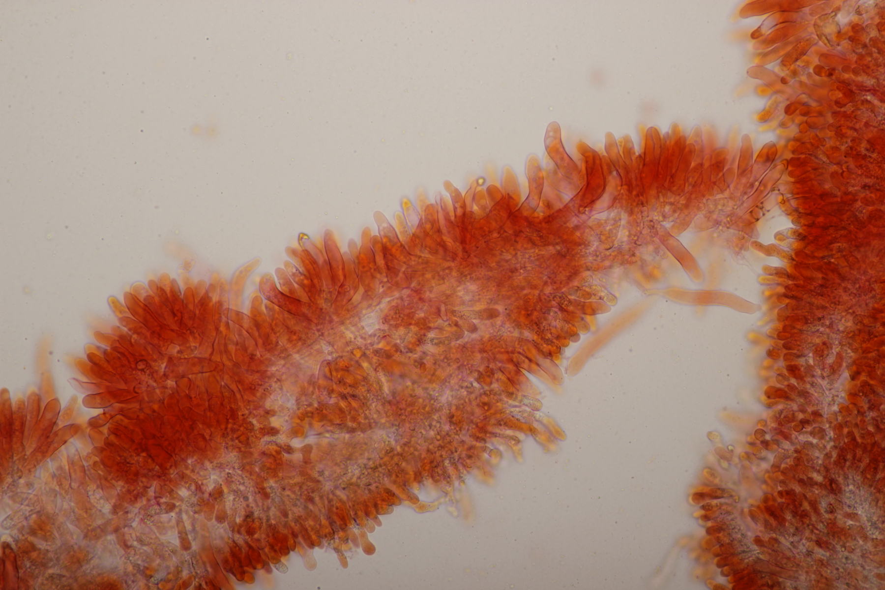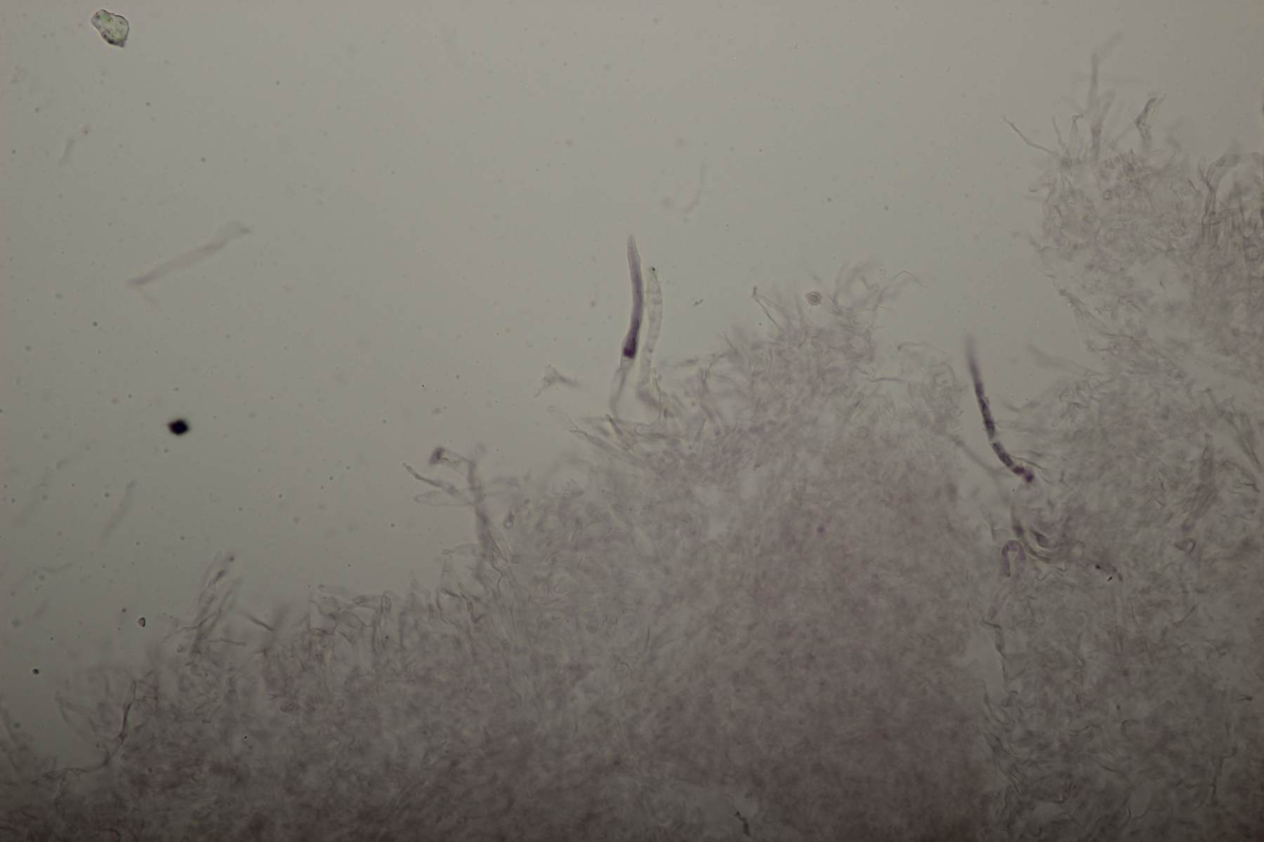Das wären zum Beispiel solche aufgeblasenen Huthaut Zystiden (Haare?) wie sie bei R. faginea vorkommen können. (Aber ich habe ja auch nichts gesehen, im doppelten Sinn) ==lamtoedlich