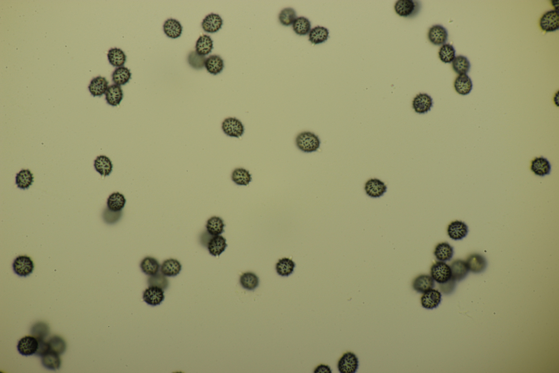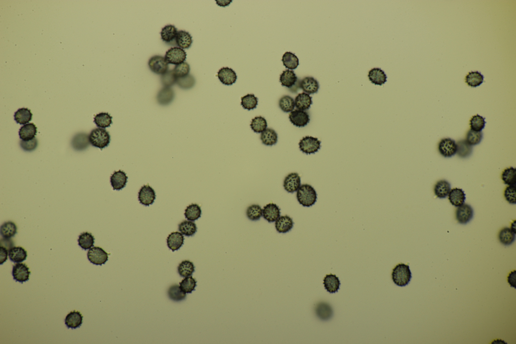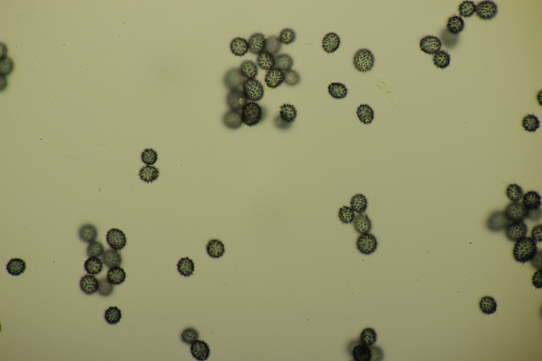 Auch deren Sporen sind im Durchschnitt mit 9 x 7,8 µm (eigene Messung) grösser. Deine Sporen passen zum Fund, auch die schwache Ornamentierung der nicht gerade hohen Warzen. Leider sehe ich auf deinen Mikros der Hh durch den vermutlich hohen Quetschungs-Faktor nicht das, was ich eigentlich für R. graveolens nachweisen wollte, sondern nur einzelne Fragmente der Zystiden, schade. Bestimmungsmässig bin ich mit EINHELLINGER bei R. graveolens gelandet, ob´s stimmt?