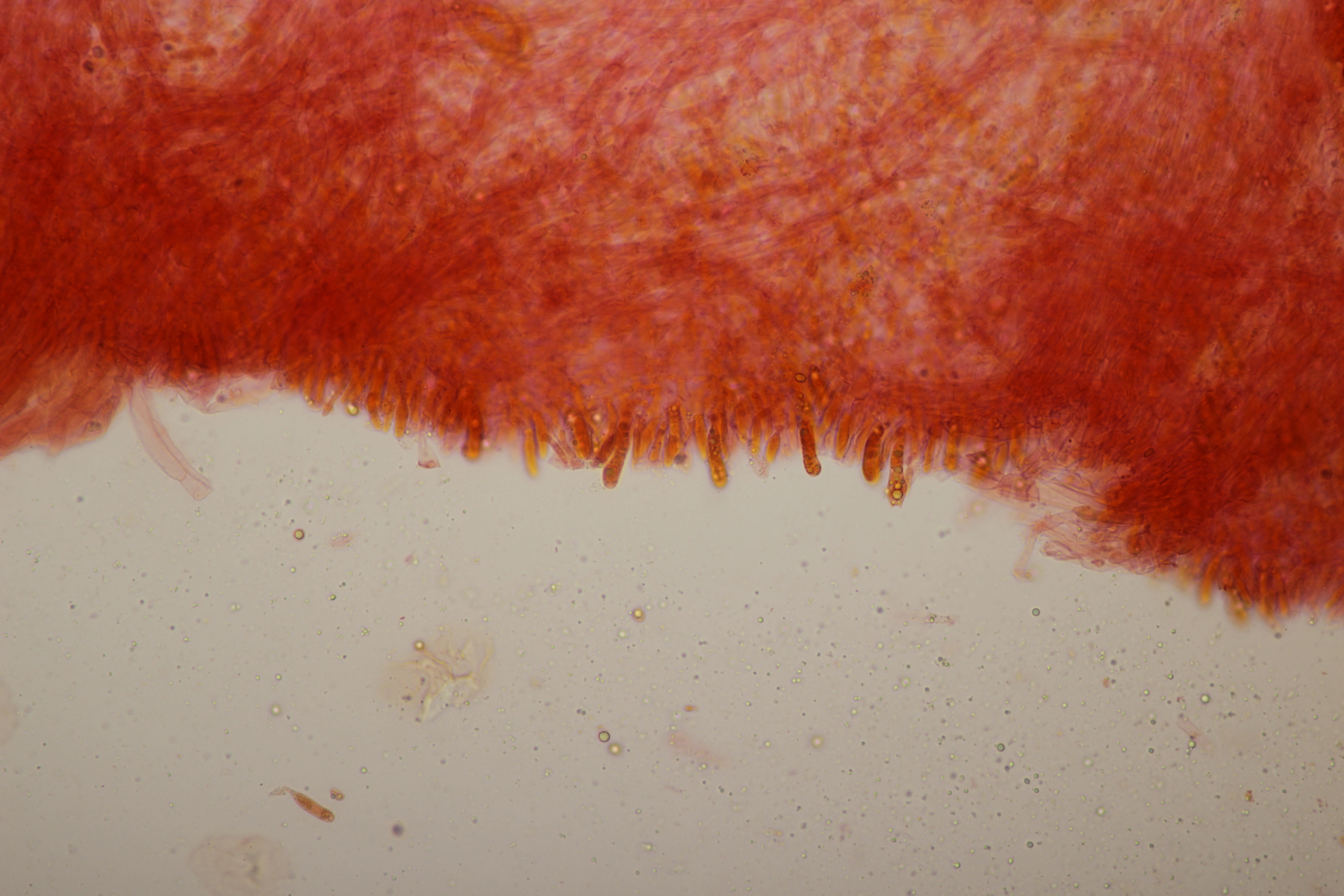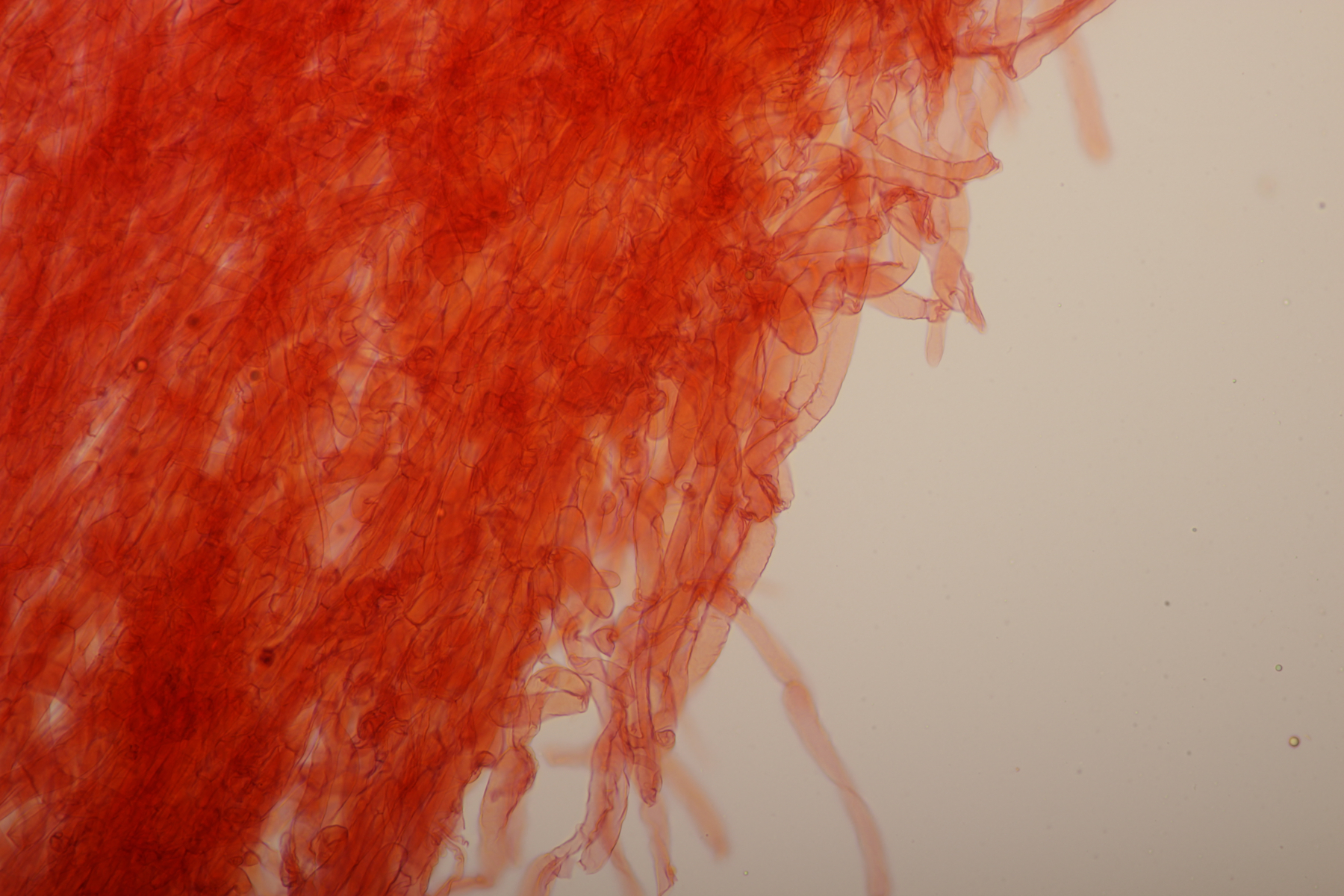 Das wären zum Beispiel solche aufgeblasenen Huthaut Zystiden (Haare?) wie sie bei R. faginea vorkommen können. (Aber ich habe ja auch nichts gesehen, im doppelten Sinn) ==lamtoedlich
