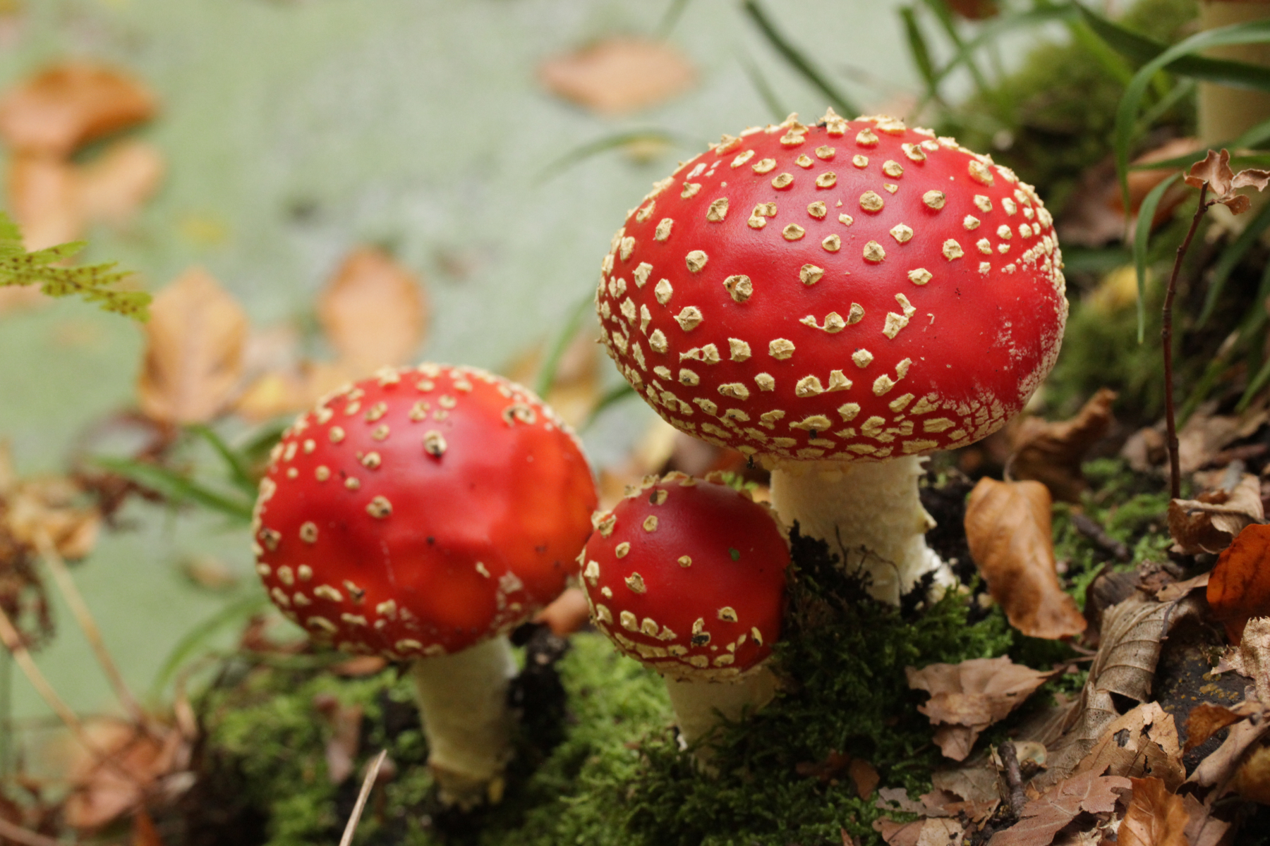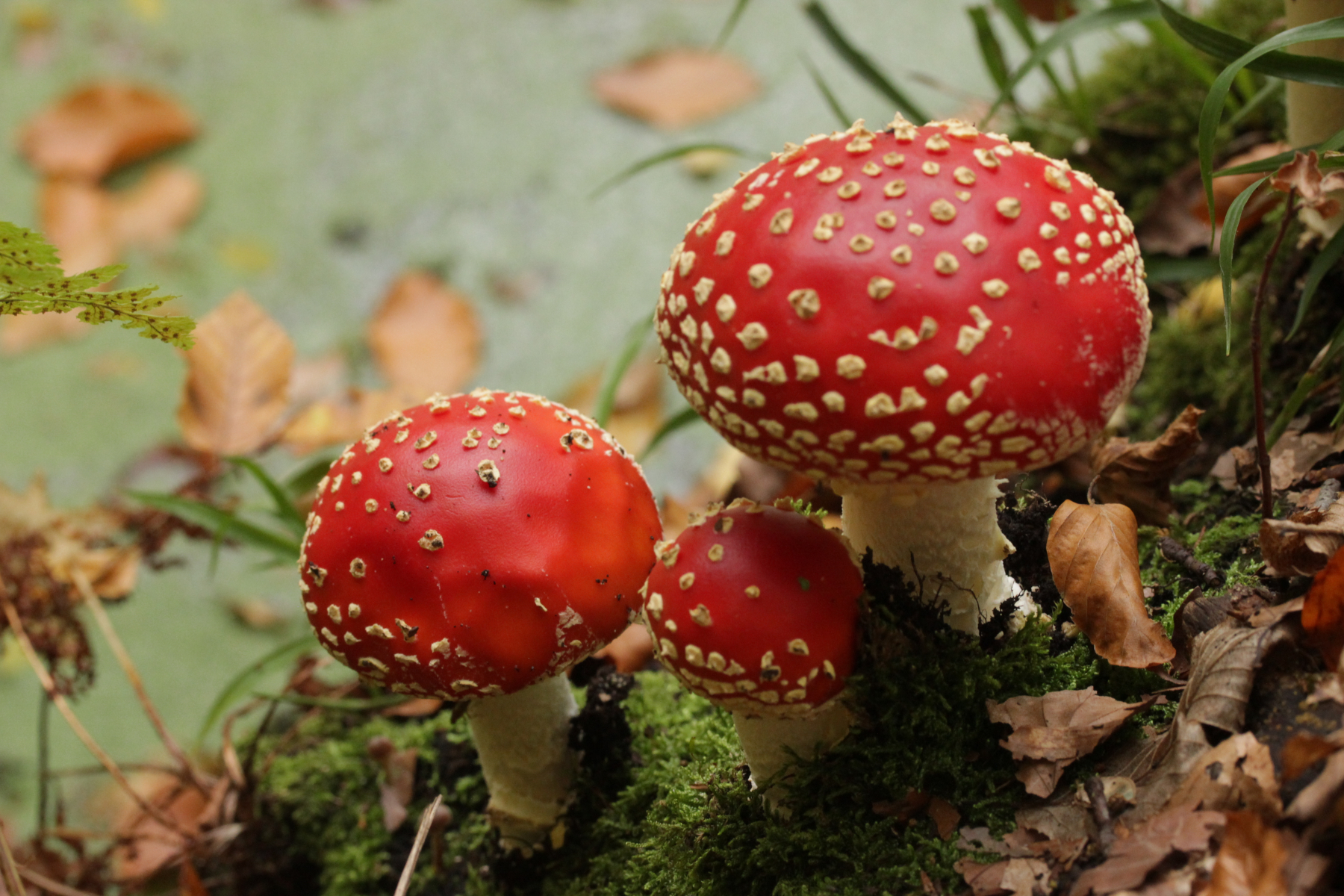14. Amanita muscaria, Boletus edulis und Lyophyllum decastes