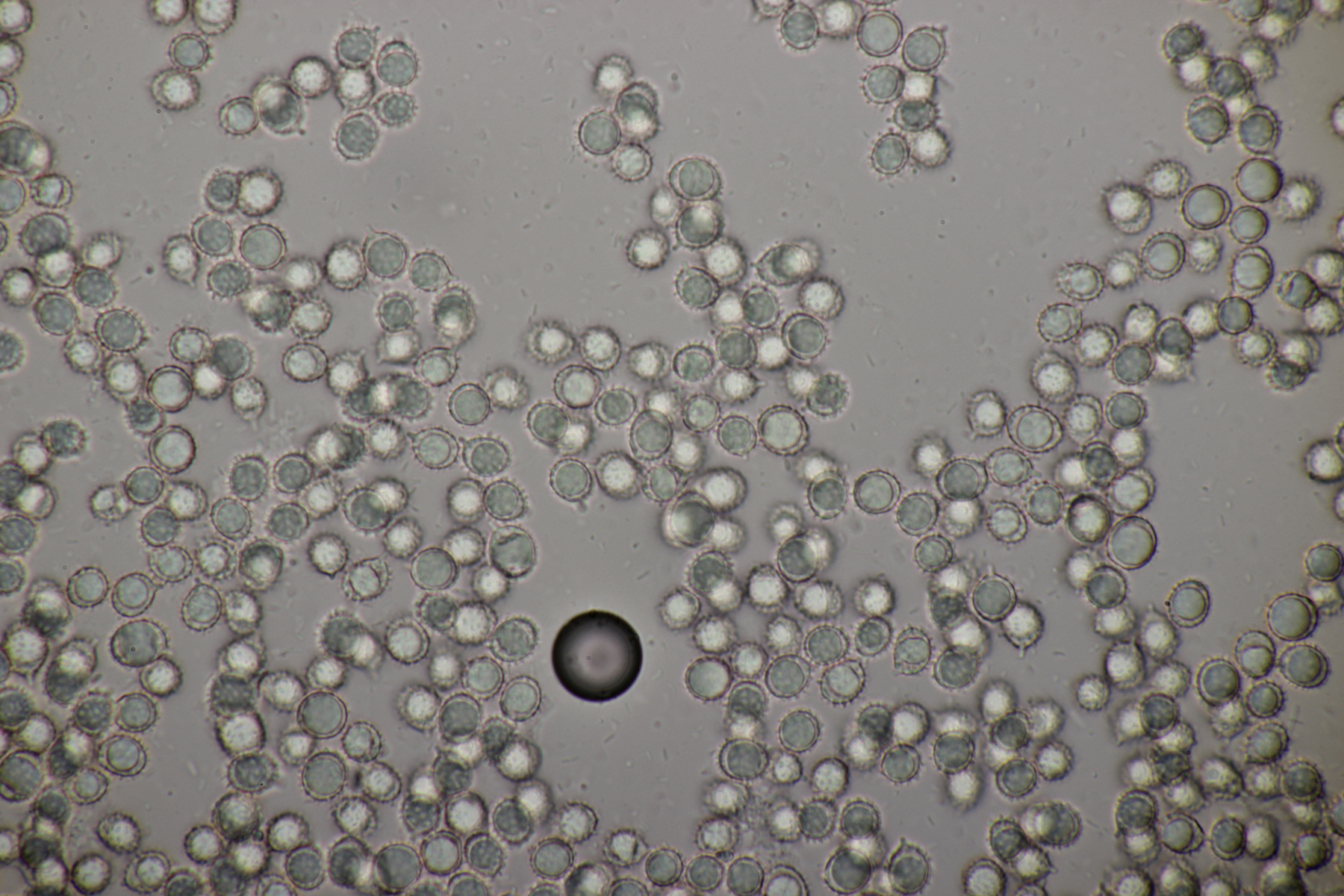 Sporengröße (8.2+-0.8) µm x (6.7+-0.6) µm