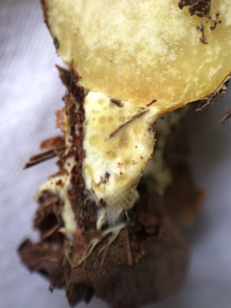 - Stielbasis im Anschnitt mit gelben „Kügelchen“