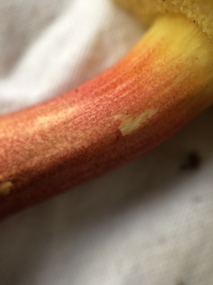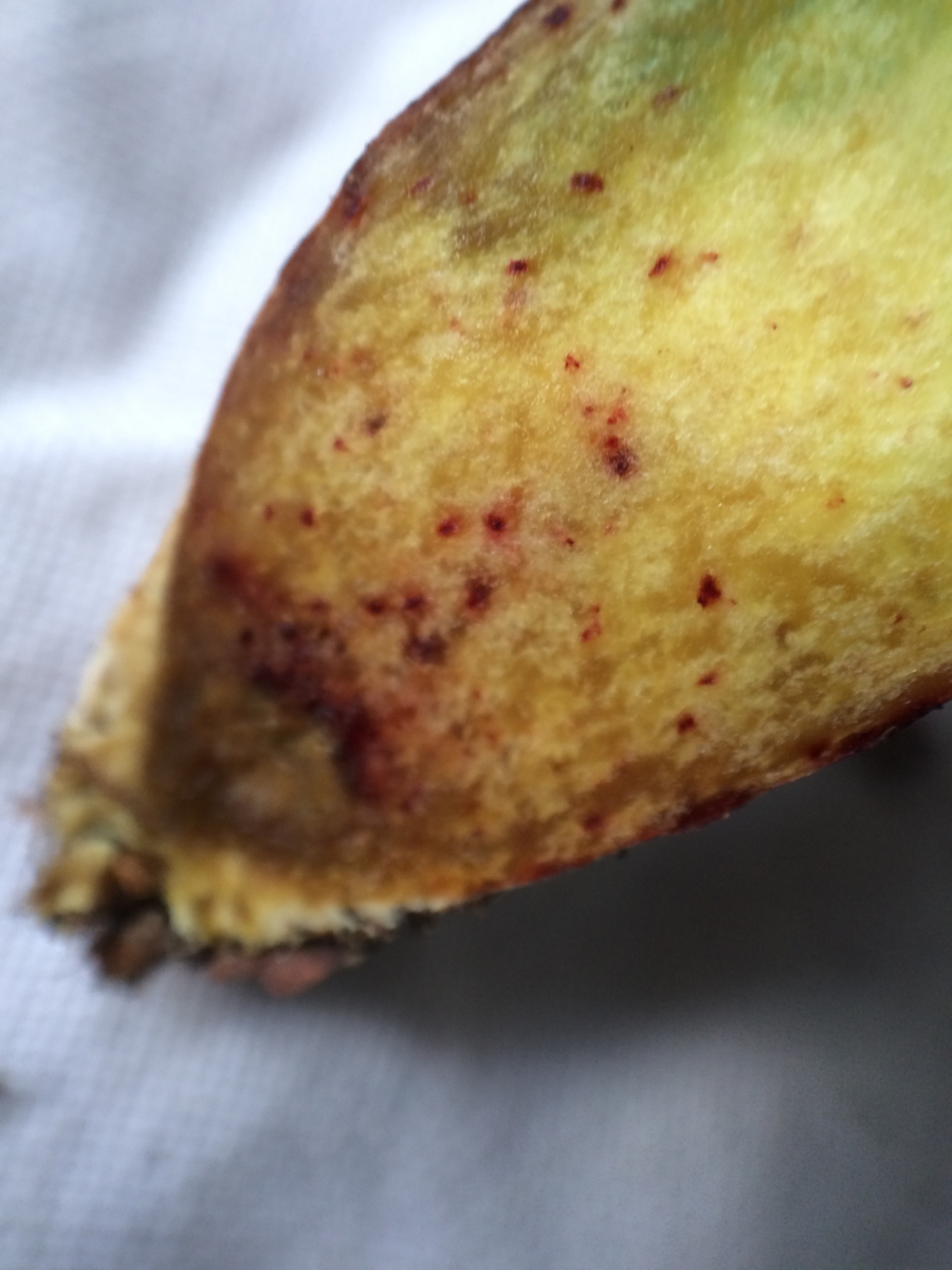 - Stiel gelb mit rötlichen/ bräunlichen Tupfen