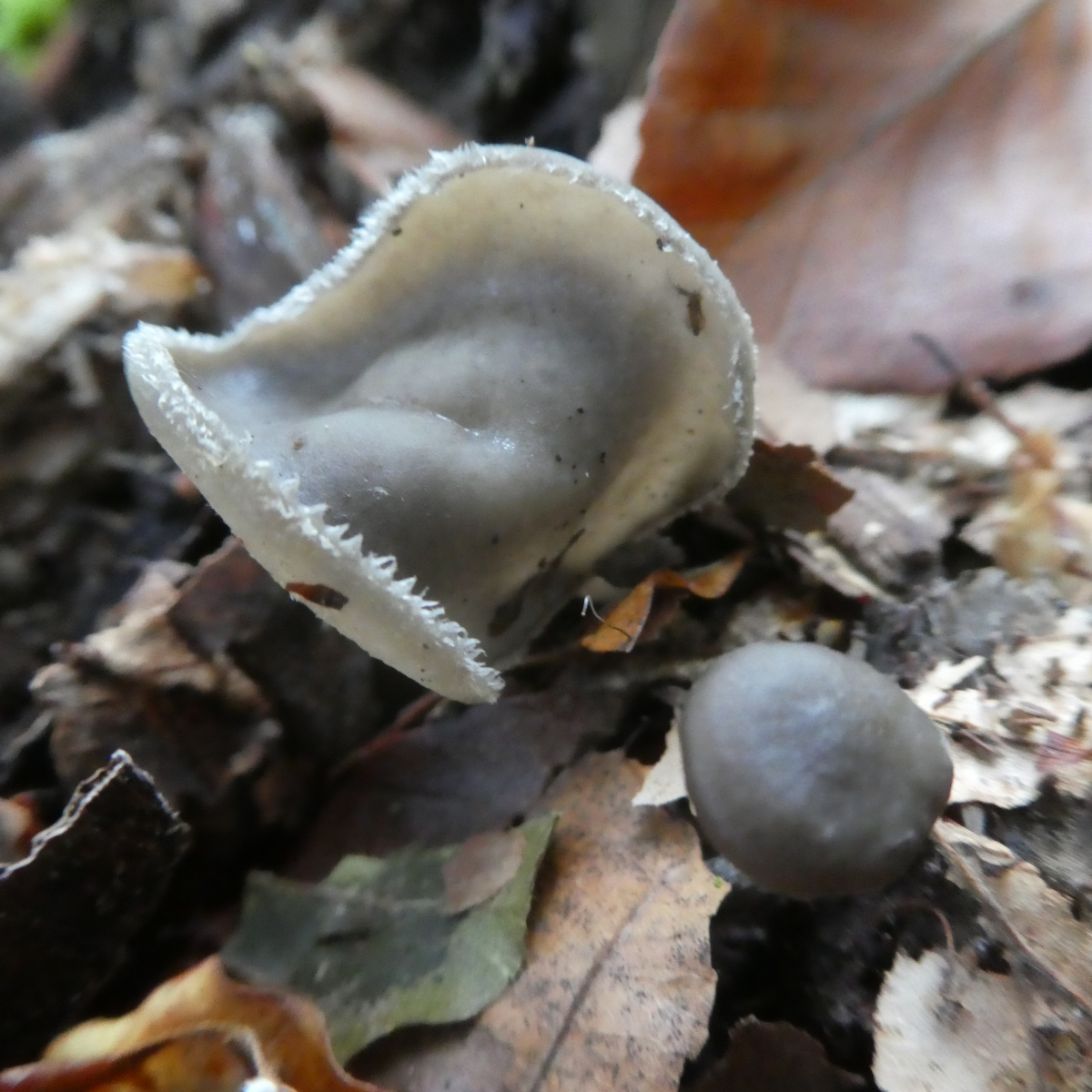 Funddaten: 13.10.2019, Altmühltal, Mischwald, dort Rotbuchen. Stielhöhe ca. 2 - 2,5 cm. Der Stiel scheint nicht hohl zu sein. Die Farbe hat sich bis heute von eher grau auf eher braun verändert, am Stiel auch noch mit Gelbtönen.