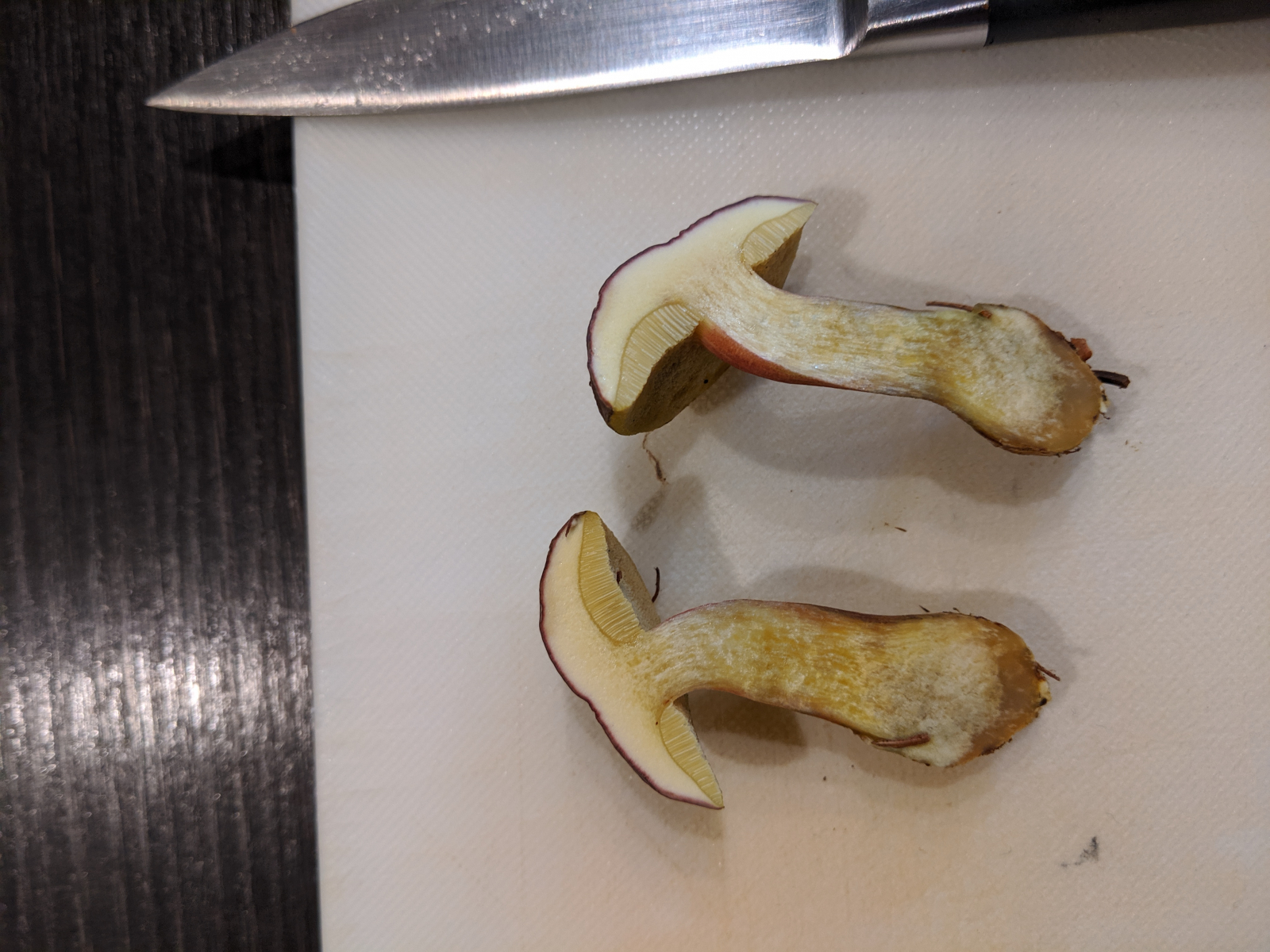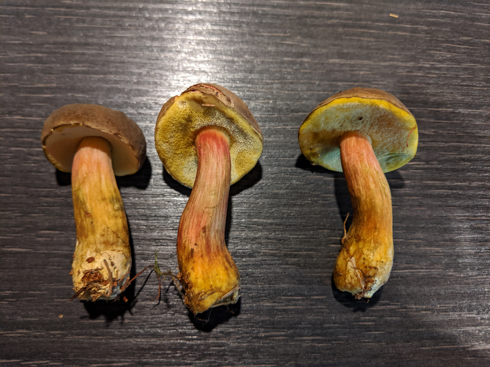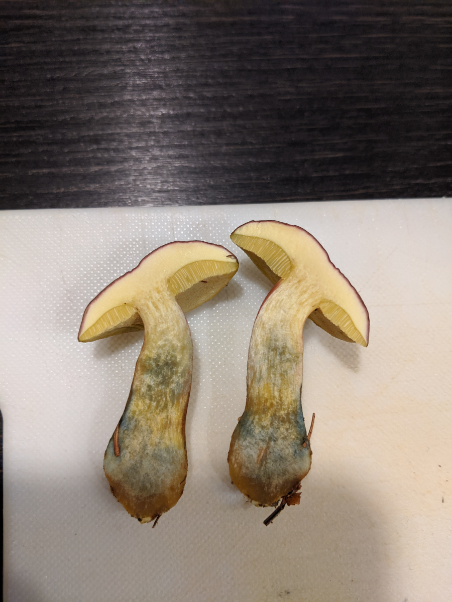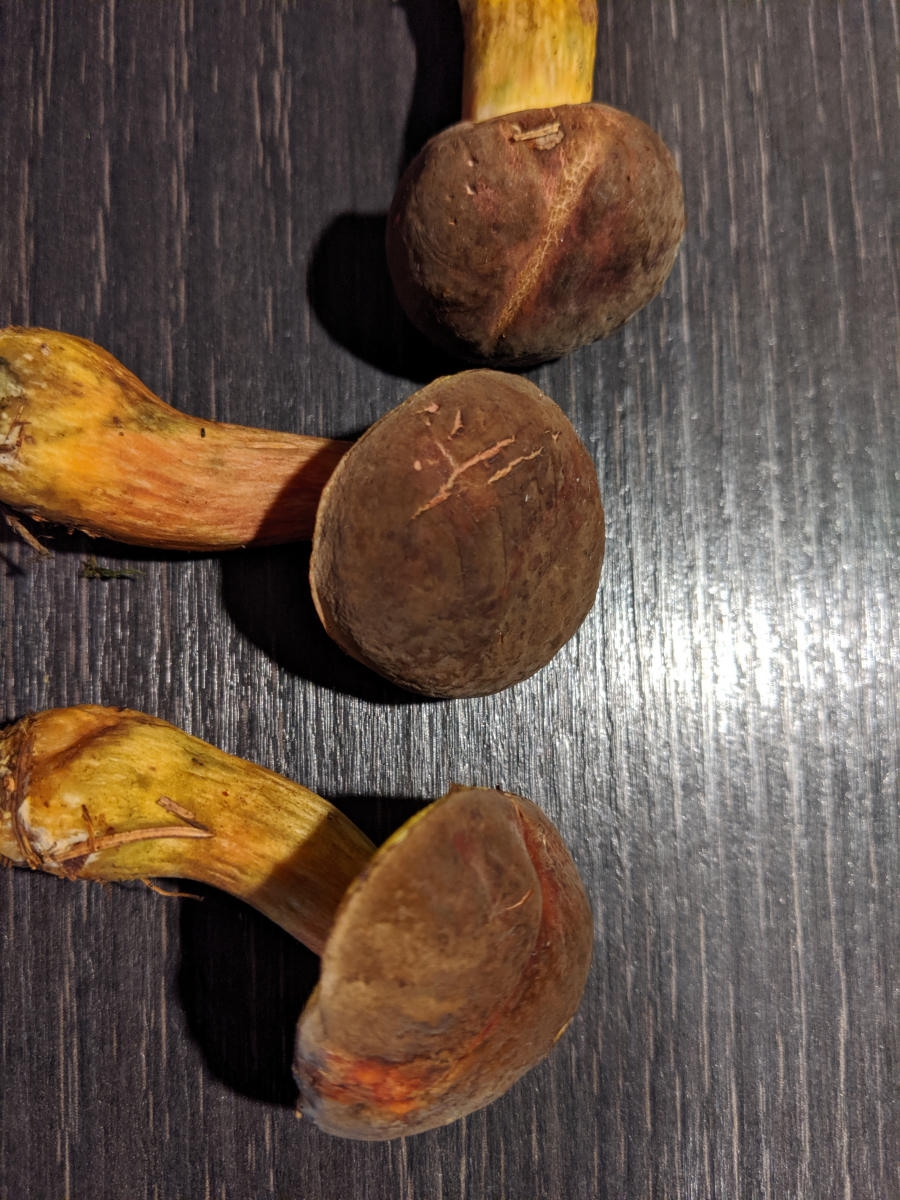 Dann habe ich noch ein paar Filzröhrlinge gefunden, eigentlich hätte ich dazu jetzt Rotfußröhrling gesagt, aber dafür ist der Stiel nicht rot genug, hat auch keine Risse. Müsste unter Fichten gestanden haben.