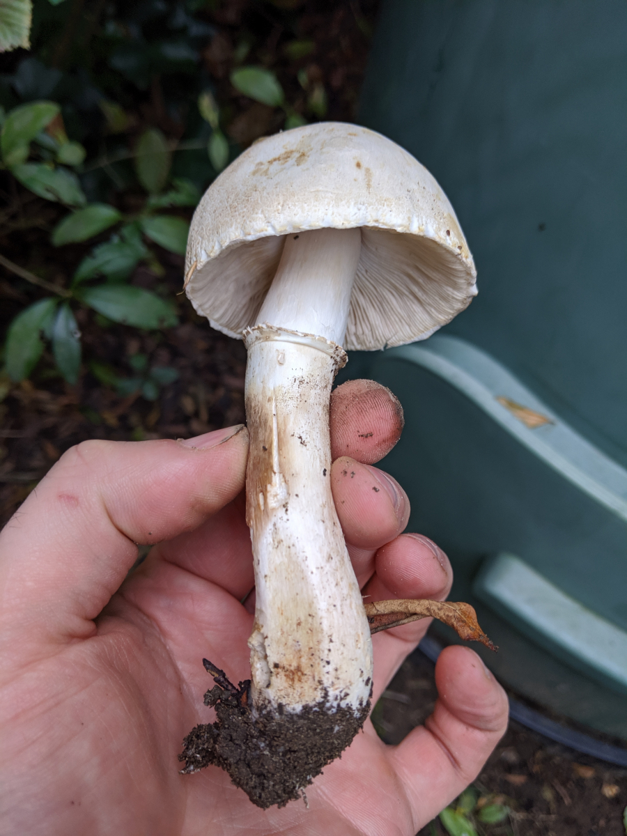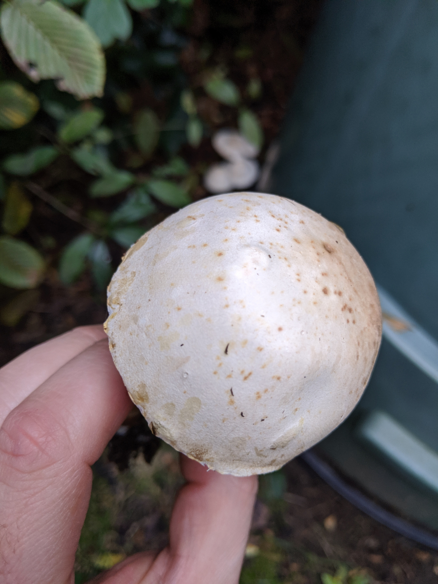 3) Dann habe ich noch bei meinem Bruder im Garten Pilze gefunden und er würde gerne wissen, was das ist. Leider habe ich kein Schnittbild, aber vielleicht kann mir jemand eine Idee geben: