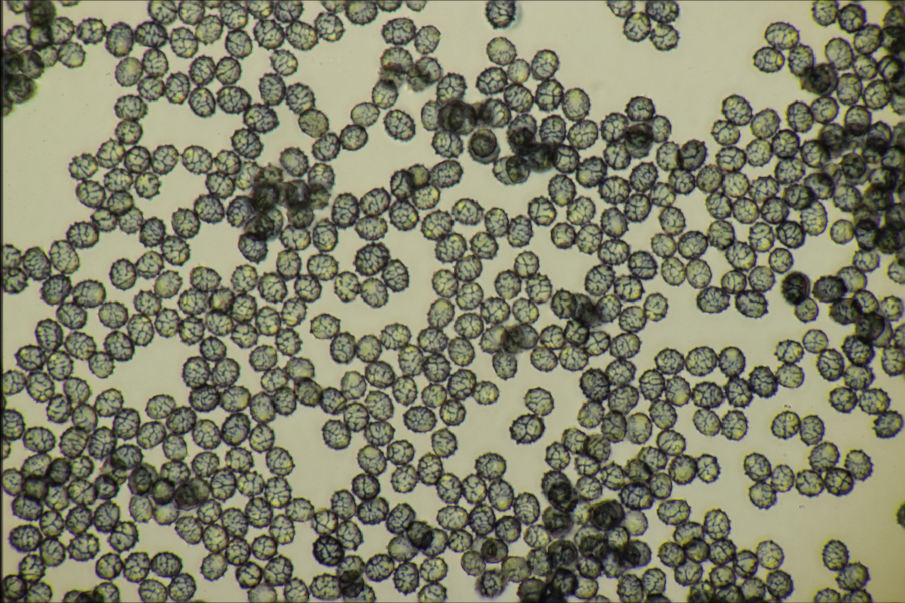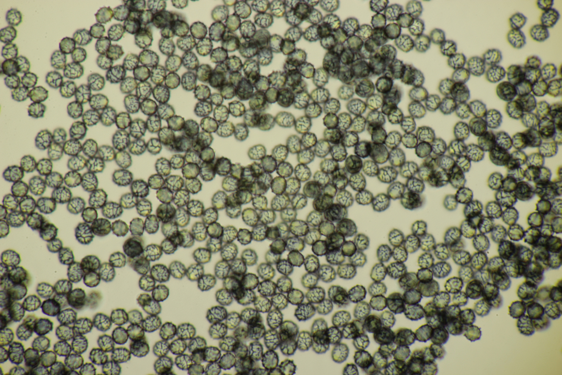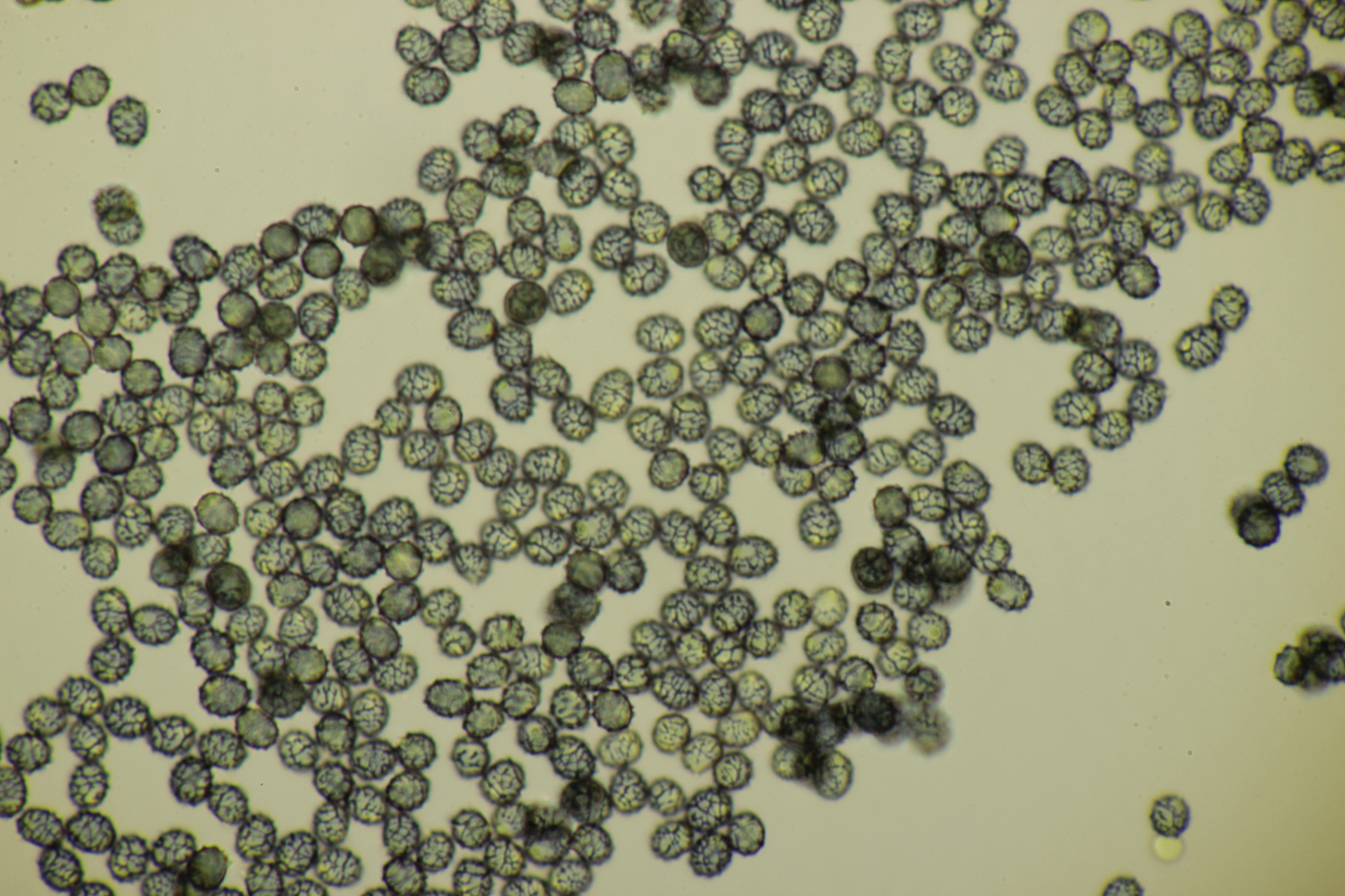 Sporen (6.1+-0.4) µm x (3.5+-0.2) µm