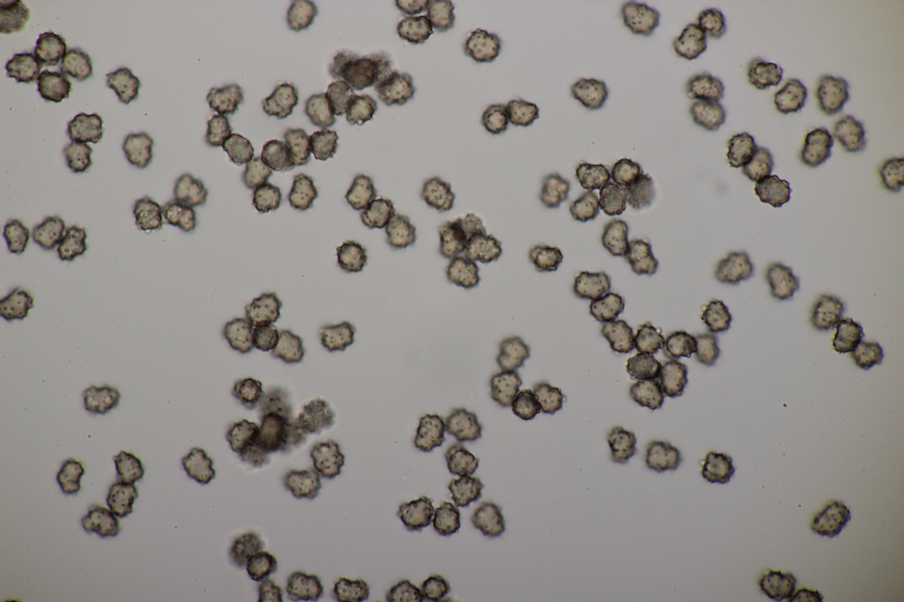 Sporen in KOH, Sporengröße (7.0+-0.4) µm x (4.2+-0.3) µm