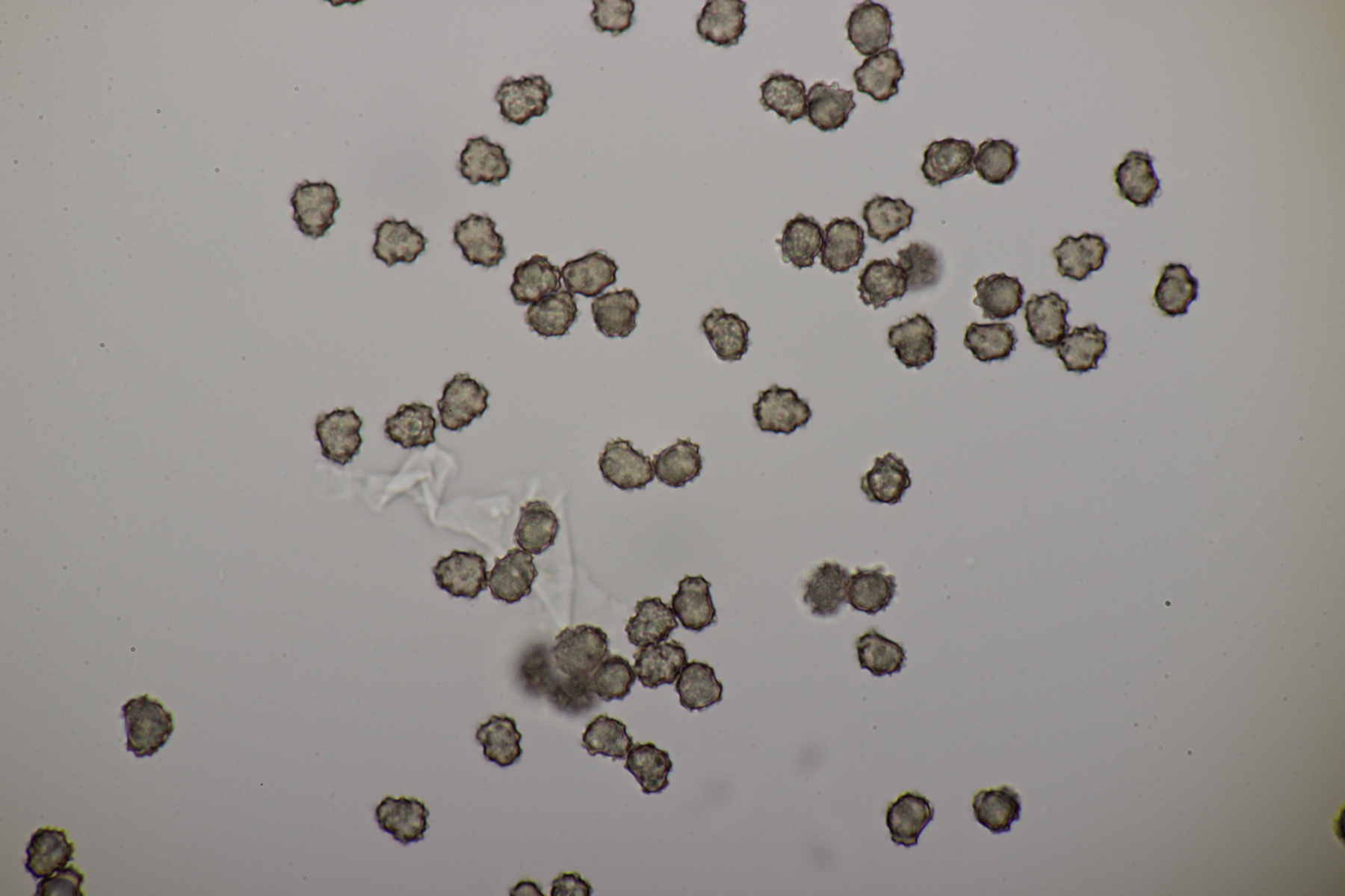 Sporen (6.1+-0.4) µm x (3.5+-0.2) µm