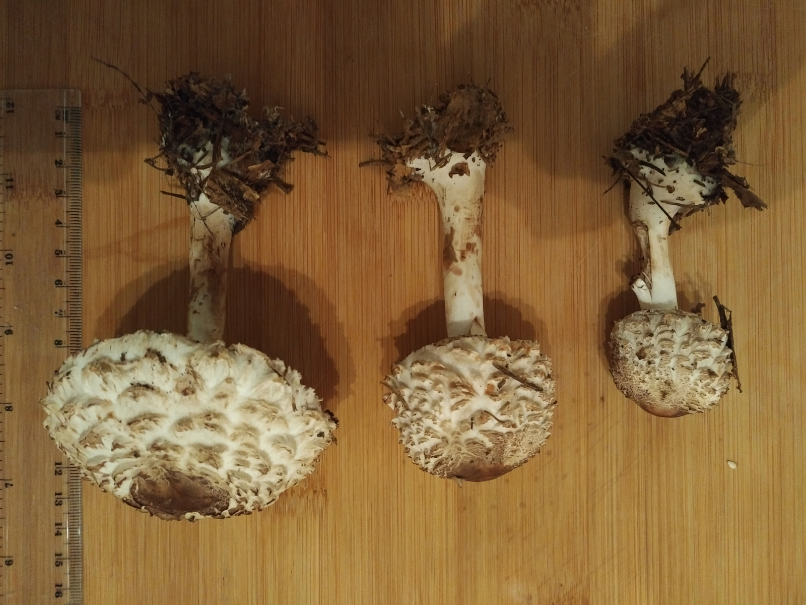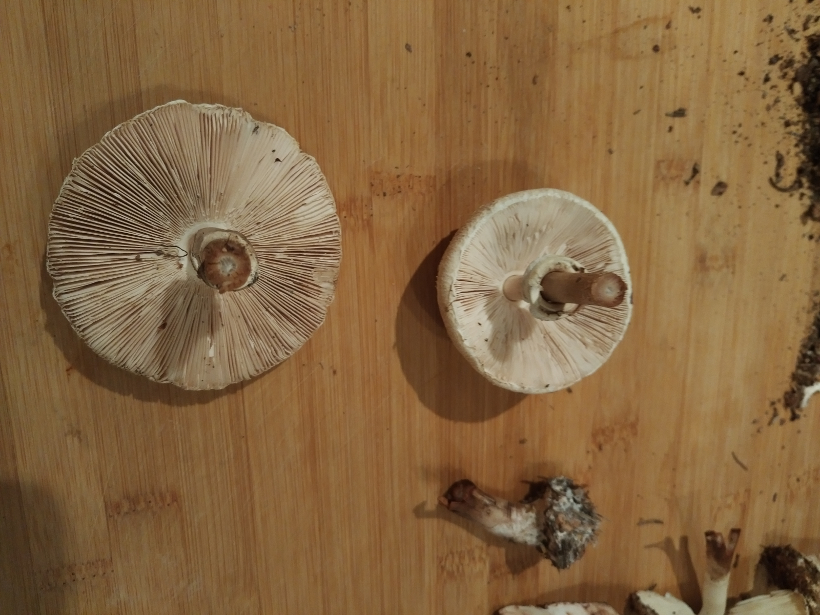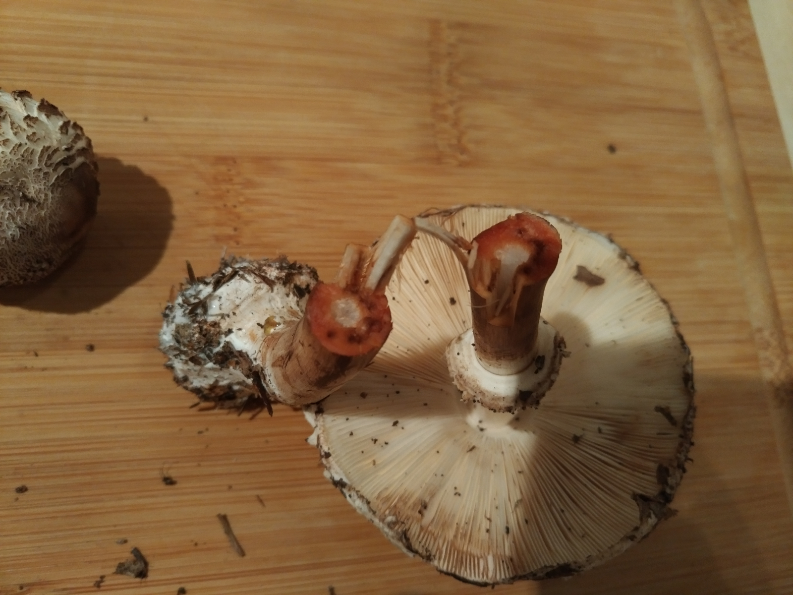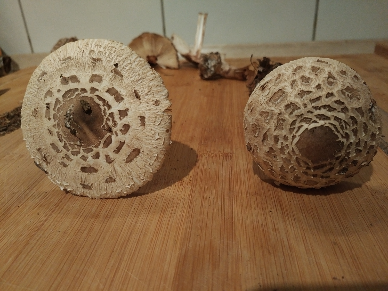 wir haben heute zwei Schirmlings- bzw. Riesenschirmlingsarten gefunden, die wir nicht genau bestimmen können. Könnt ihr uns einen Tipp geben?
