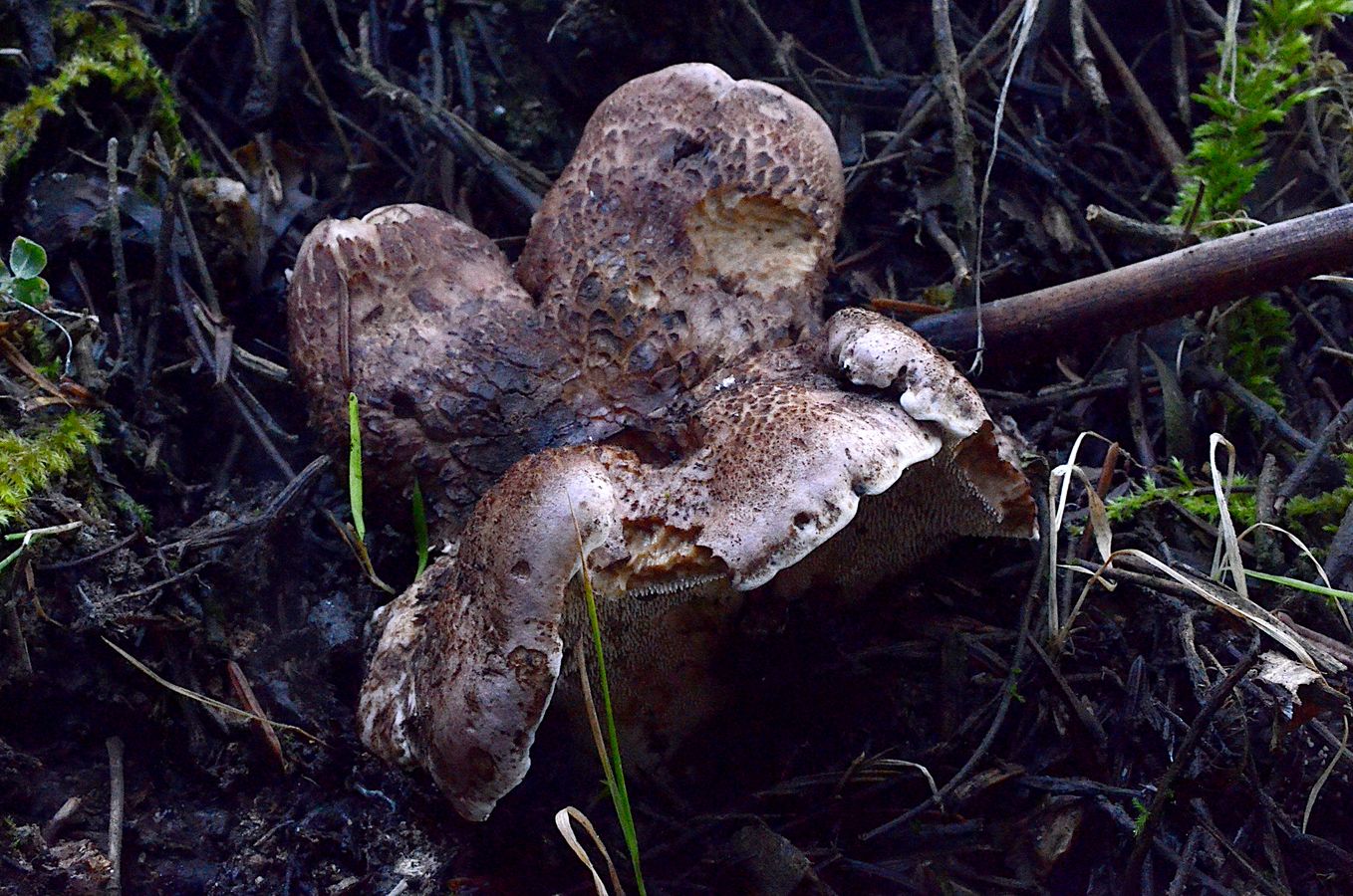 05: Hier nochmal das Stachelding. Versucht zu schlüsseln, kamen aber nicht weiter bis auf Sarcodon. Die Stacheligen im Mittelmeerraum bereiten mir oft Kopfzerbrechen. Der hier war unter Tanne und war recht schuppig. Wir hatten später noch einen anderen aus dem Kiefernwald, der war völlig glatt auf dem Hut.