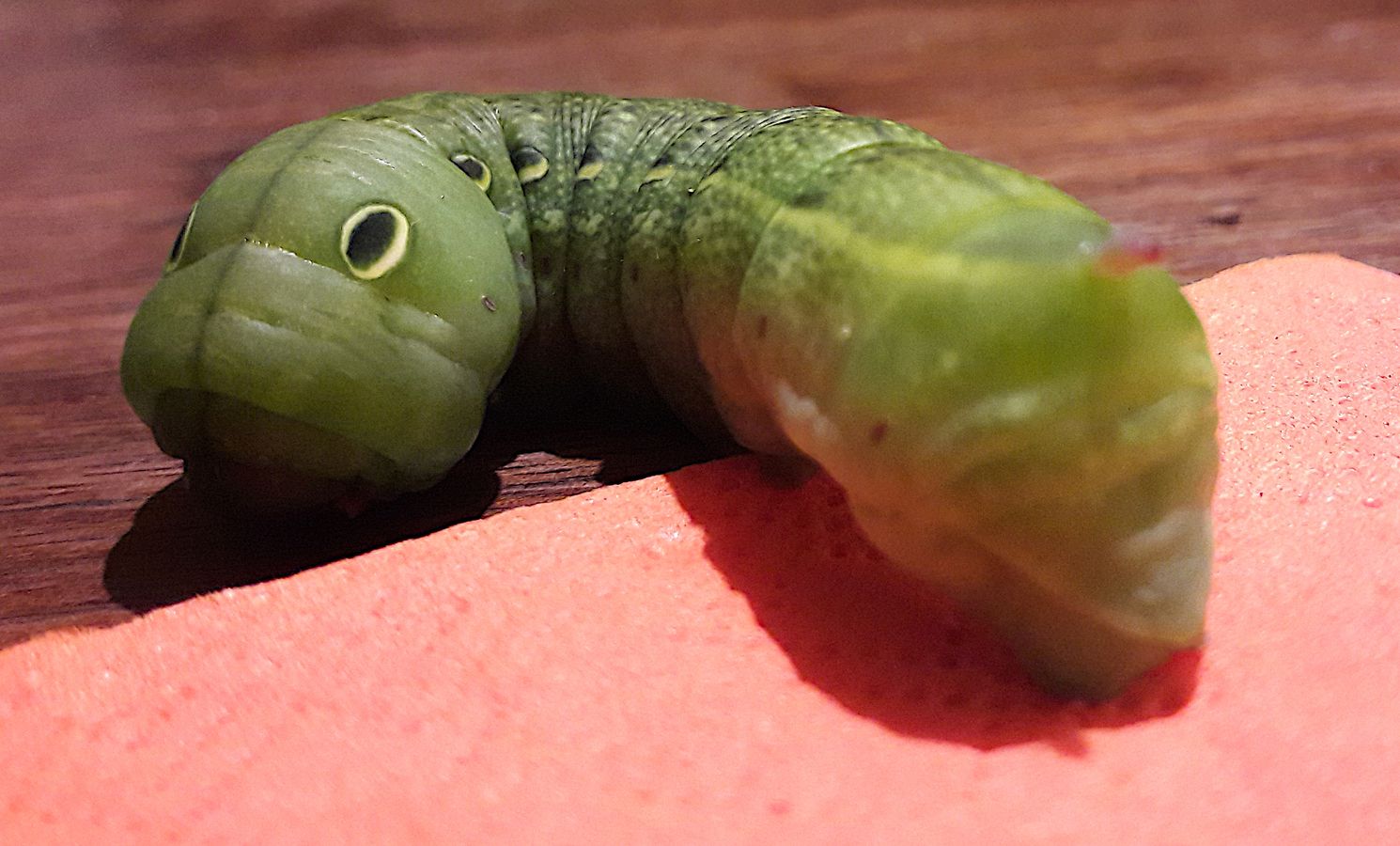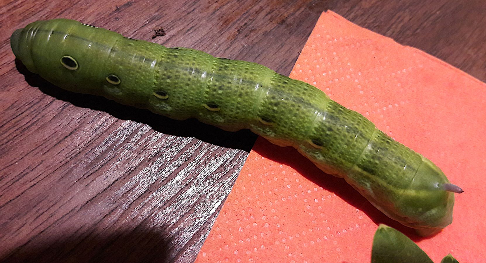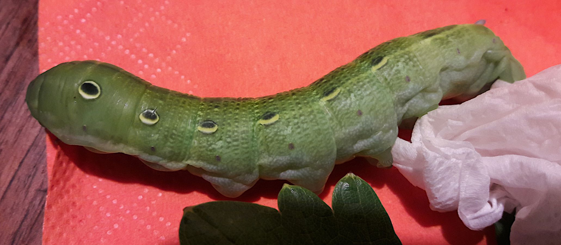 Mittlerweile hat er sich erfolgreich verpuppt, der Große Weinschwärmer.