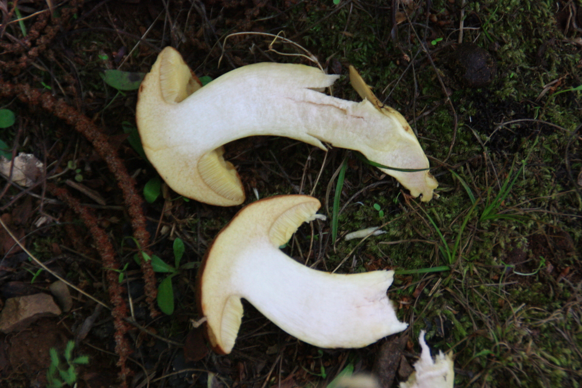 02 + 03: Noch so ein Rätselpilz, der zwar sehr hübsch war, wir kamen aber nichtmal auf eine Gattung! Mich erinnerte er leicht an Leccinum lepidum, der Stiel war aber komplett glatt. Kaum Verfärbung (leicht dunkler im Hut bei Schnitt), kein deutlicher Geruch, glaube ich. Meine Kamera wollte wieder nicht richtig, also müssen andere mit besseren Bildern ran!