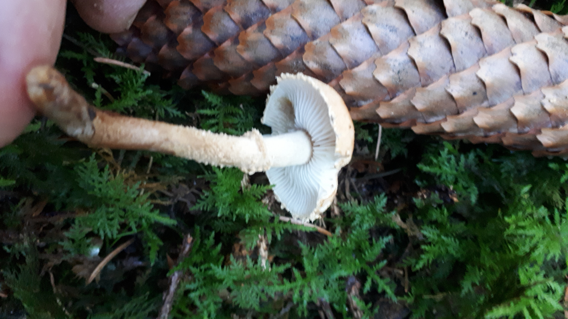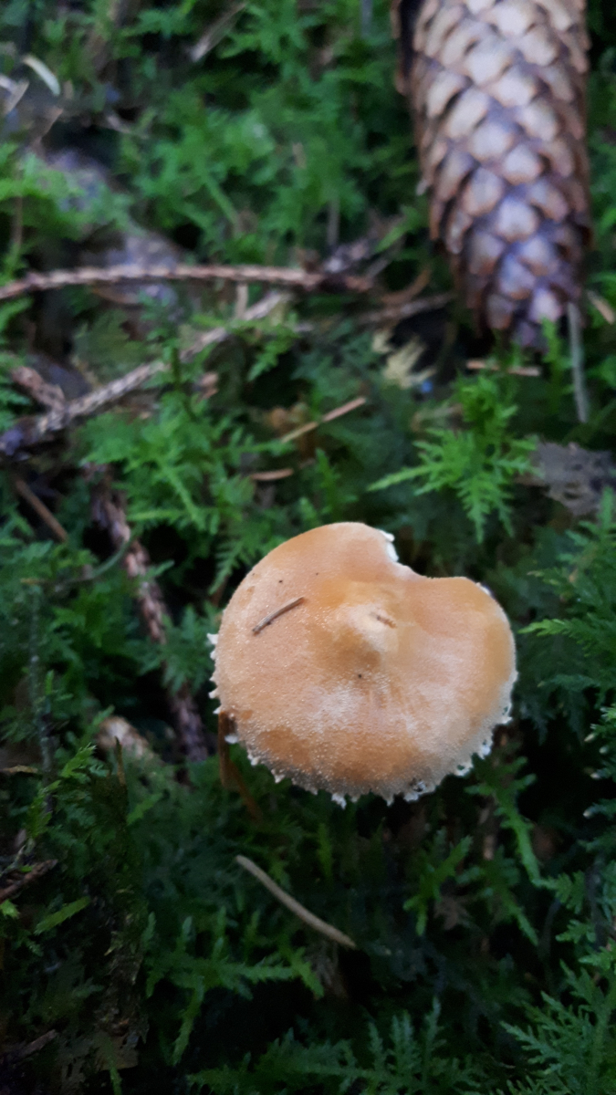 Huthaut nicht schmierig, lamellen mit zahn angewachsen... spitz gebuckelt... Fichtenwald... am Hut bewimpert... also,Velumreste. Meine Pilzbücher sind ratlos.