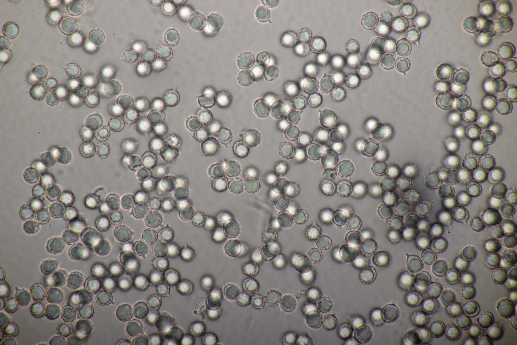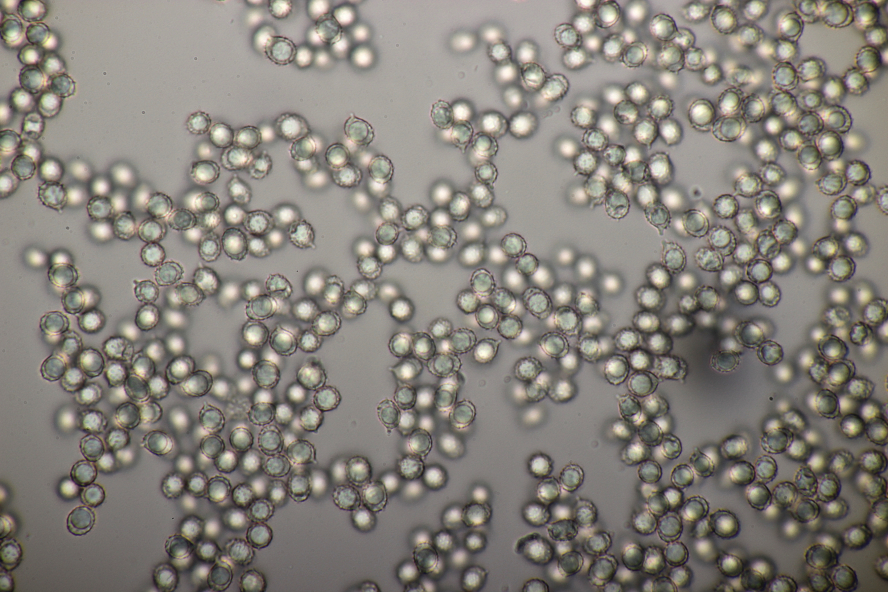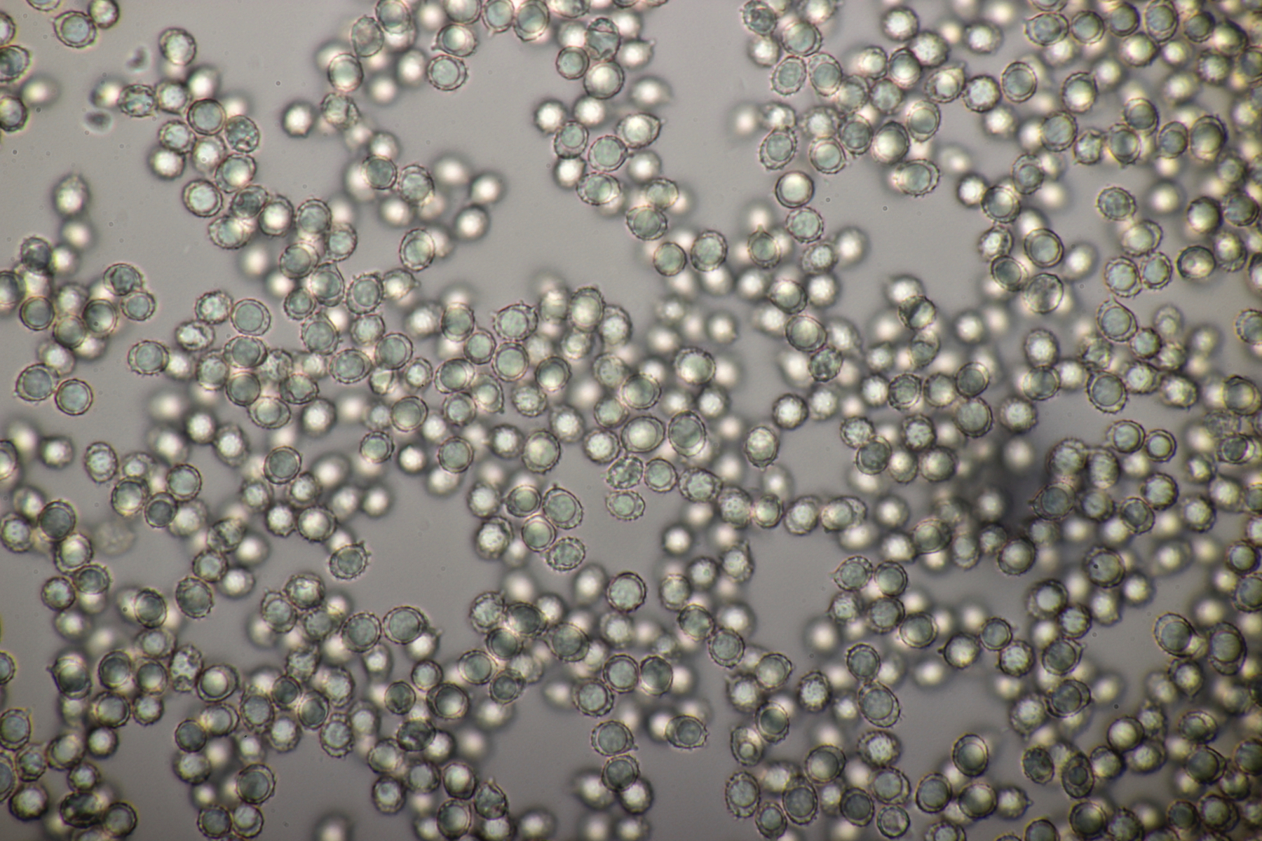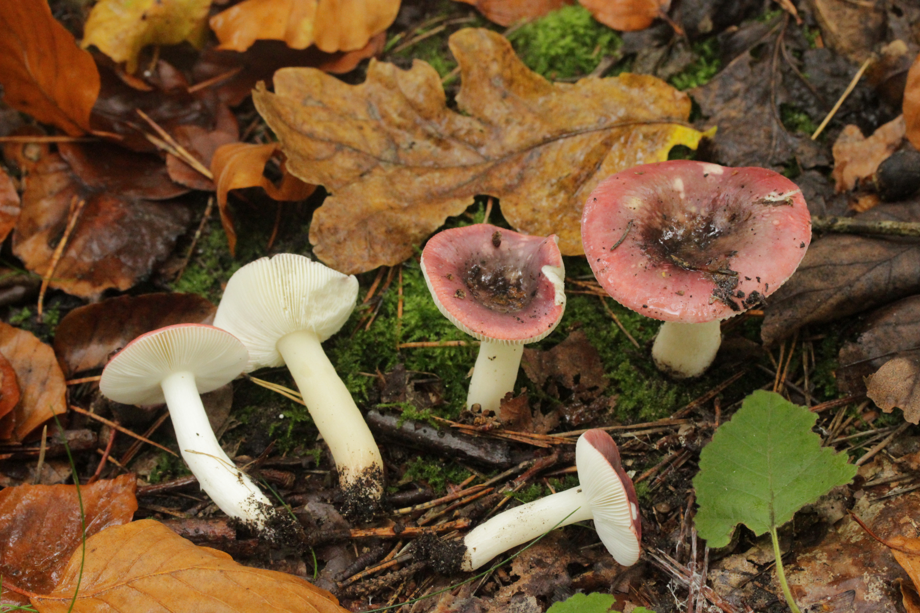 10. Noch ein Täubling unter Buche, Eiche und Birke. Geschmack sofort scharf. Sporengröße (7.6+-0.5) µm x (6.3+-0.5) µm, Sporenpulver Ib, evtl. auch IIa. FeSO4 rosa, Guayak nach 20 Sekunden langsam leicht bläulich.