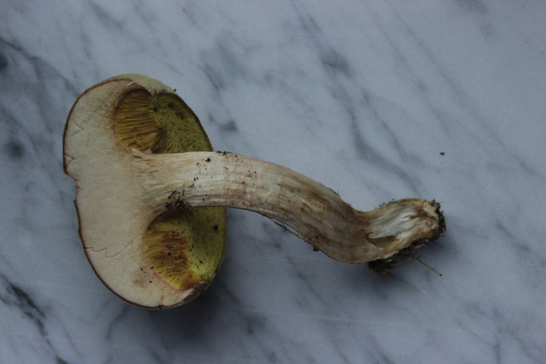 4. ein Filzröhrling mit auffallend gelben Röhren und sehr hellem Hut. Sporengröße (10.7+-0.6) µm x (4.0+-0.3) µm